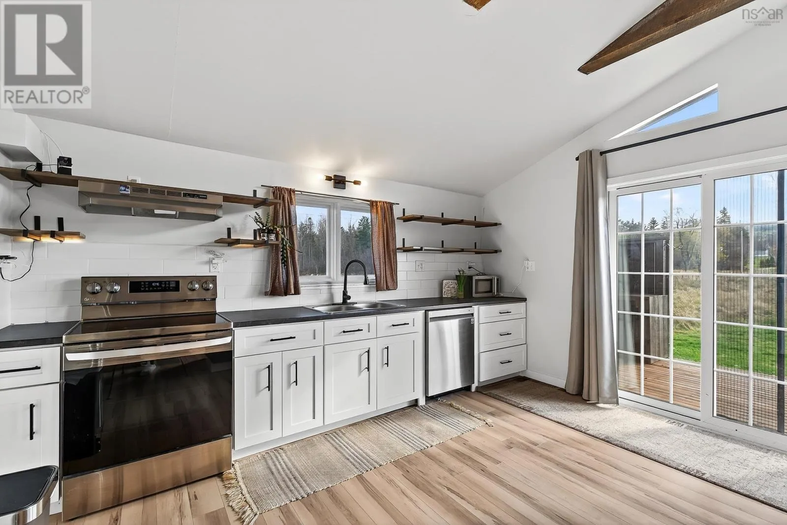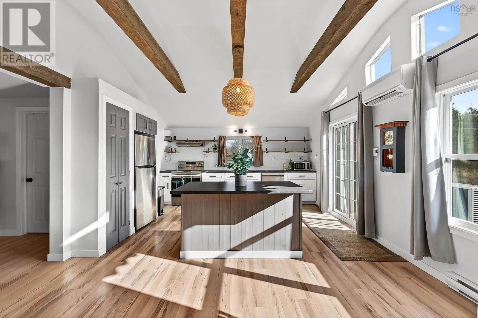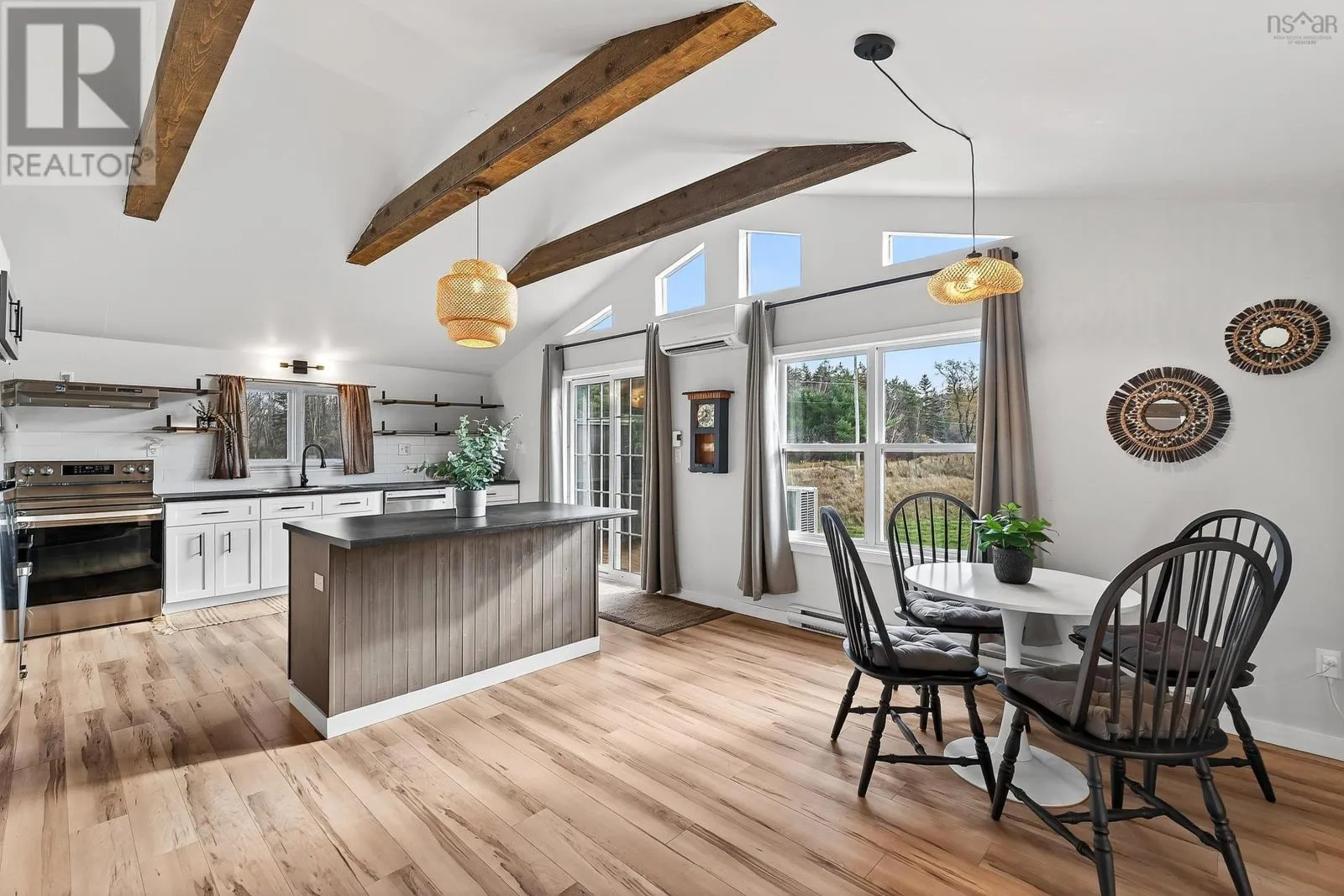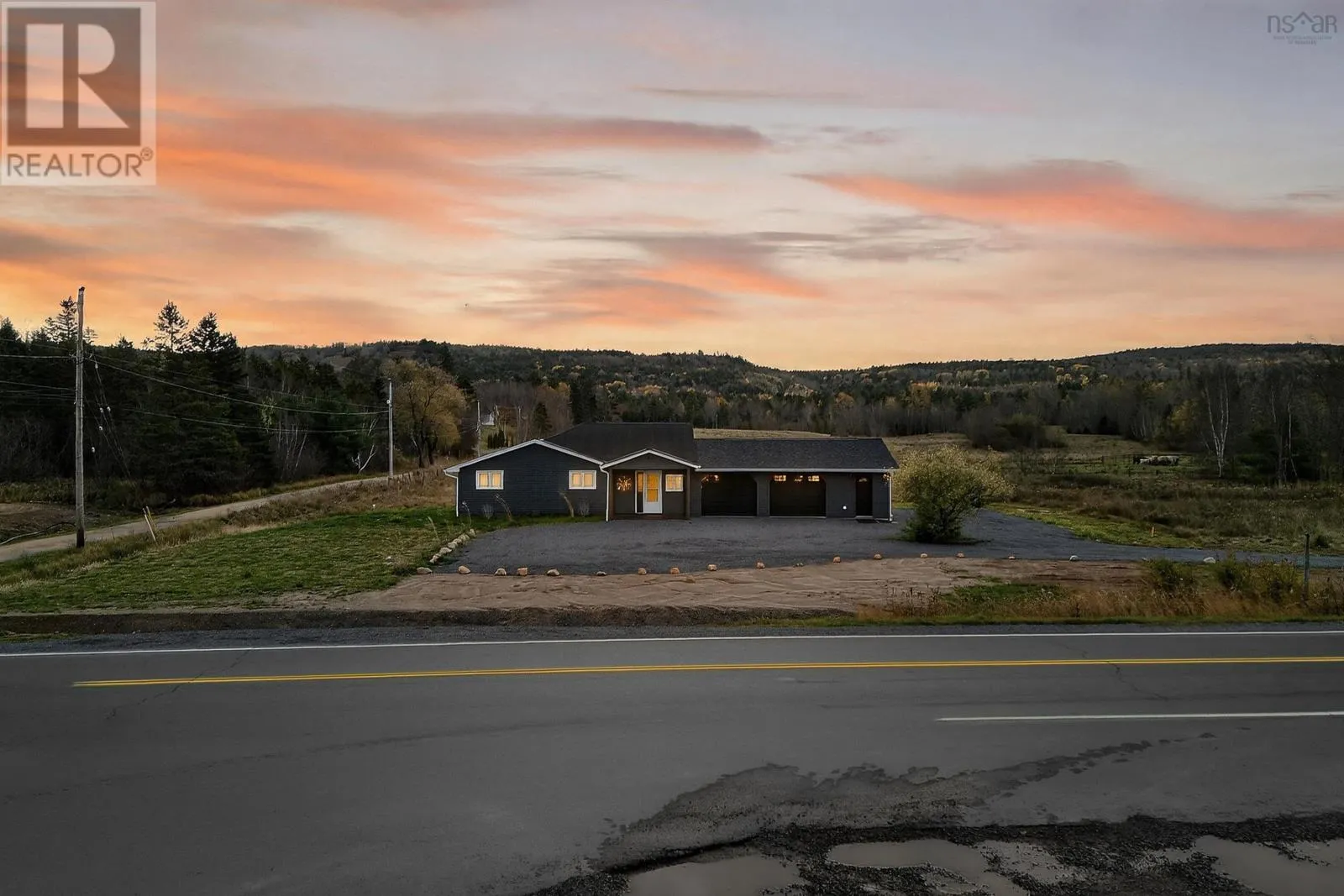 From Windsor head down Nova Scotia Trunk 14 towards Martock Mountain. Property on the left. Welcome to 4236 Hwy 14, a fully updated one-level home just minutes from Martock Mountain, 10 minutes to Windsor, and surrounded by nature, farmland, and fresh produce. This 2-bedroom, 1-bath home offers easy living for a small family, those seeking no-stairs convenience, or anyone looking for a weekend retreat close to ski hills, lakes, and vineyards. An oversized foyer with generous storage opens into a spacious living room, eat-in kitchen, and dining area with a large islandperfect for daily life or entertaining. The primary bedroom offers views of the ski hill and neighbouring pastures, plus a walk-in closet. Step outside to a private back deck with a new retractable awning and privacy screenideal for unwinding and watching local wildlife. Additional features include a massive 32x24 double attached garage with new electric doors, a brand-new 2400-gallon cistern with remote monitoring, and recent septic updates. There's also space to park your RV. The property is in the process of being subdivided; a new survey and full list of updates are available through your REALTOR®. (id:27476)