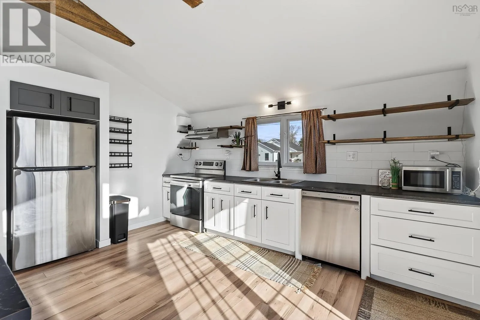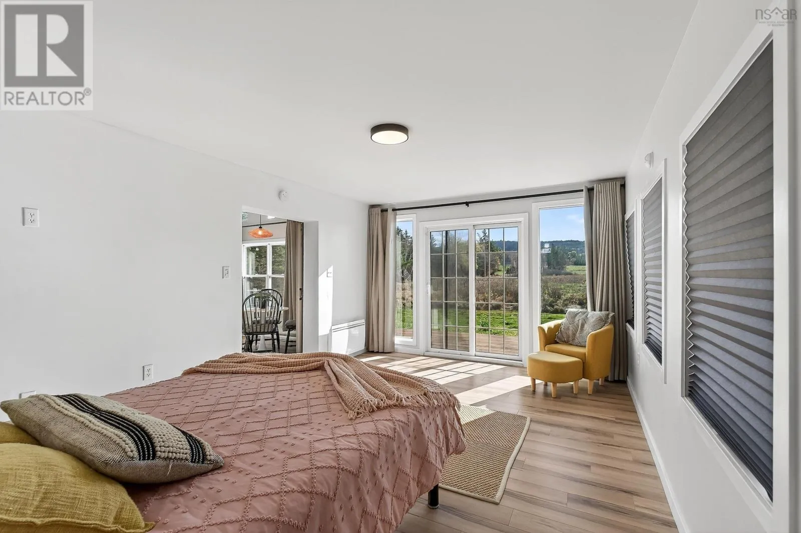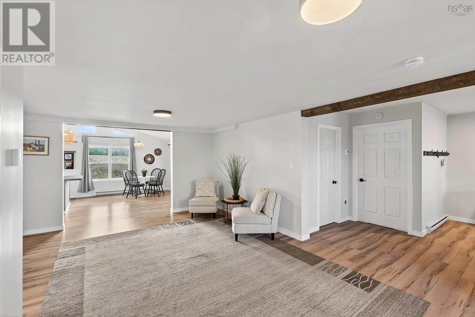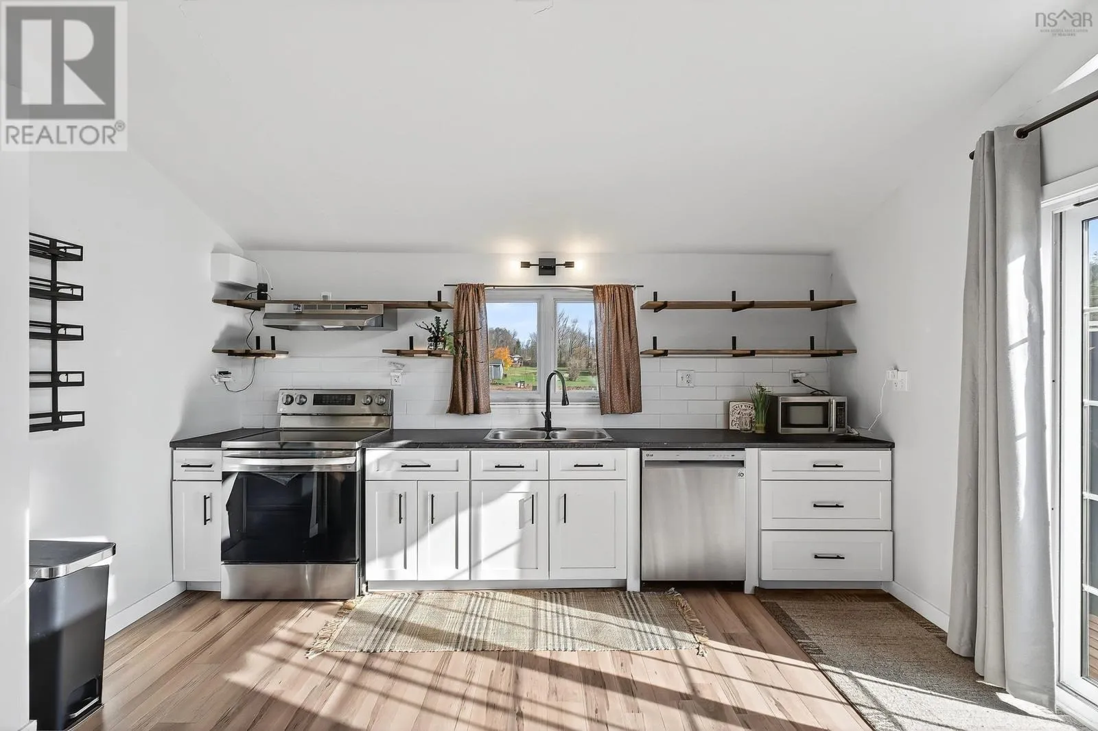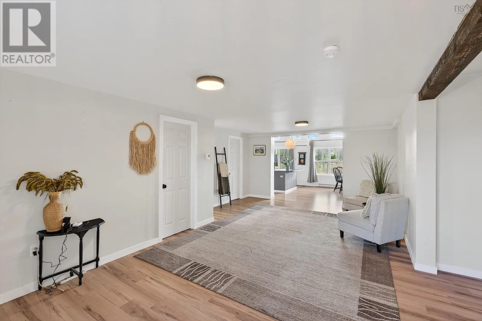 From Windsor head down Nova Scotia Trunk 14 towards Martock Mountain. Property on the left. Welcome to 4236 Hwy 14, a fully updated one-level home just minutes from Martock Mountain, 10 minutes to Windsor, and surrounded by nature, farmland, and fresh produce. This 2-bedroom, 1-bath home offers easy living for a small family, those seeking no-stairs convenience, or anyone looking for a weekend retreat close to ski hills, lakes, and vineyards. An oversized foyer with generous storage opens into a spacious living room, eat-in kitchen, and dining area with a large islandperfect for daily life or entertaining. The primary bedroom offers views of the ski hill and neighbouring pastures, plus a walk-in closet. Step outside to a private back deck with a new retractable awning and privacy screenideal for unwinding and watching local wildlife. Additional features include a massive 32x24 double attached garage with new electric doors, a brand-new 2400-gallon cistern with remote monitoring, and recent septic updates. There's also space to park your RV. The property is in the process of being subdivided; a new survey and full list of updates are available through your REALTOR®. (id:27476)