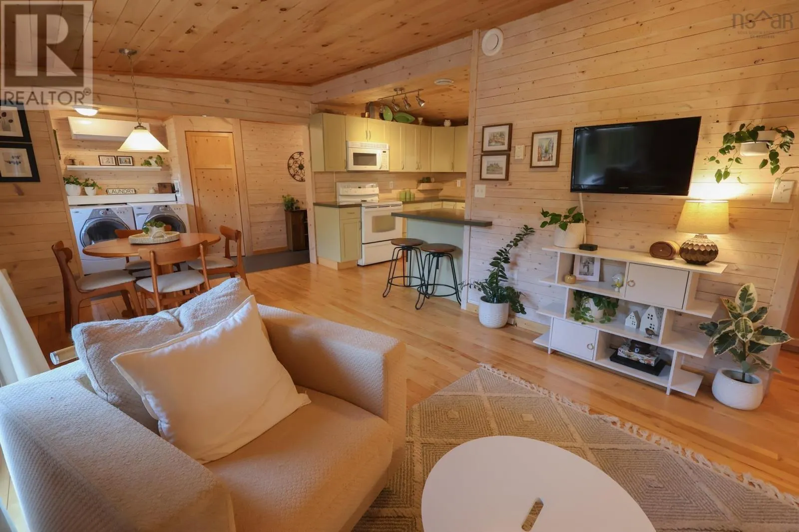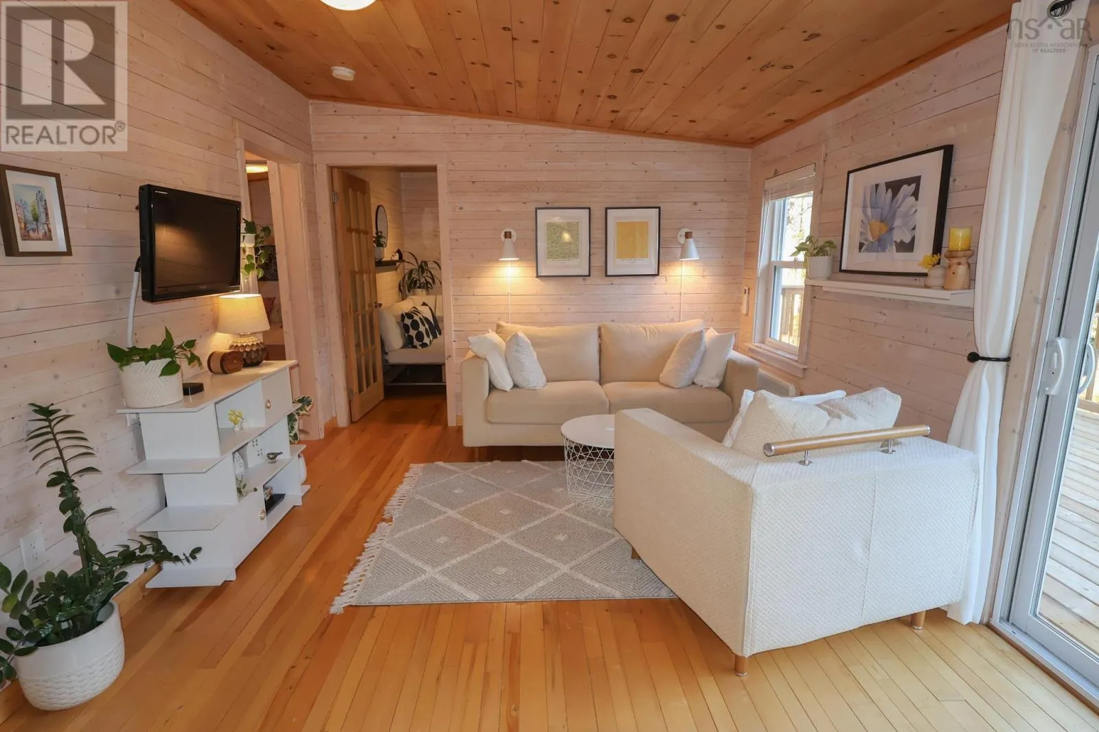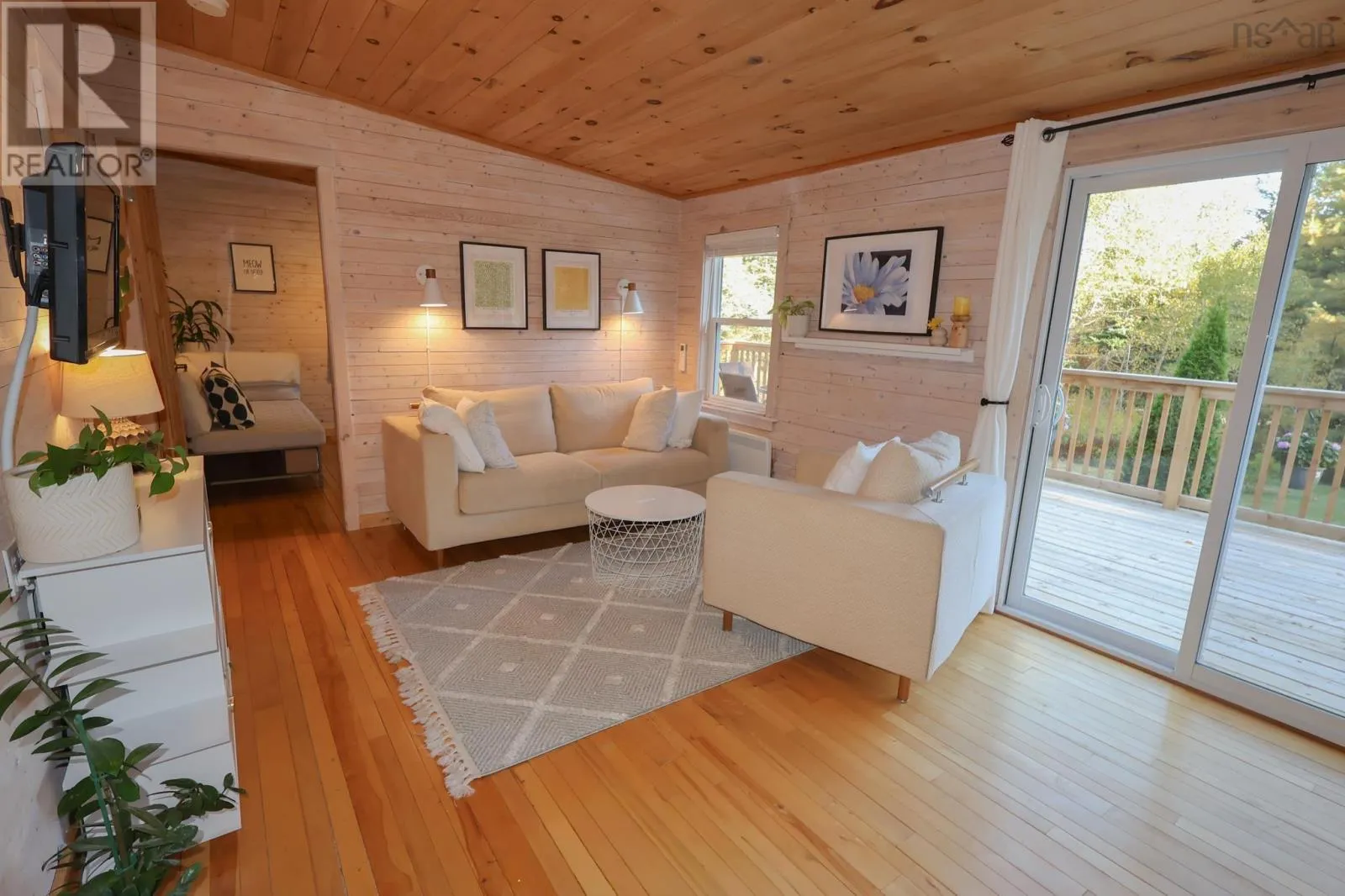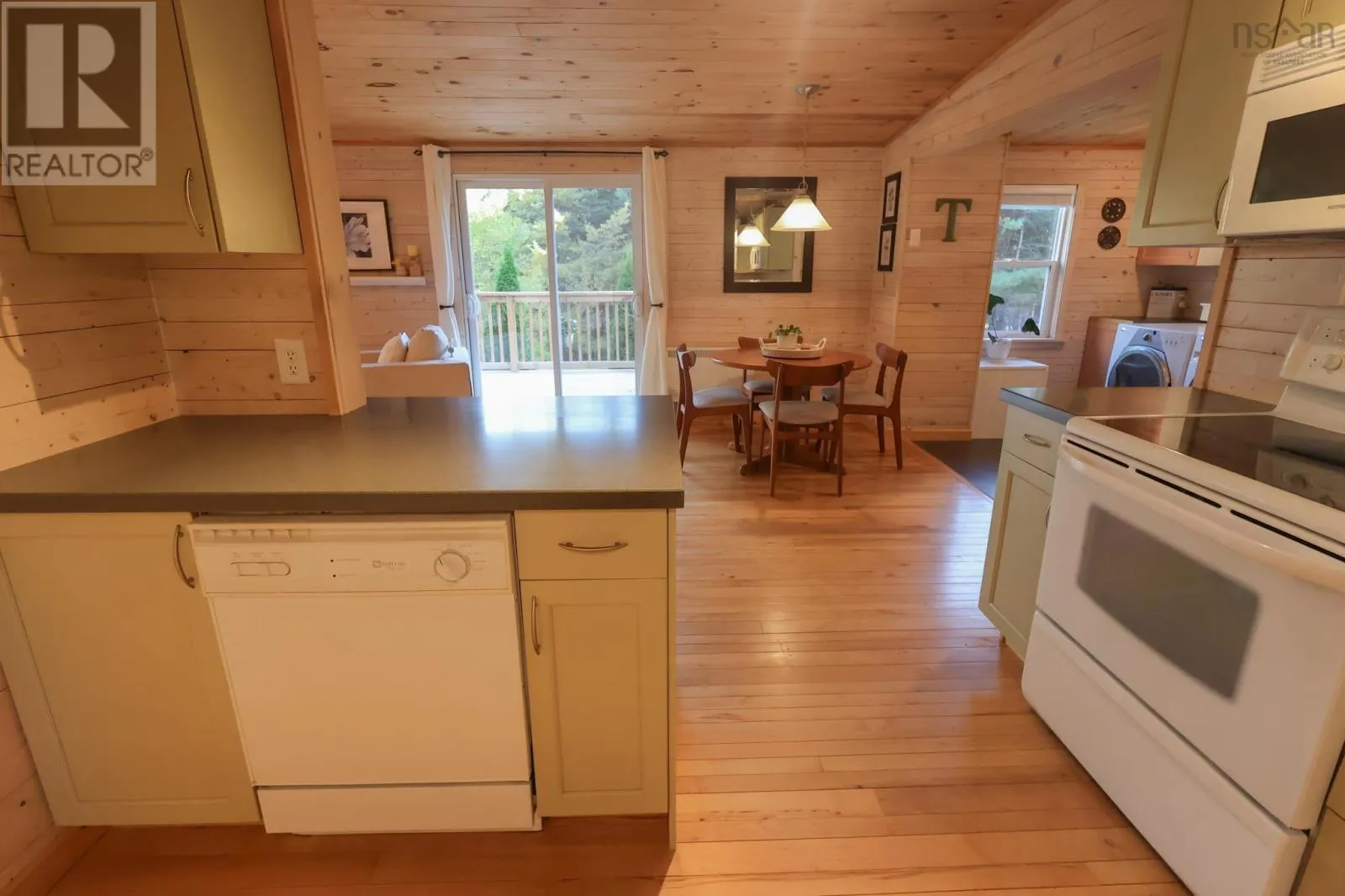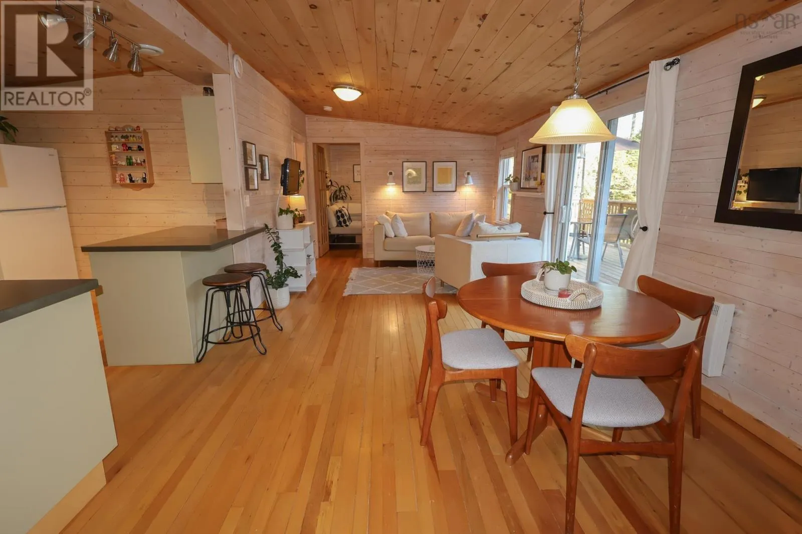 Take Highway 103 to Exit 8 and continue on Trunk 14 towards Windsor Rd, then left onto Appletree Drive and civic #22 will be on your right. Sign posted. Privacy, Location, Affordable, Lake access, and Move in ready!! This sweet 2 Bed and 1 Bath, one level living bungalow is easy living at it's absolute best! You will not only love this ideal location being only 4 minutes to EXIT 8 on Hwy 103, less than 10 minutes to Downtown Chester, and a quick and easy commute to Halifax, but you will love the comfort and security this private road offers. Drive up your winding tree lined driveway to a stunning and private landscaped yard that has been meticulously maintained. Step inside this immaculate Home to find a gorgeous Open Concept Living area that has had a complete transformation over the years making this picture perfect Home exactly what every savvy Buyer is looking for right now. The spacious entry is bright and welcoming, the main floor Laundry is so convenient, the Dining area offers a patio door to let that sun shine in, or to step out enjoy the large new deck to relax and unwind. This perfect layout offers a spacious Living Room, 2 large Bedrooms, updated full Bath, and this amazing Kitchen...will not disappoint!! There is a partial basement for your utilities and tons of storage, and if you need more, the 8 yr old 12x12 Shed will meet all of your needs. There have been so many upgrades including hot water heater (2024), new deck (2025), Generator switch, Metal Roof, Heat Pump, fridge (2024), and so much more! This all sounds amazing but let's top this off with the 20 ft right of way to Larder Lake to enjoy at your convenience all year long, and I think we may have just found you your New Home!! (id:27476)