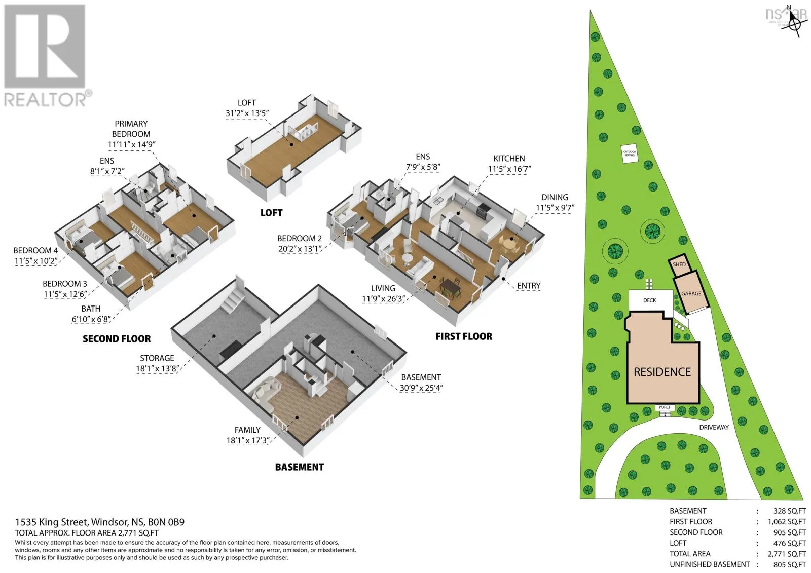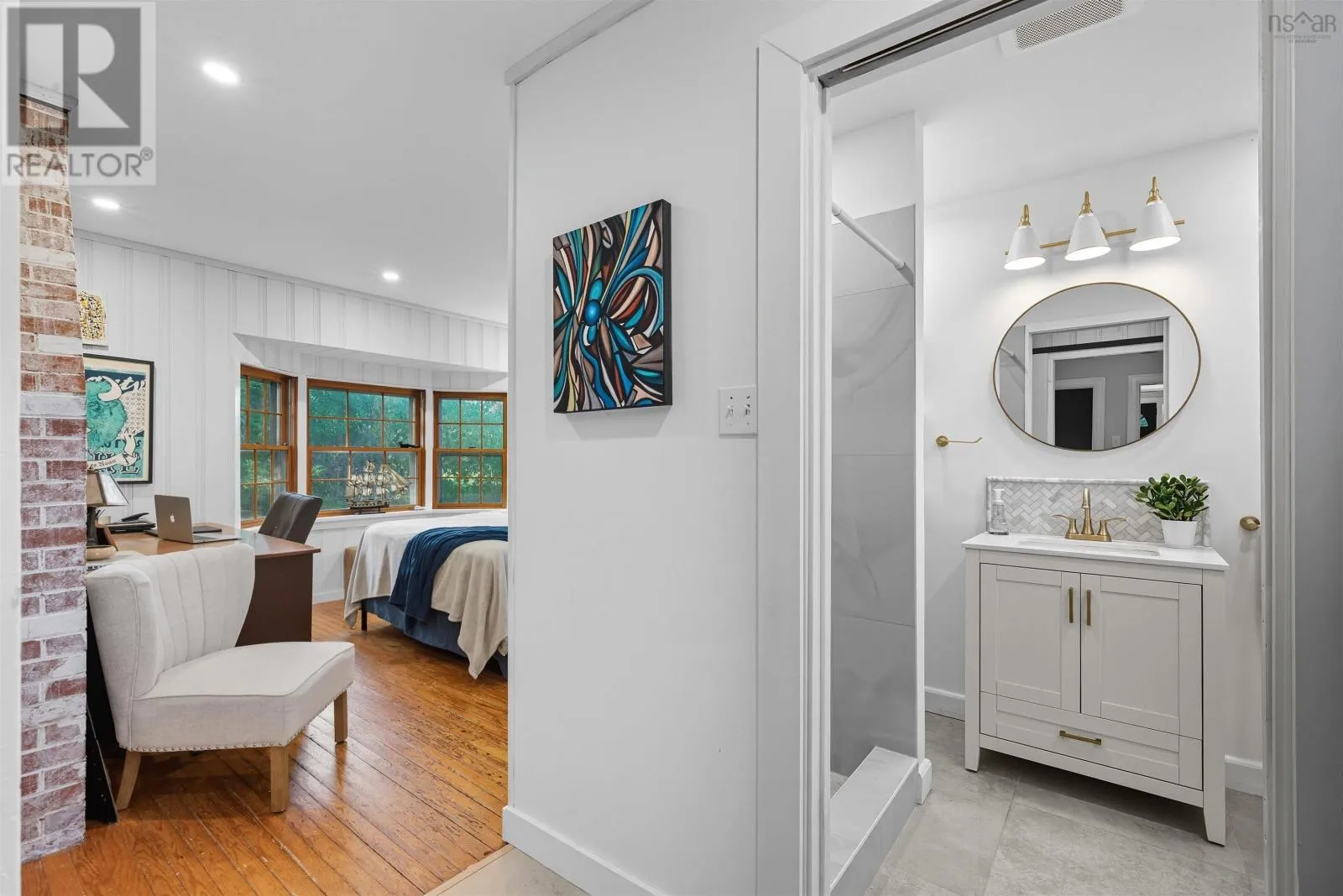 Highway 101 to Exit 5A - Wentworth Rd, left to King Street, Civic is on the left In the heart of Windsor, where charm and convenience meet, this beautifully reimagined character home awaits, mere steps from Kings-Edgehill School, parks, and the vibrant downtown core with easy Highway access, and an easy commute to Halifax. Gracefully blending classic architecture with modern flare, the main floor welcomes you with a bespoke kitchen, a generous living/dining room perfect for gathering, and a stylish three-piece bath. A versatile bonus room with walk-out access to the patio, offers endless possibilities; guest retreat, fourth bedroom, or an Airbnb. Ascend the staircase to find three inviting bedrooms, a 4 piece bath, and a primary with an ensuite featuring a luxurious tiled walk-in shower. Tucked above, the third-floor loft invites imagination, be it a cozy family room, creative studio, or the ultimate teen getaway. Below, the lower level offers a cozy family room, convenient laundry area, and over 1,000 square feet of unfinished space offering heaps of storage with its own exterior access. It's ready for your vision. Outside, a sweeping grand staircase and manicured gardens create a picture-perfect first impression, while a classic horseshoe driveway with dual parking areas ensures ease and elegance. The private backyard patio, enveloped by lush greenery, offers a secluded sanctuary for morning coffees, twilight dinners, or simply basking in the beauty of your own outdoor escape. (id:27476)