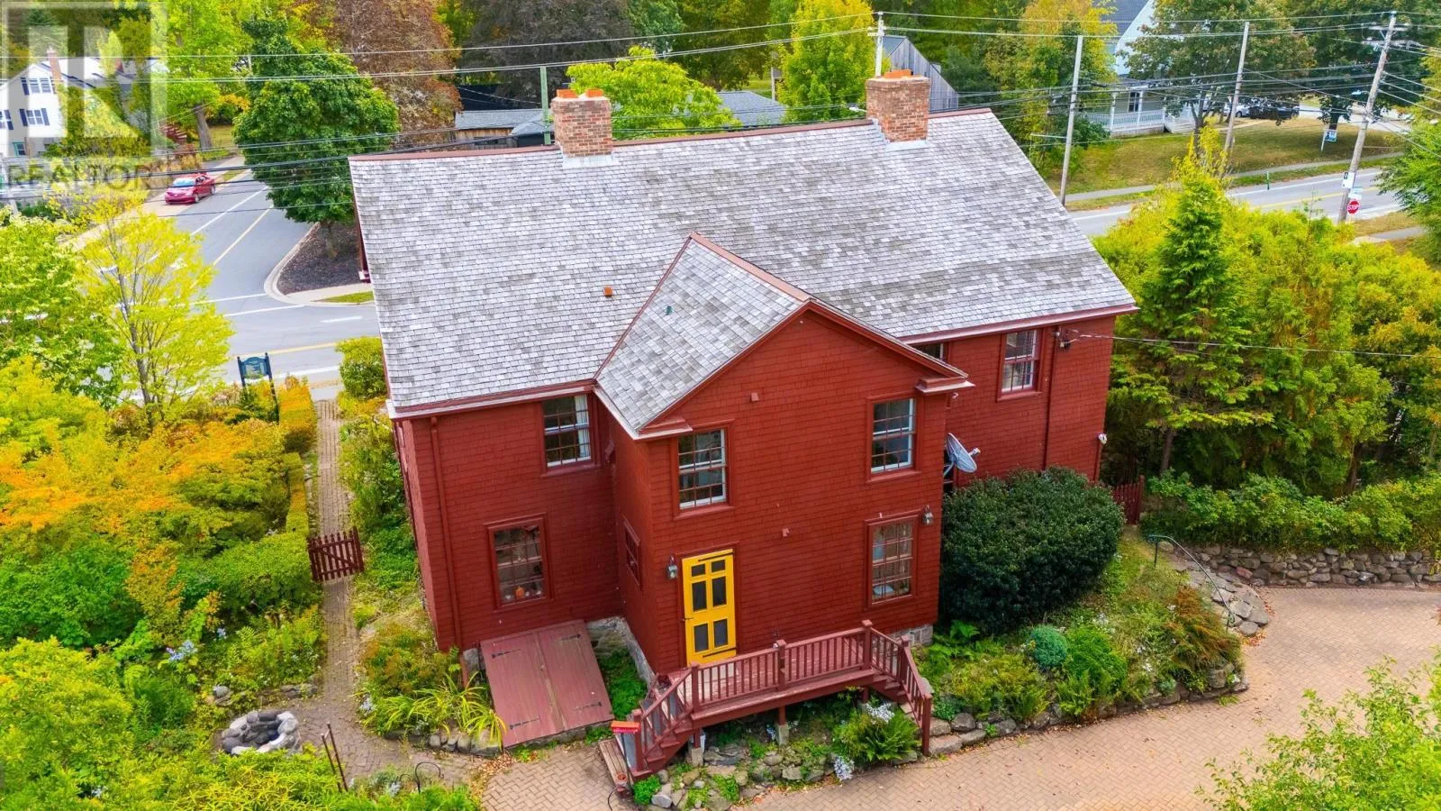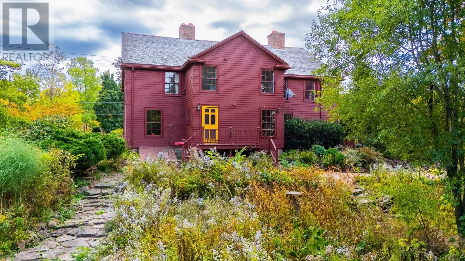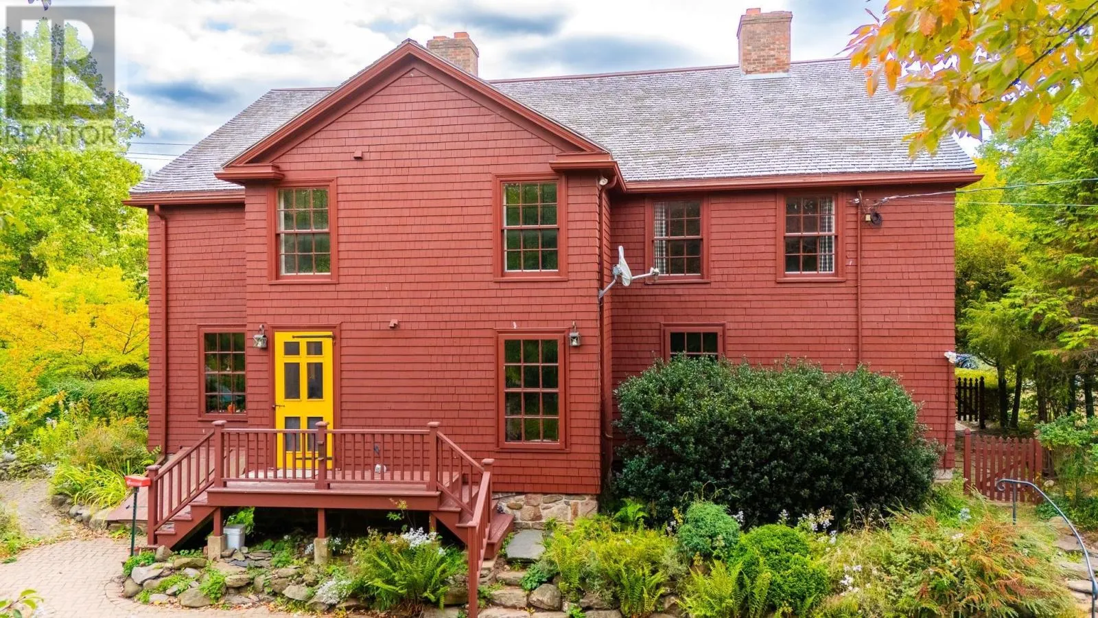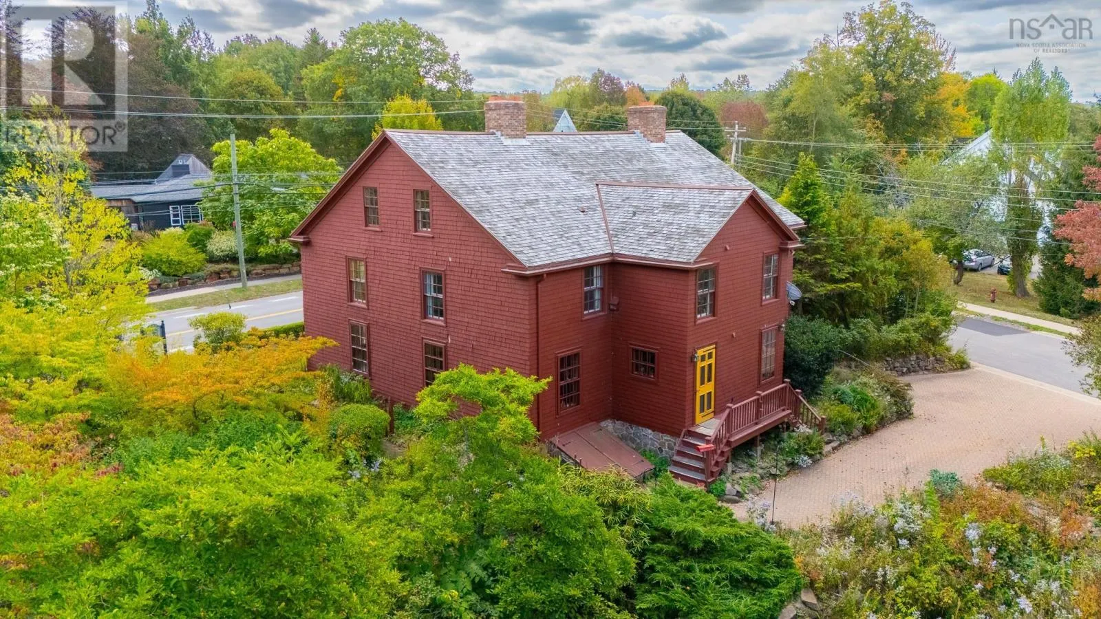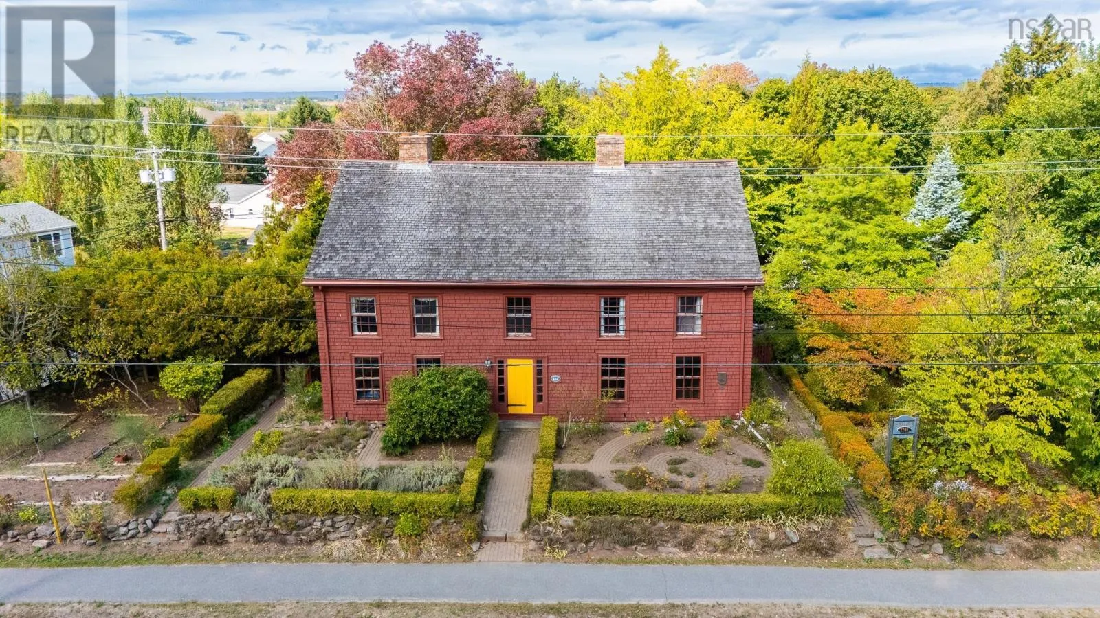 Travelling west from the downtown core, property is on your right. Step back in time at Kent Lodge, Wolfville's oldest home, originally built in 1775 on an earlier Acadian foundation. This New England Colonial-style residence blends remarkable history with essential updates from a 1980's renovation, including electrical and plumbing. Inside, a galley kitchen, multiple fireplaces, and a charming Keeping Room with bread oven showcase authentic character, while wide plank softwood floors and classic six-over-six windows preserve its 18th-century appeal. Five bedrooms and three full bathrooms include a main-level full bath, a rare convenience in a home of this era. The formal dining room and parlour complete the main floor. Set on a 19,600 sq.ft., R3 zoned lot with mature gardens, the property enjoys ample road frontage on both Main Street and Cherry Lane. With thoughtful attention, the grounds could once again reveal winding paths through diverse plantings, complemented by an old well and a rustic shed, creating a serene and historically rich outdoor retreat. (id:27476)