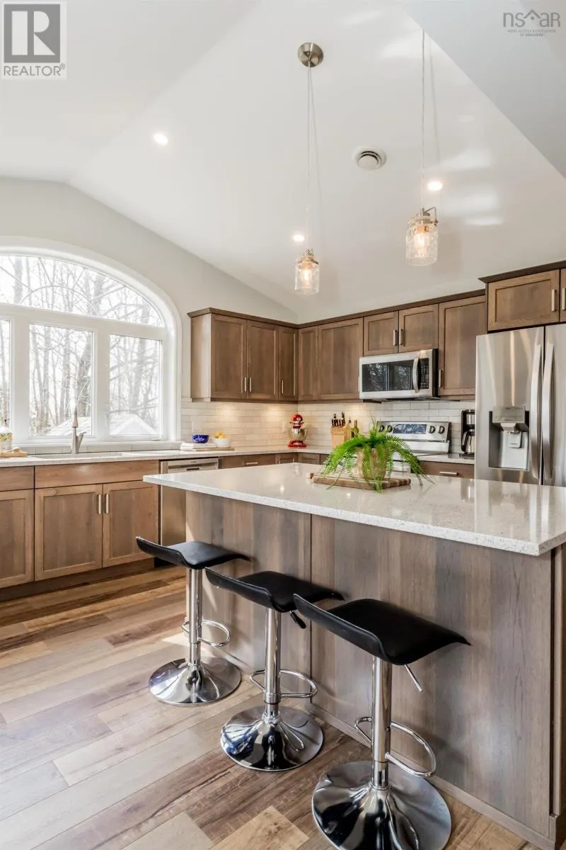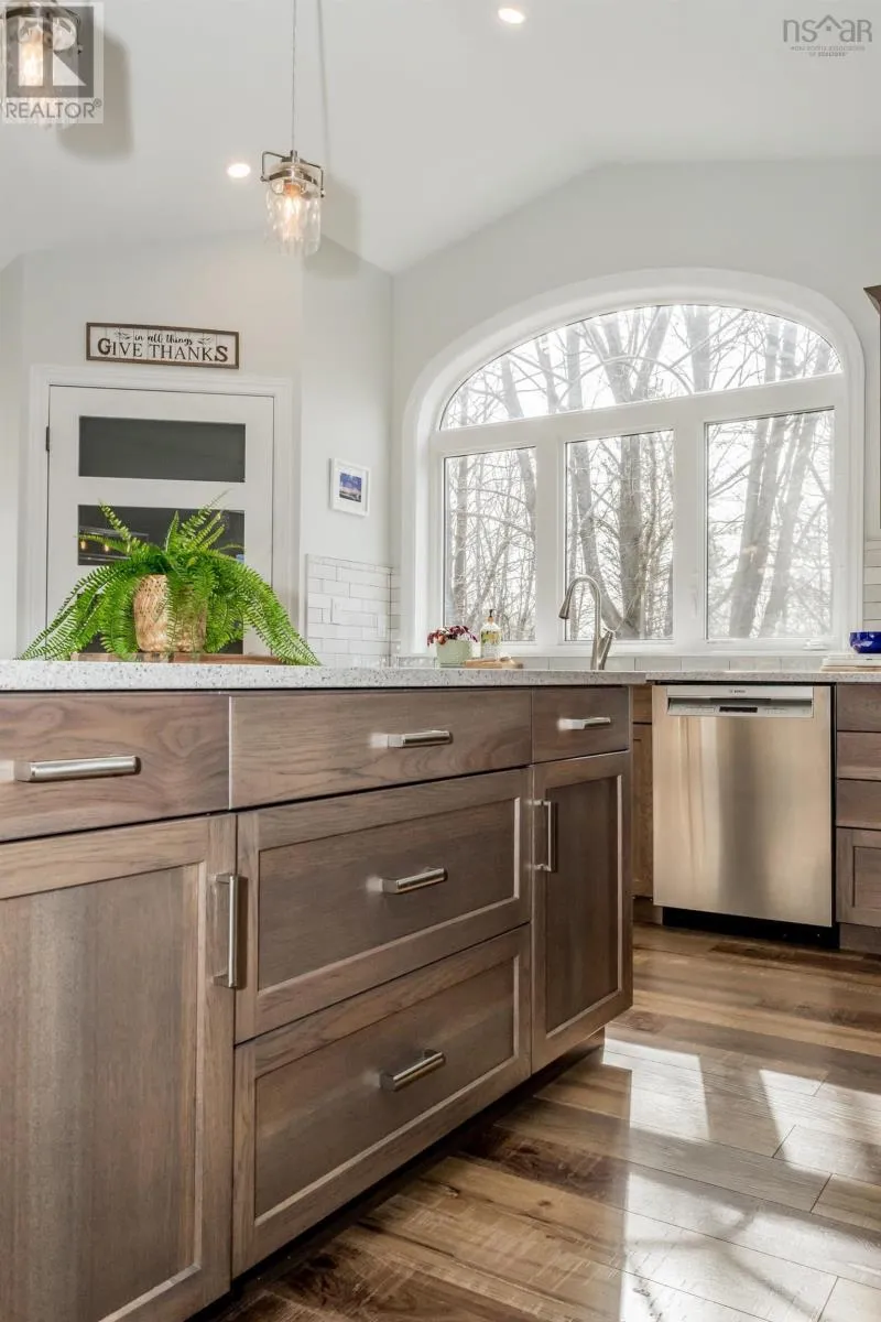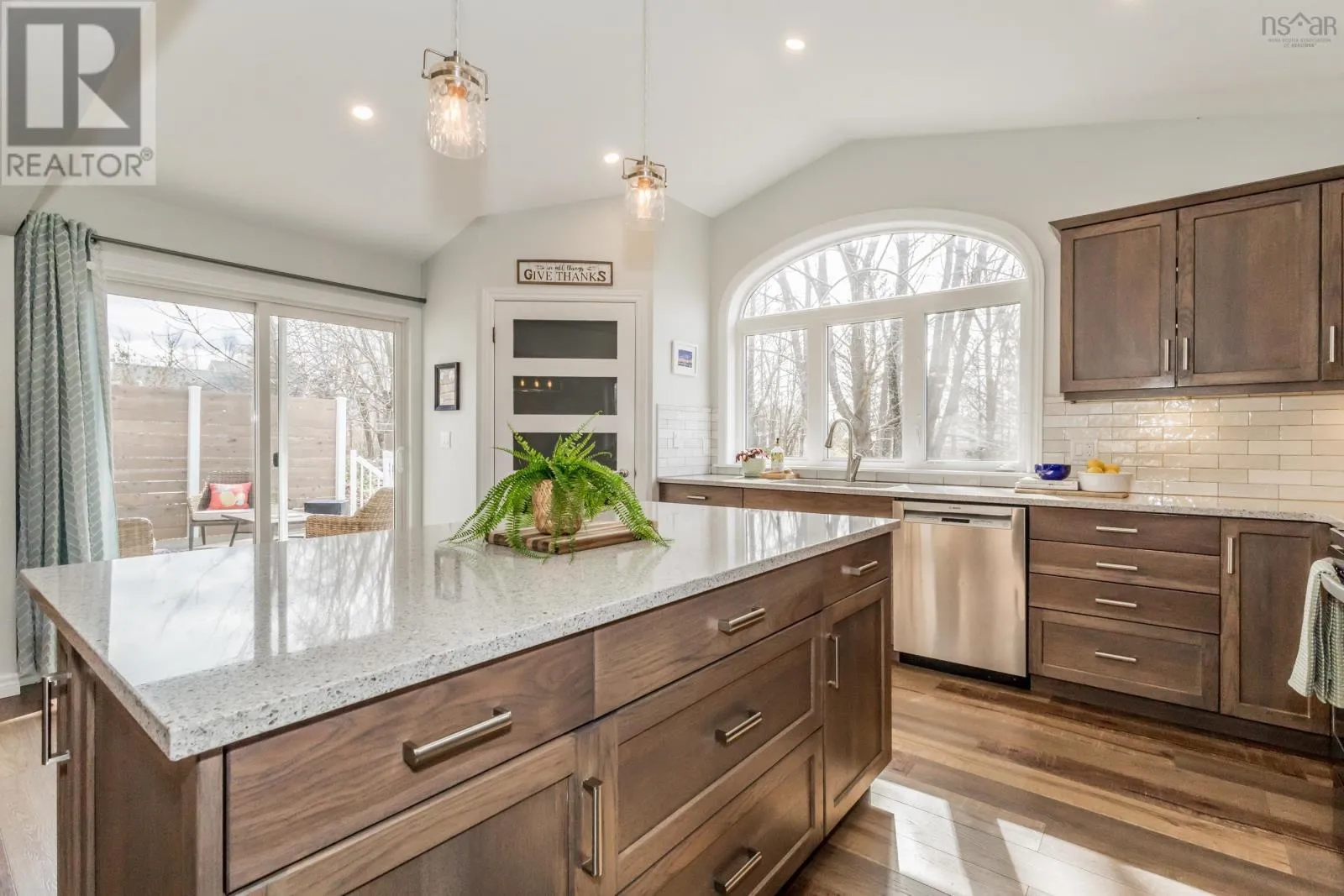 From Main St to Kent, house on right hand side, see signage. Beautiful Turnkey Home in the Heart of Wolfville! Welcome to this beautifully updated turnkey home, perfectly located in the delightful town of Wolfville. This spacious split-entry layout features 5 bedrooms and 2.5 bathrooms, making it an ideal choice for families. At the back of the house, a recent addition showcases a stunning custom kitchen equipped with hickory wood cabinets, quartz countertops, and a walk-in pantry. The center island and patio doors open onto a large back deck, seamlessly blending indoor and outdoor living. The bright and inviting family room is perfect for relaxation and entertaining, while a heat pump ensures year-round comfort. On the main level, youll find a full bathroom, a comfortable bedroom, and a generous primary bedroom with built-in closets for ample storage. The lower level serves as a fantastic retreat, featuring a spacious family room and a dedicated music room, offering plenty of space for guests or family activities. This area includes three bedrooms, one with a convenient half-bath ensuite, as well as a full bathroom and laundry facilities. Step outside to enjoy your private, treed backyardideal for outdoor fun, complete with a playset and a gaga ball pit. The gravel driveway offers ample parking for multiple vehicles. Conveniently located within walking distance to Acadia University, shops, and all the amenities Wolfville has to offer, this home combines comfort and convenience in one exceptional package. With its inviting curb appeal and thoughtful updates, this property is ready for you to call it home. Dont miss out on this opportunity! (id:27476)