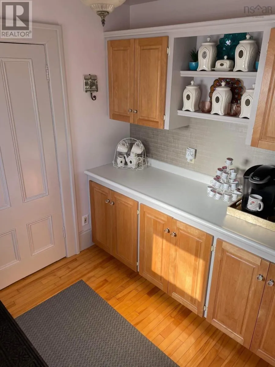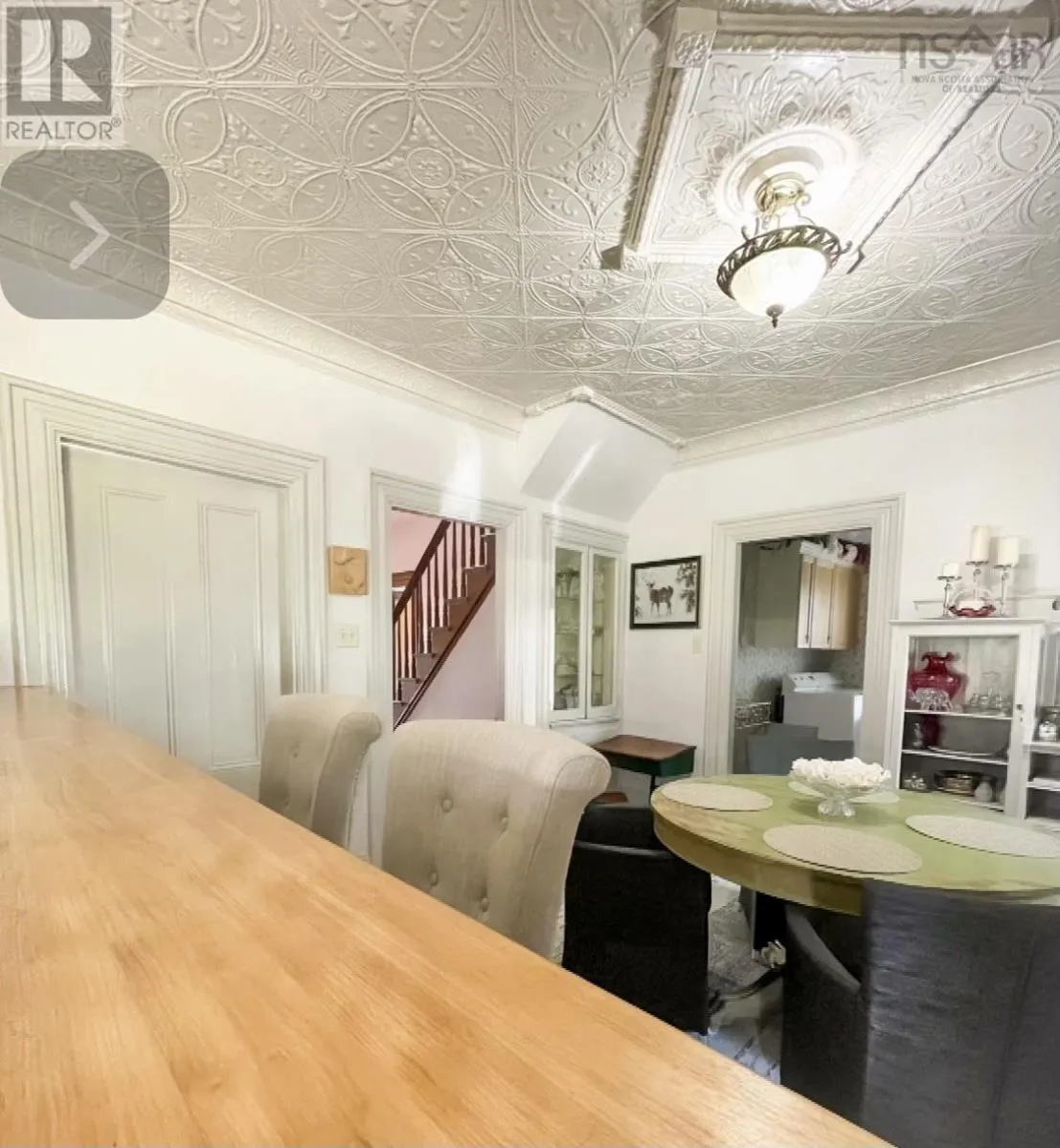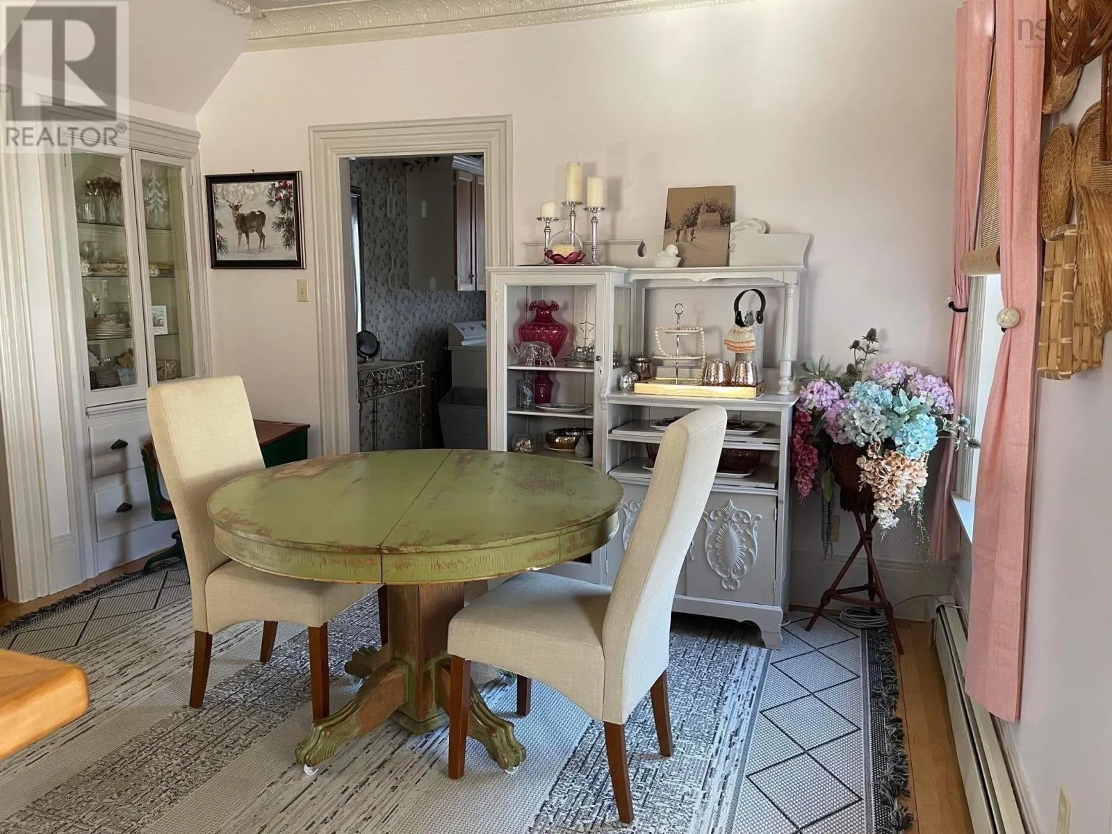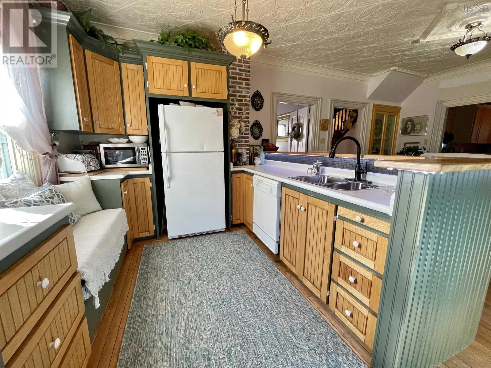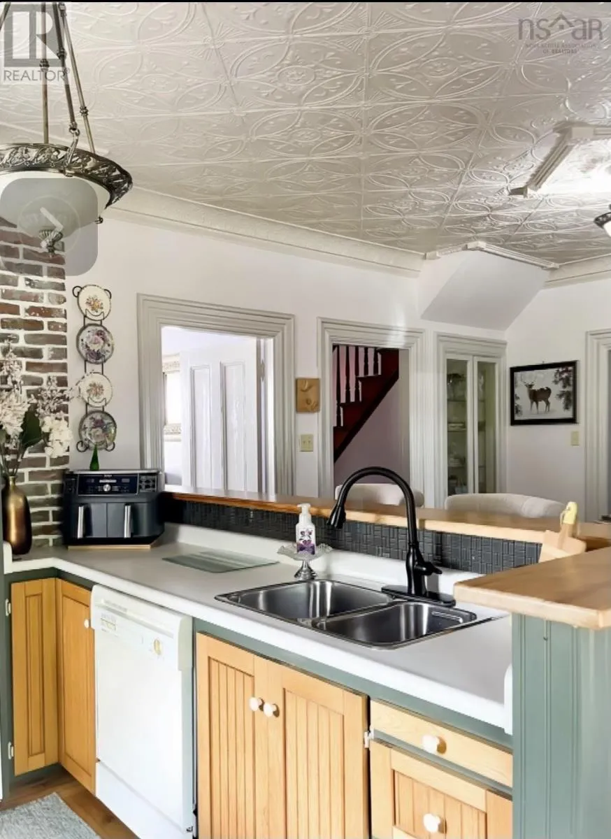 Travel towards Woods Harbour on HWY 3, house will be indicated with a for sale sign Step back in time upon entering this 3 bedroom, two bath show stopping century home with loads of character and quality construction located in the small oceanside community of Woods Harbour. This historic home is architecturally magnificent inside and out. Two large bay windows adorn the front of the home underneath the second story balcony. The inside features original moldings, doors, decorative baseboards, hardwood flooring, and tall ceilings which make the rooms even more open and airy. The kitchen and dining room areas have original tin ceilings. A living room/ study/ or main floor bedroom is adjacent to the formal parlour also on the main floor. The original two stained glass windows in the front foyer once upon a time served as a way to designate a person's wealth and social status. Upstairs you will find three spacious bedrooms, a walk-in closet, and large bathroom with antique claw foot tub. Walk out the door in the upstairs foyer to the classic balcony overlooking the front yard. In 1998 this home was newly dry walled throughout, and insulated. A new electric hot water heating system was installed and the electrical and plumbing was updated. New rain gutters were installed in 2020, the roof was reshingled in 2015, and a new furnace was installed in 2018. All the while maintaining the integrity of this home which was built in 1884. This property includes a 10 x 12 wired garage, and a shed. Just steps from the front door will lead you to the community sidewalk, a short walk will lead you to the local food market. Don't miss this exceptional opportunity to own a century home located in a picturesque oceanside community! Many recent cosmetic upgrades, check out the new listing photos. The lot behind the house has a hook up for municipal sewer should you wish to build a guest house, or put a mini home on it. (id:27476)