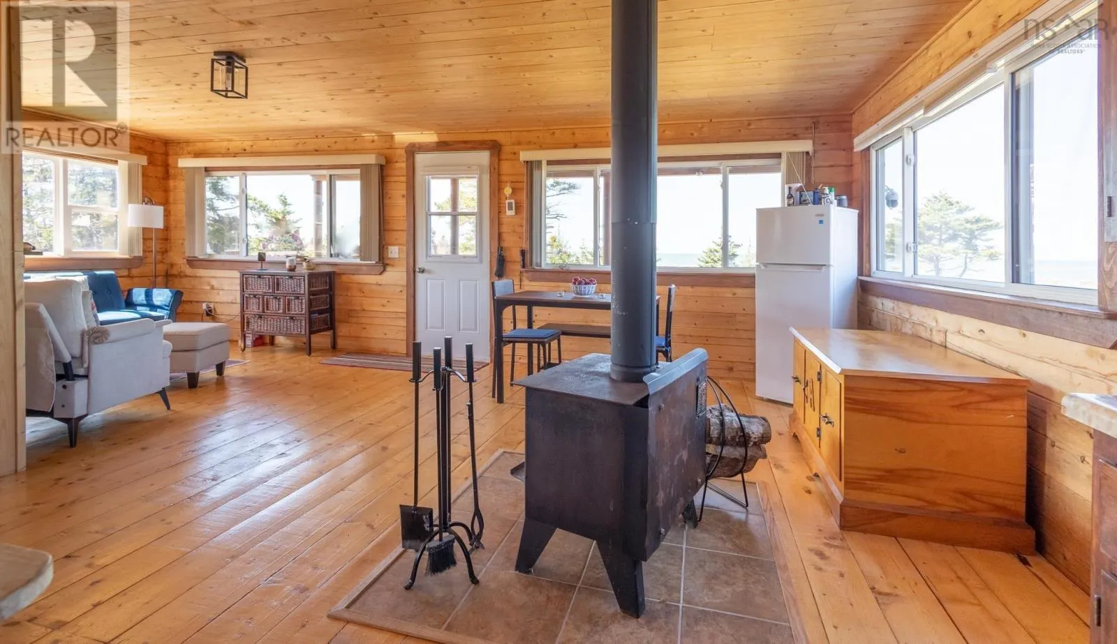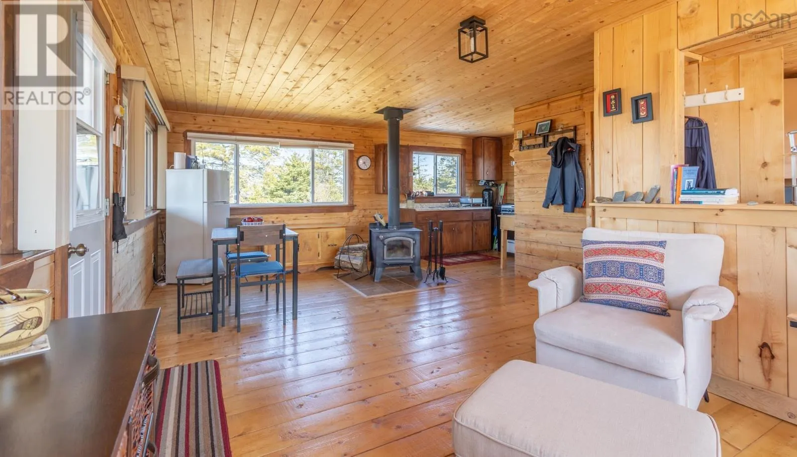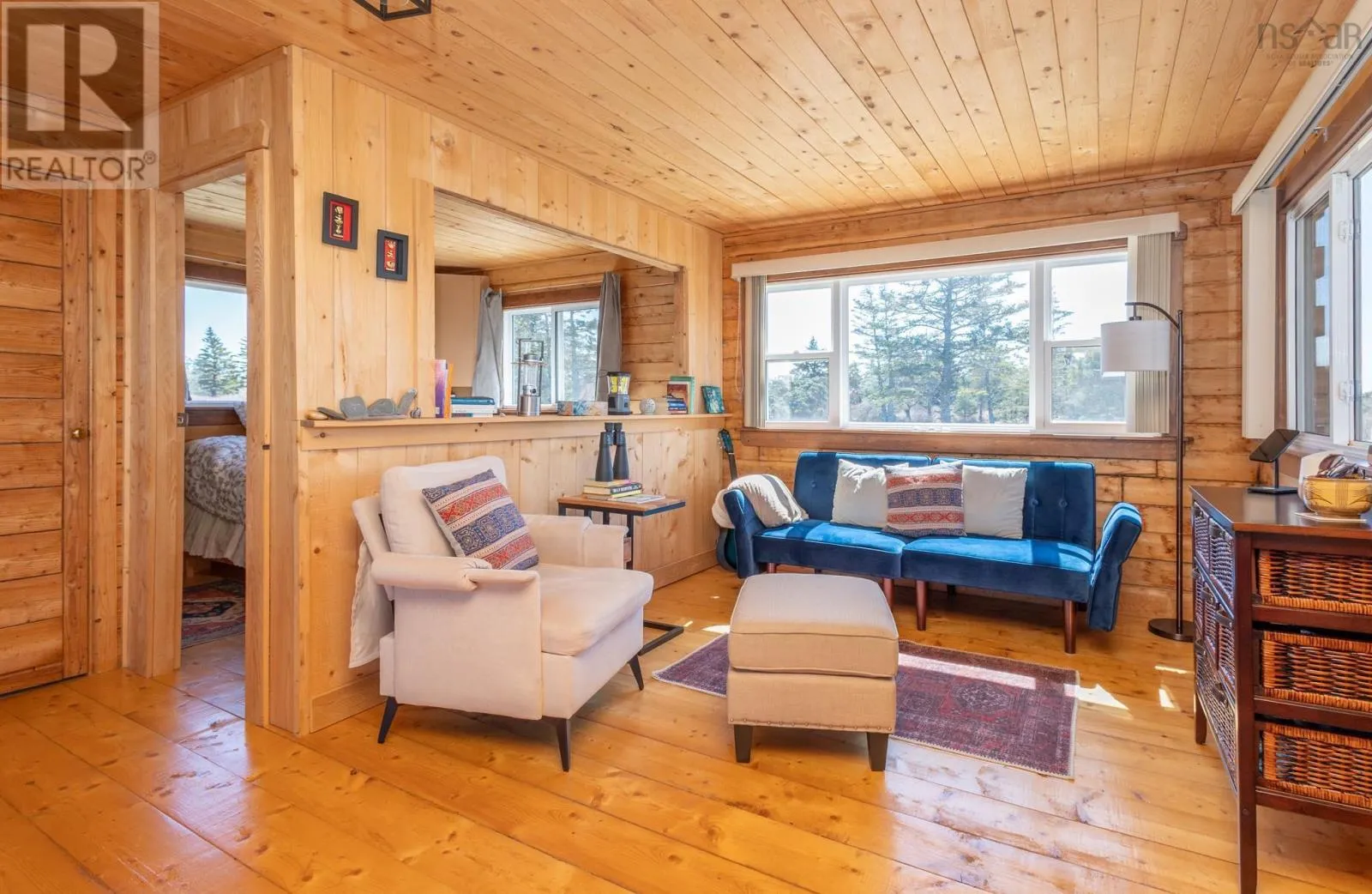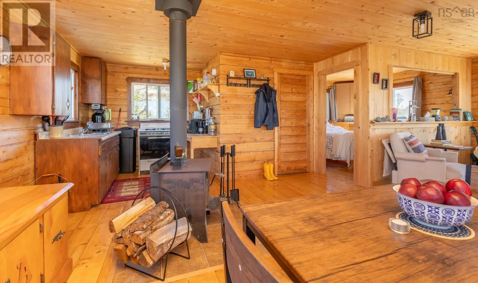 On Highway 1 West to Woodvale, turn onto Dargie Cove Road, civic # 25 will be just before the beach on the right. Welcome to 25 Dargie Cove in Woodvale! Escape to your private retreat on the serene shores of the ocean with this charming off-grid log home nestled on almost 5 acres of pristine land. Embrace the tranquility of nature as you step onto the expansive property, surrounded by lush greenery and breathtaking panoramic views of the ocean. Crafted with rustic elegance, the log home exudes warmth and character, offering a cozy sanctuary away from the hustle and bustle of city life. The open-concept living space features a wood stove for the colder evenings, large windows that flood the interior with natural light, creating an inviting ambiance that seamlessly blends indoor and outdoor living. The rustic charming kitchen makes it ideal for both casual family meals and entertaining guests. Retreat to the bedroom, a peaceful haven to unwind and recharge after a day of exploration. Outside, the expansive grounds provide endless opportunities for outdoor recreation and relaxation. Whether you're strolling through the wooded trails, enjoying a picnic by the shore, or simply soaking in the breathtaking sunsets from the comfort of your own covered deck, this property offers the ultimate escape into nature. With its secluded location and sustainable off-grid infrastructure, including solar power, this property offers a truly self-sufficient lifestyle while still being just a short drive from nearby amenities and attractions. Experience the beauty and serenity of coastal living at its finest with this exceptional off-grid log home on the ocean. (id:27476)