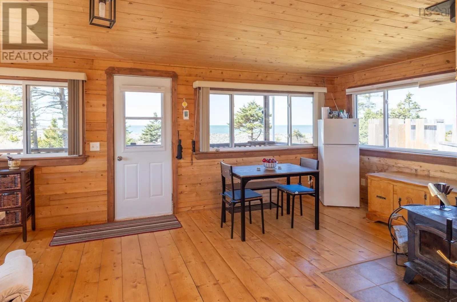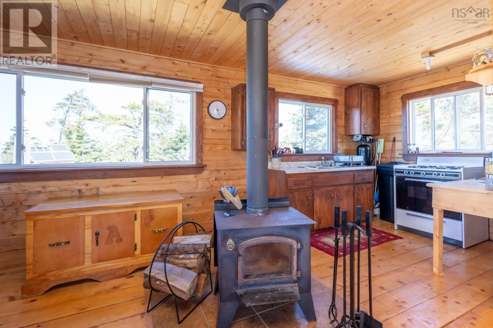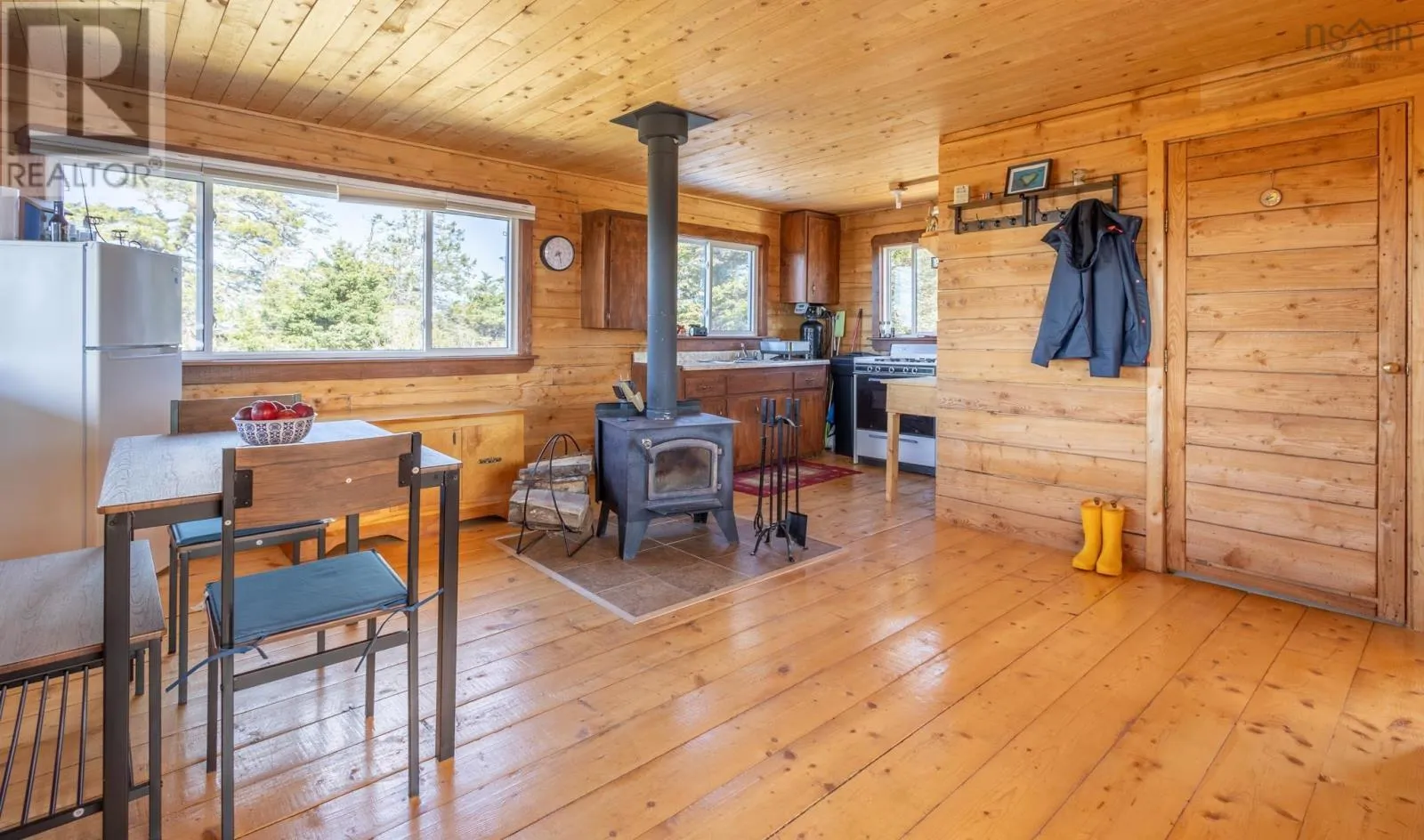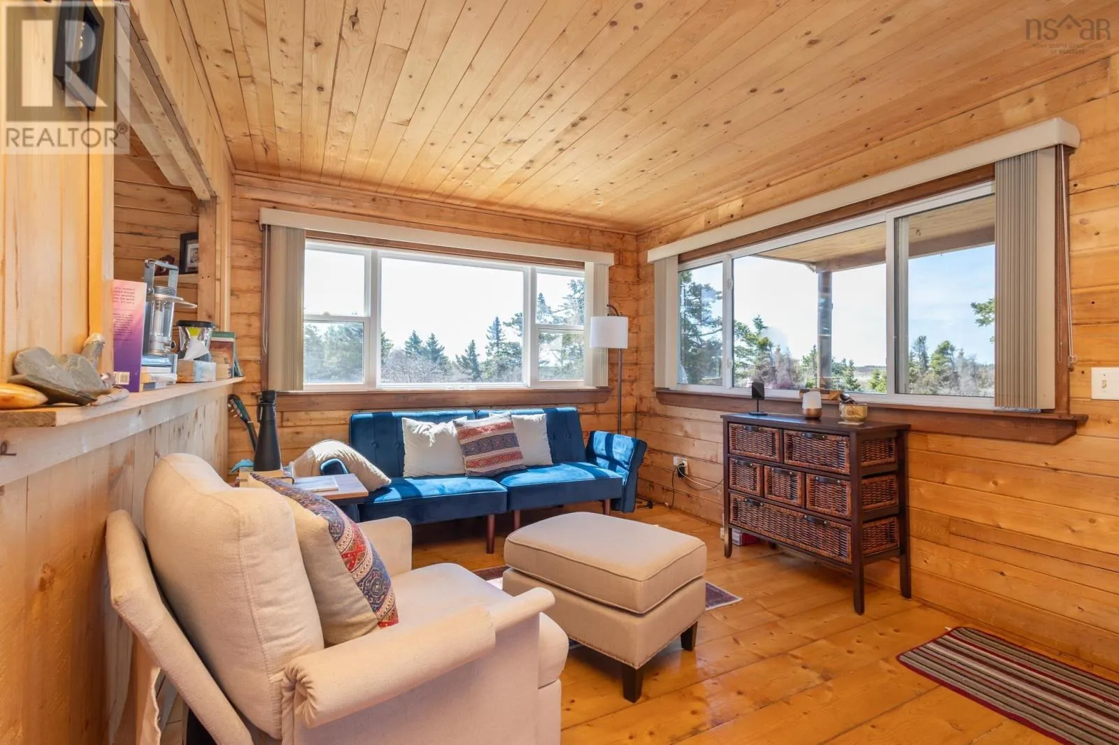 On Highway 1 West to Woodvale, turn onto Dargie Cove Road, civic # 25 will be just before the beach on the right. Welcome to 25 Dargie Cove in Woodvale! Escape to your private retreat on the serene shores of the ocean with this charming off-grid log home nestled on almost 5 acres of pristine land. Embrace the tranquility of nature as you step onto the expansive property, surrounded by lush greenery and breathtaking panoramic views of the ocean. Crafted with rustic elegance, the log home exudes warmth and character, offering a cozy sanctuary away from the hustle and bustle of city life. The open-concept living space features a wood stove for the colder evenings, large windows that flood the interior with natural light, creating an inviting ambiance that seamlessly blends indoor and outdoor living. The rustic charming kitchen makes it ideal for both casual family meals and entertaining guests. Retreat to the bedroom, a peaceful haven to unwind and recharge after a day of exploration. Outside, the expansive grounds provide endless opportunities for outdoor recreation and relaxation. Whether you're strolling through the wooded trails, enjoying a picnic by the shore, or simply soaking in the breathtaking sunsets from the comfort of your own covered deck, this property offers the ultimate escape into nature. With its secluded location and sustainable off-grid infrastructure, including solar power, this property offers a truly self-sufficient lifestyle while still being just a short drive from nearby amenities and attractions. Experience the beauty and serenity of coastal living at its finest with this exceptional off-grid log home on the ocean. (id:27476)