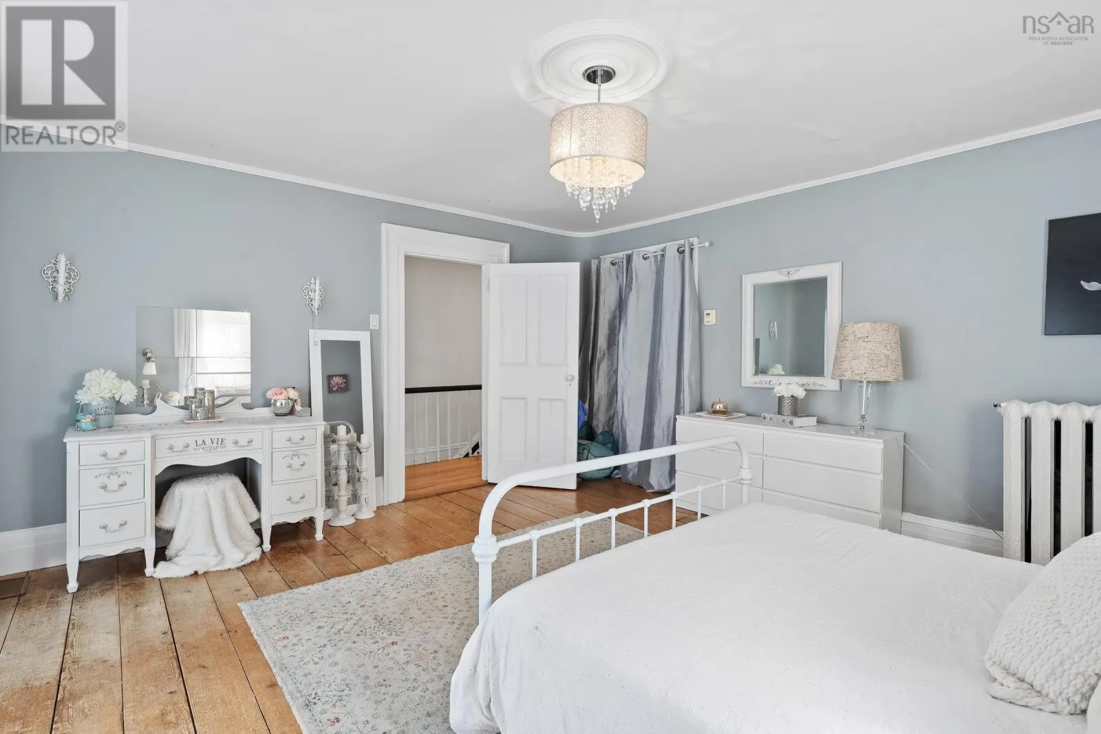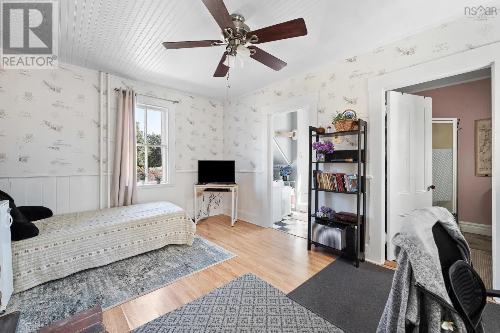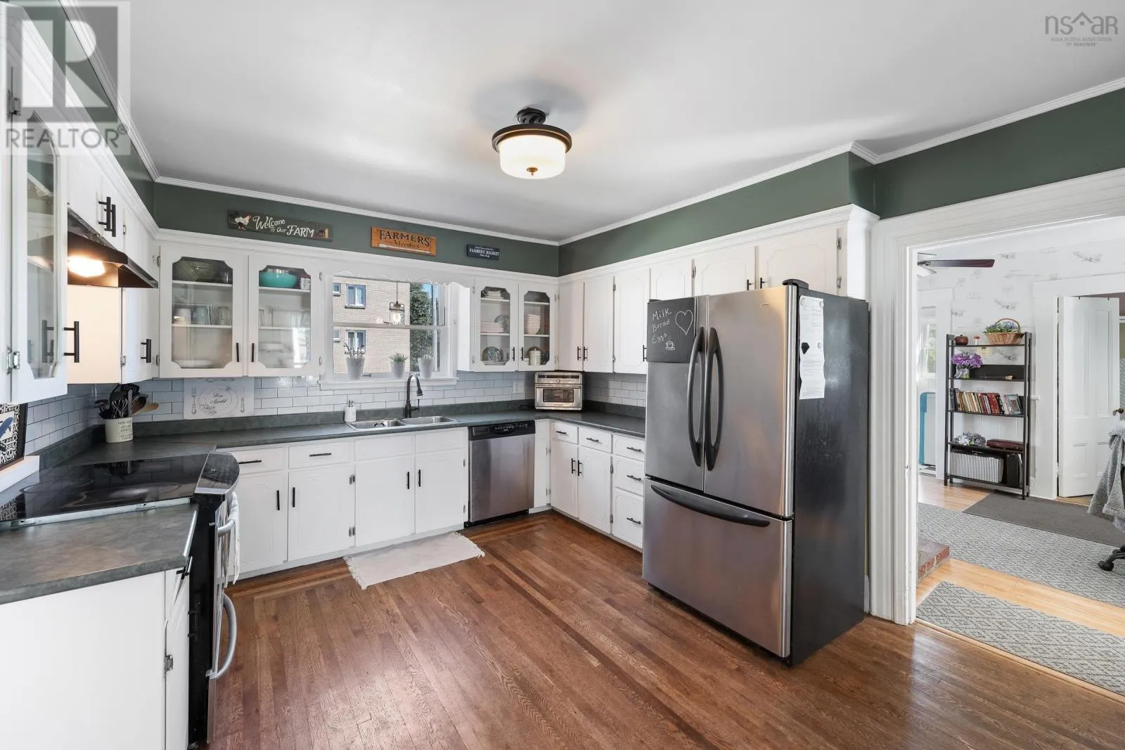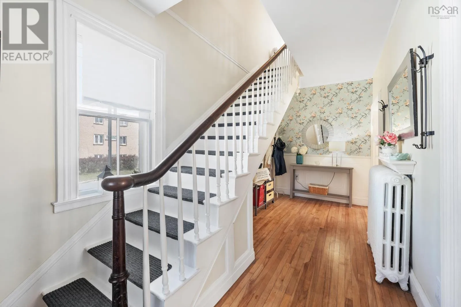 In Yarmouth, navigate to civic address 15 Brunswick Street. Signed. Step into this beautifully renovated century family home in the heart of Yarmouth, where timeless character meets modern comfort. From the moment you enter, you'll notice the graceful balance of old-world charm and thoughtful updates. The main floor features a spacious living room with tall ceilings, a sun-filled bay window facing west, and a cozy wood stove. Through elegant French doors, the formal dining room offers another bay window and classic atmosphere, with a charming 4-piece bath off to the side. The well-appointed kitchen includes stainless steel appliances, a walk-in pantry, generous cupboard and counter space, and opens into a large family room. Currently set up as a granny suite, this versatile space includes a second wood stove, an adjoining 3-piece bath, and separate laundry area with back stairs leading up to the second floor. From the main foyer, the grand staircase leads upstairs to 4 comfortable bedrooms, a smaller 5th bedroom currently used as a walk-in closet, and a stylish bathroom with a custom walk-in shower. A third-floor retreat provides a bonus living area, ideal for music, games, or a private hideaway. Outside, enjoy the covered 26' x 7' front porch with ramp access, overlooking a spacious private yard-perfect for family gatherings, play, or gardening. With its blend of character, space, and modern conveniences, this home is a rare find in center-town Yarmouth. (id:27476)