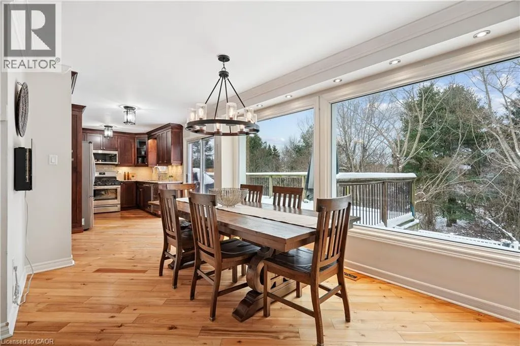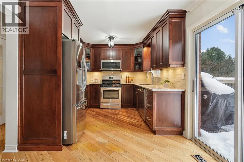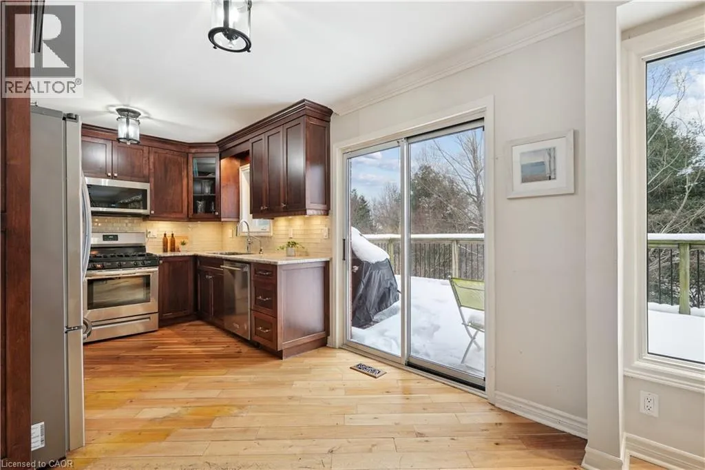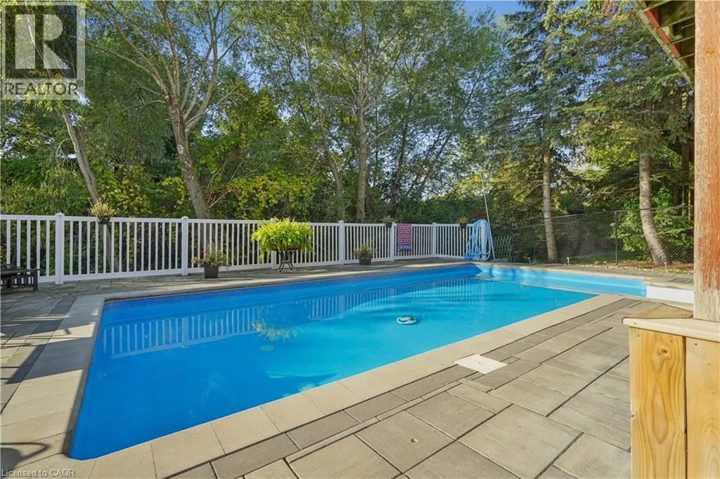Main St to Mill St W to Birchway Pl WALKOUT BASEMENT! INGROUND POOL! NO BACKYARD NEIGHBOURS! Welcome to 7 Birchway Place. This well-cared-for 2-storey detached home offers a comfortable blend of thoughtful updates, functional design, and a backyard oasis the whole family will love. Set on a quiet cul-de-sac and backing onto the natural green space surrounding Fairy Lake, this property offers rare privacy with no rear neighbours. Inside, the main floor features hardwood flooring throughout, a bright living room, a large dining area, and a well-appointed kitchen with granite countertops and under-cabinet lighting. A sliding door walkout leads to a raised deck overlooking mature trees and the heated inground pool below. Itâs the perfect setting for morning coffee, family dinners, or relaxed summer evenings. Upstairs, youâll find three comfortable bedrooms, including a spacious primary suite with an updated ensuite bathroom. The main bathroom has also been tastefully refreshed. The fully finished walkout basement expands your living space with a newer 3-piece bathroom, convenient second laundry area, and direct access to the backyard patio and pool. This layout is ideal for teens, extended family, or guests. The lot is an impressive 46.92 x 100.07 feet, offering room to relax and play. The heated inground pool is the highlight of the backyard, surrounded by a lower patio and framed by mature trees for added privacy. Additional features include a double-car garage, driveway parking for two vehicles, and main-floor laundry in addition to the basement laundry. Located just minutes from Downtown Acton, Prospect Park, and Fairy Lake, and only a 15 minute drive to the 401, this home brings together nature, convenience, and community in a family-friendly setting. (id:27476)