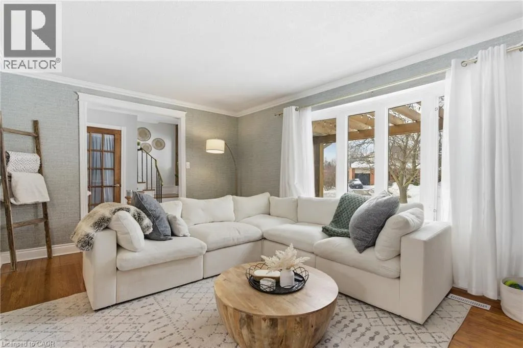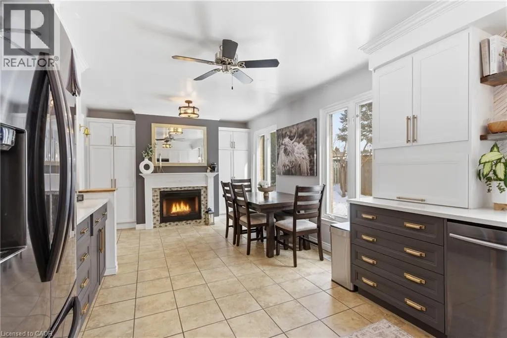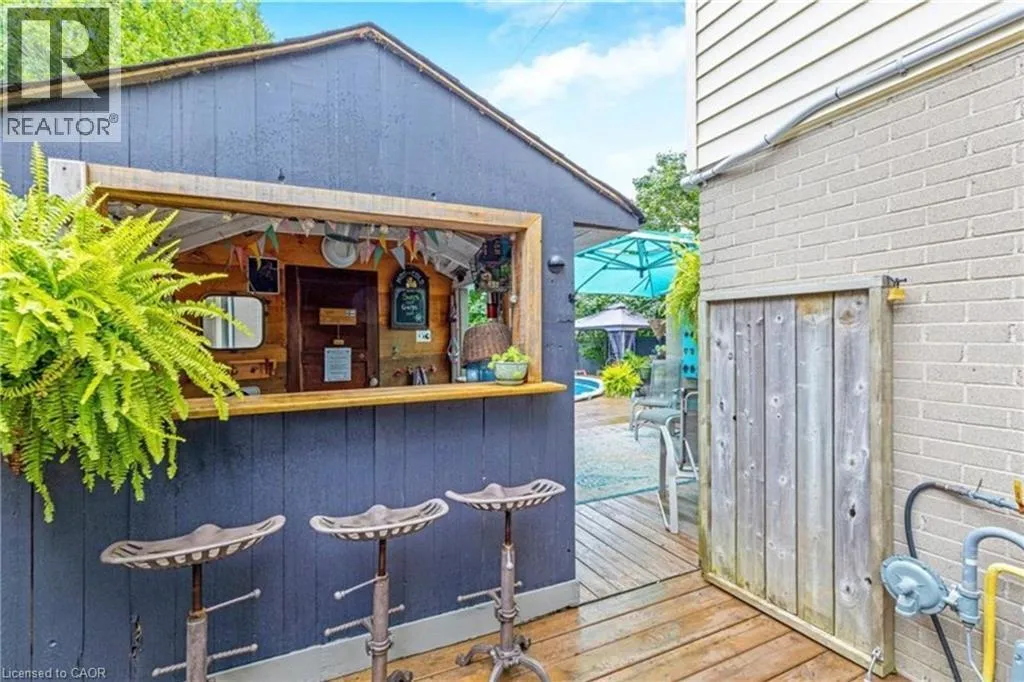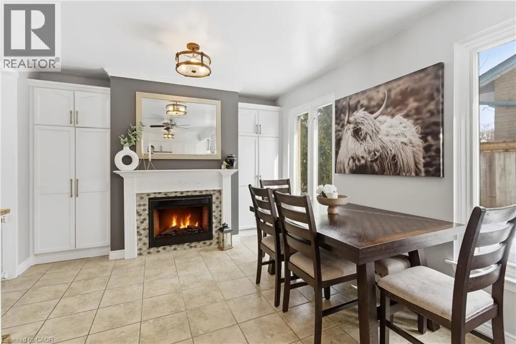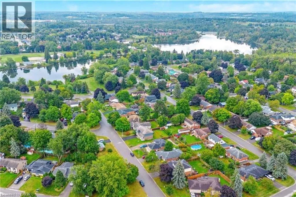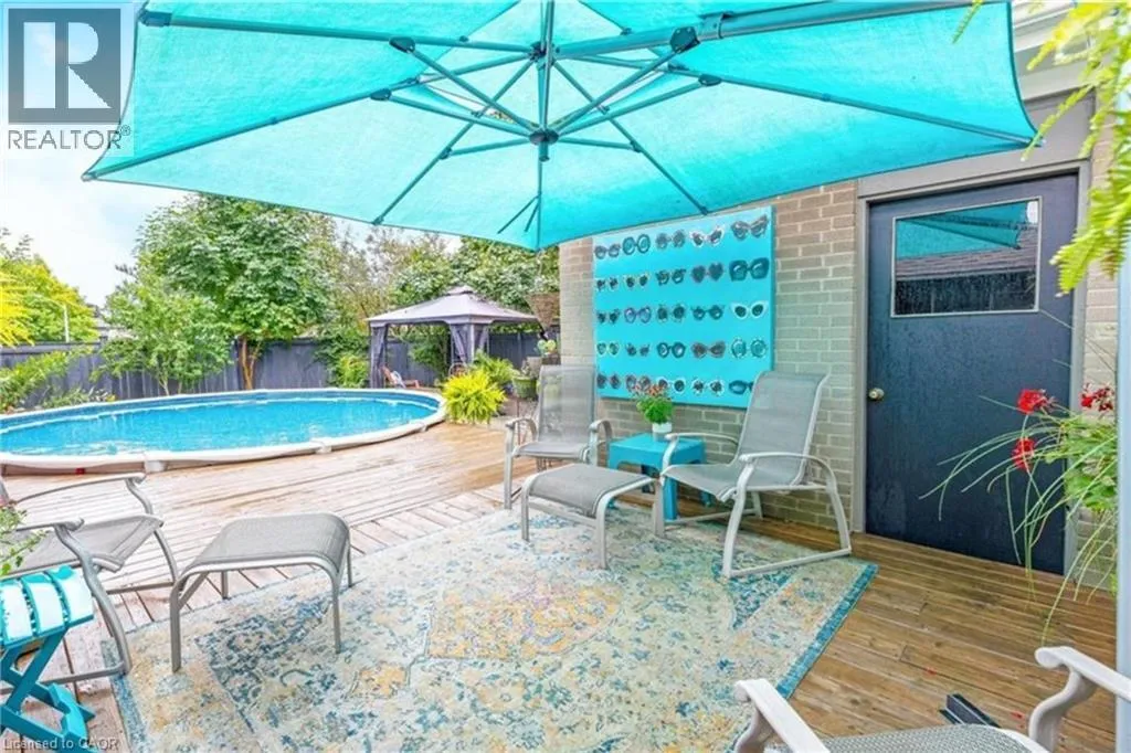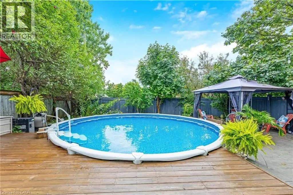The perfect place to create lasting family memories. This spacious 4+1 bedroom, two-storey home sits on a large corner lot in the highly sought-after Lakeview neighbourhood, just a short stroll from Fairy Lake, local schools, parks, and scenic walking trails. The property offers fantastic curb appeal with a large front lawn, mature trees, and beautifully maintained gardens. A welcoming front porch provides the perfect place to relax while watching the kids play, while the extended driveway offers parking for up to six vehicles. Inside, the main floor is warm and inviting. A bright family room featuring a large bay window flows into the renovated eat-in kitchen, thoughtfully designed with soft-close cabinetry, quartz countertops, black stainless steel appliances, and built-in wall cabinetry with pantry storage. An electric fireplace adds a cozy touch and creates the perfect setting for everyday living and family dinners. The main floor also includes a powder room, convenient garage access, and a walkout to the fully fenced backyard. The backyard is designed for entertaining and relaxation, complete with an above-ground pool, pool cabana, sauna, and a stamped concrete patio that creates your own private outdoor retreat. Upstairs, you will find four spacious bedrooms, including a bright primary bedroom with large windows and double closets. A four-piece bathroom with double sinks makes busy mornings easier for the whole family. A convenient laundry chute connects directly to the basement laundry area for added functionality. The fully finished basement adds even more living space with a fifth bedroom featuring large barn doors, along with a recreation room complete with a dry bar, perfect for movie nights, games, or hosting guests. Located just a short drive from Highway 401, this home offers an ideal balance of peaceful neighbourhood living and easy commuting. (id:27476)