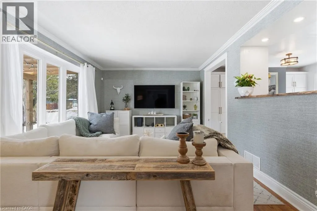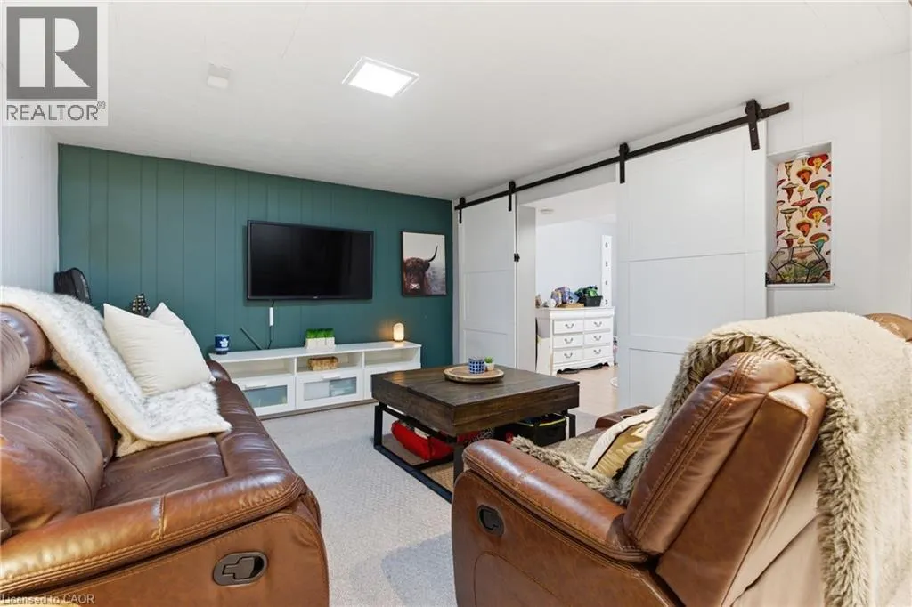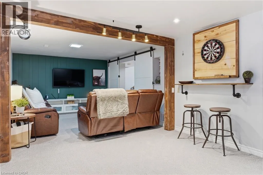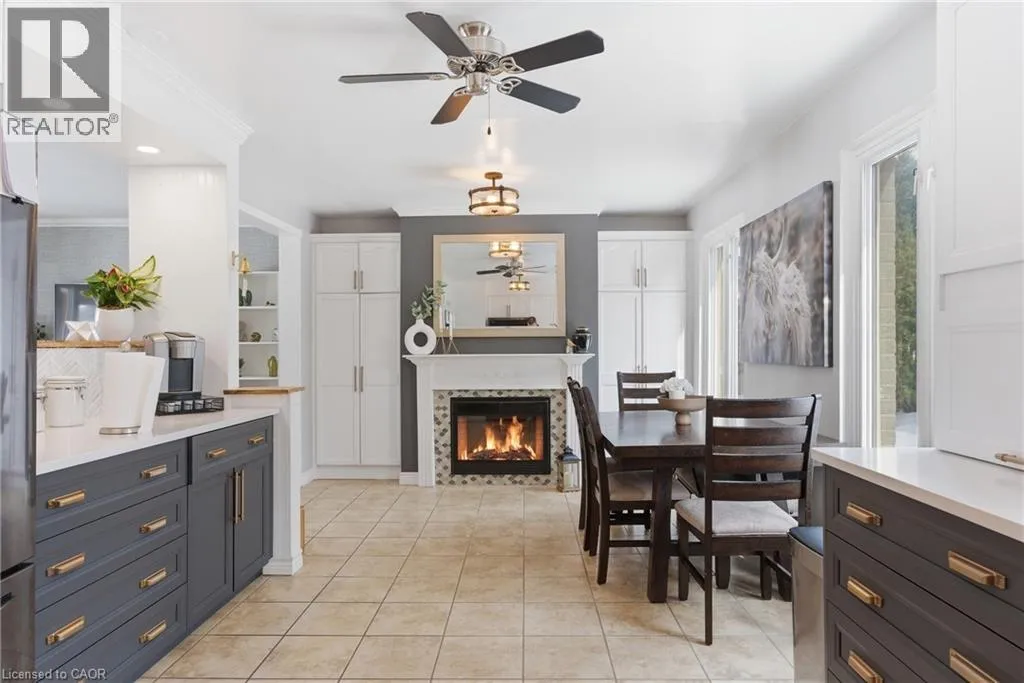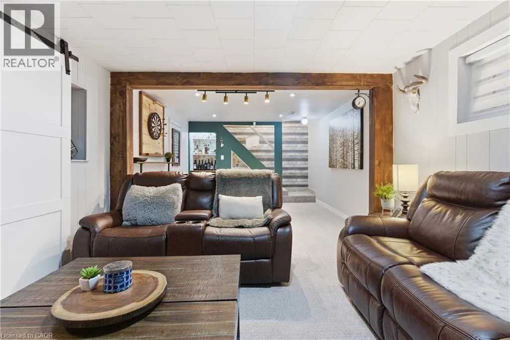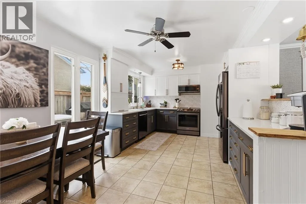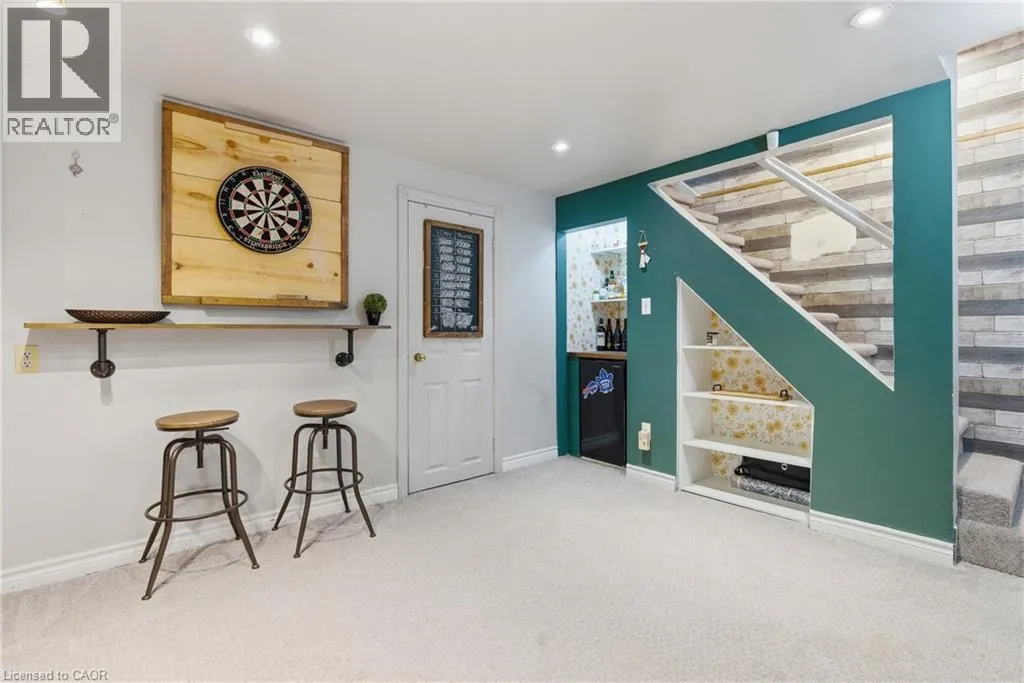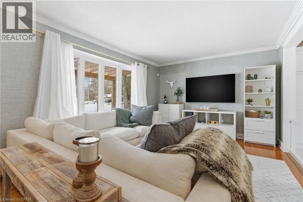 The perfect place to create lasting family memories. This spacious 4+1 bedroom, two-storey home sits on a large corner lot in the highly sought-after Lakeview neighbourhood, just a short stroll from Fairy Lake, local schools, parks, and scenic walking trails. The property offers fantastic curb appeal with a large front lawn, mature trees, and beautifully maintained gardens. A welcoming front porch provides the perfect place to relax while watching the kids play, while the extended driveway offers parking for up to six vehicles. Inside, the main floor is warm and inviting. A bright family room featuring a large bay window flows into the renovated eat-in kitchen, thoughtfully designed with soft-close cabinetry, quartz countertops, black stainless steel appliances, and built-in wall cabinetry with pantry storage. An electric fireplace adds a cozy touch and creates the perfect setting for everyday living and family dinners. The main floor also includes a powder room, convenient garage access, and a walkout to the fully fenced backyard. The backyard is designed for entertaining and relaxation, complete with an above-ground pool, pool cabana, sauna, and a stamped concrete patio that creates your own private outdoor retreat. Upstairs, you will find four spacious bedrooms, including a bright primary bedroom with large windows and double closets. A four-piece bathroom with double sinks makes busy mornings easier for the whole family. A convenient laundry chute connects directly to the basement laundry area for added functionality. The fully finished basement adds even more living space with a fifth bedroom featuring large barn doors, along with a recreation room complete with a dry bar, perfect for movie nights, games, or hosting guests. Located just a short drive from Highway 401, this home offers an ideal balance of peaceful neighbourhood living and easy commuting. (id:27476)
