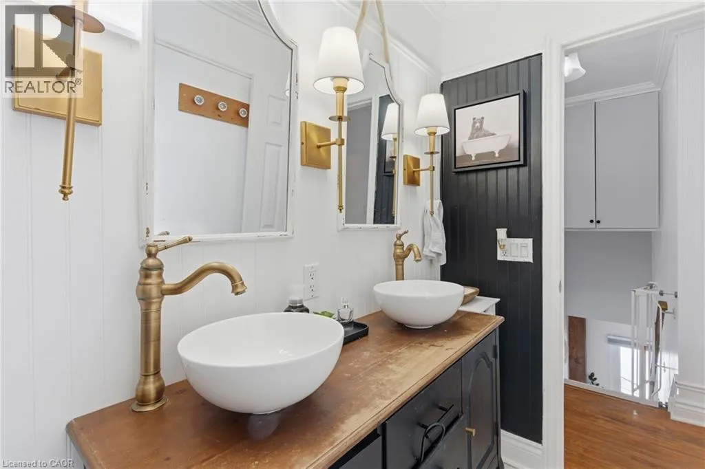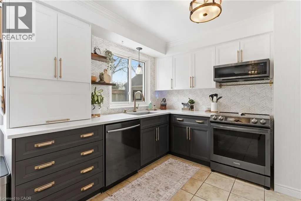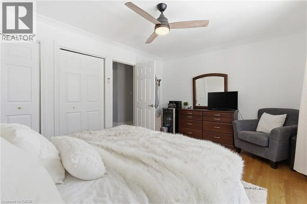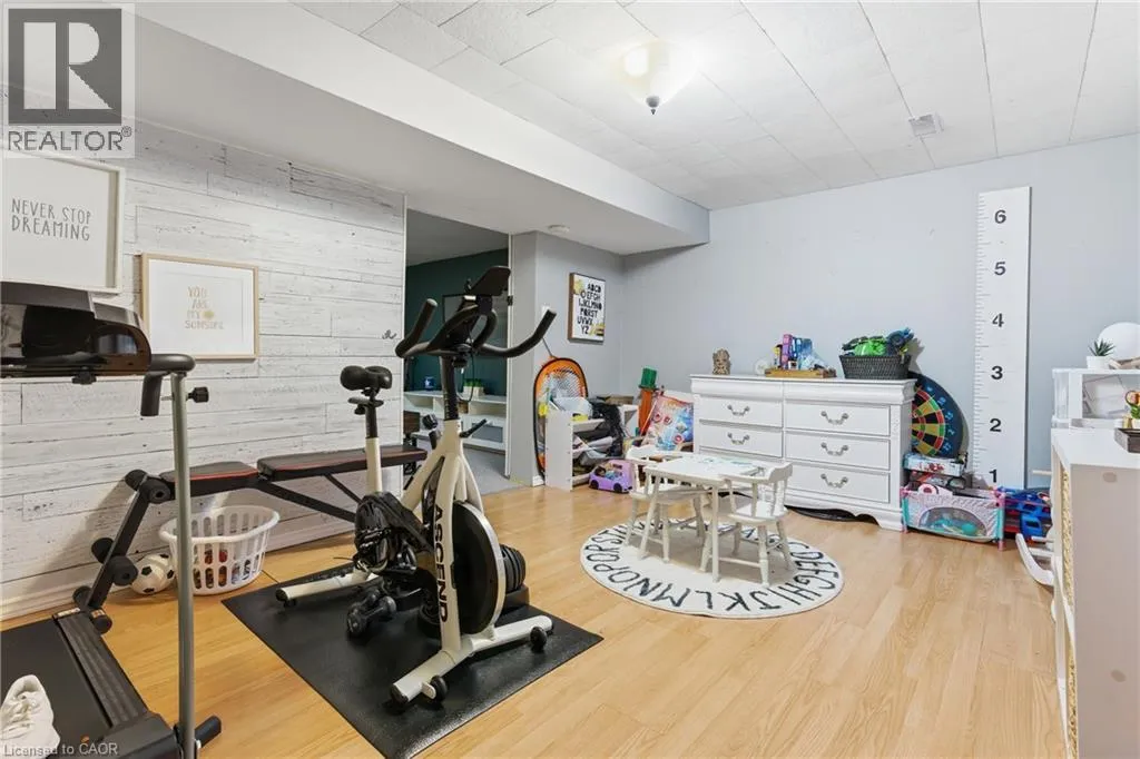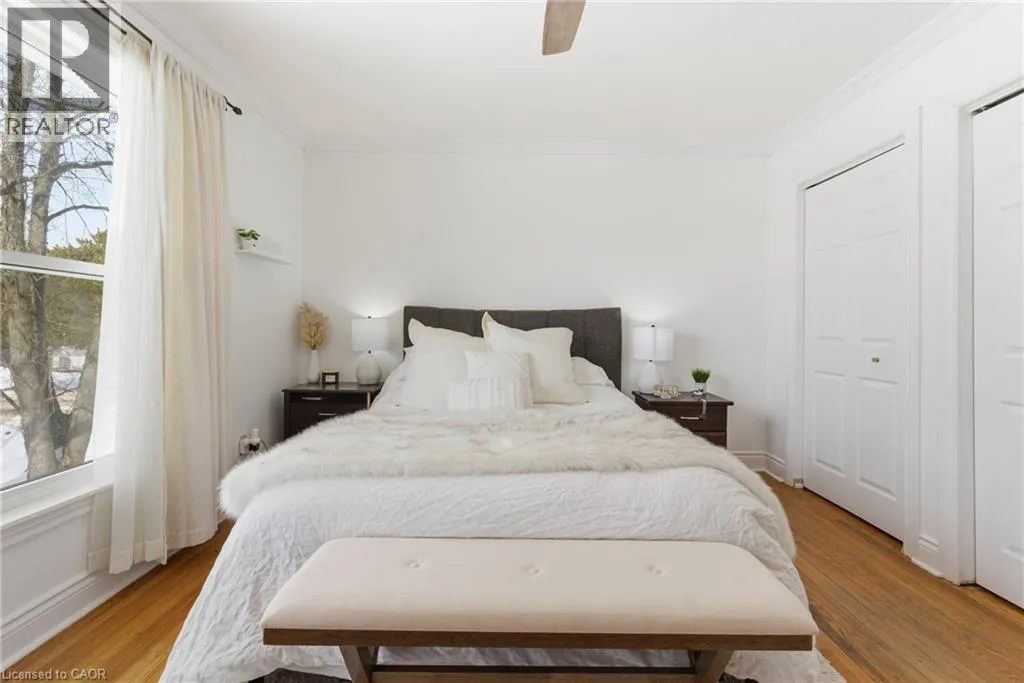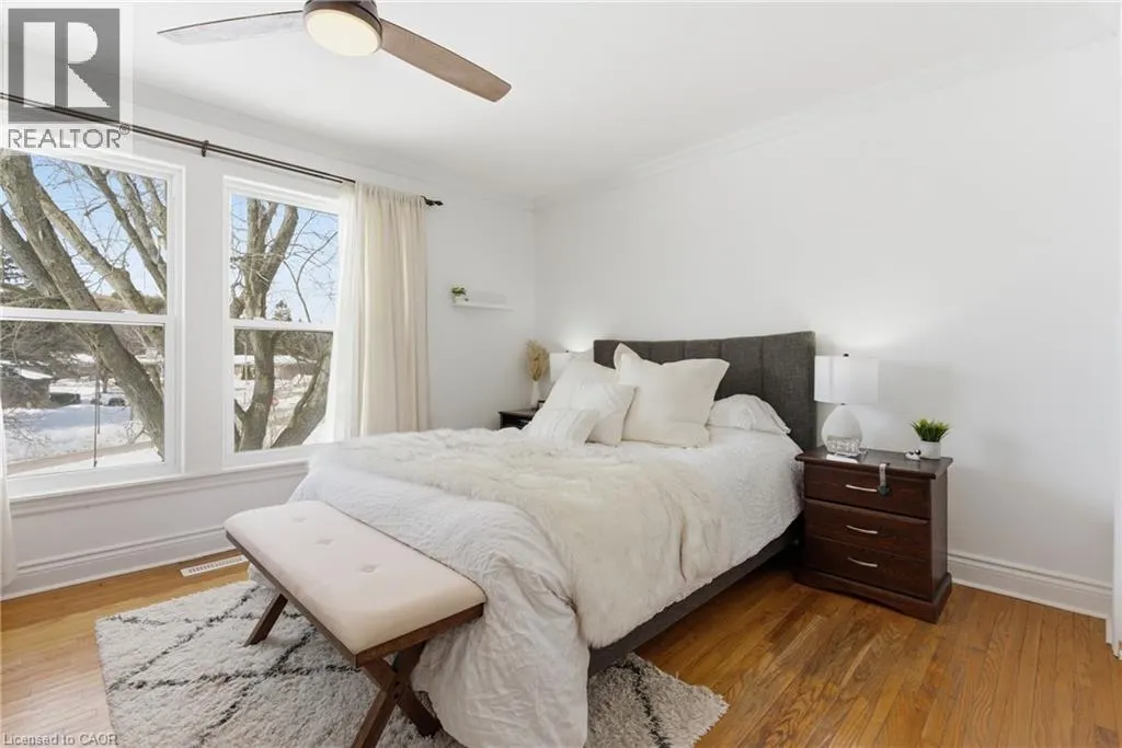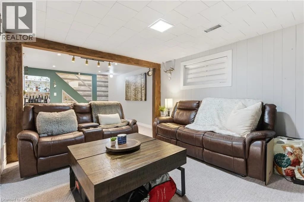 The perfect place to create lasting family memories. This spacious 4+1 bedroom, two-storey home sits on a large corner lot in the highly sought-after Lakeview neighbourhood, just a short stroll from Fairy Lake, local schools, parks, and scenic walking trails. The property offers fantastic curb appeal with a large front lawn, mature trees, and beautifully maintained gardens. A welcoming front porch provides the perfect place to relax while watching the kids play, while the extended driveway offers parking for up to six vehicles. Inside, the main floor is warm and inviting. A bright family room featuring a large bay window flows into the renovated eat-in kitchen, thoughtfully designed with soft-close cabinetry, quartz countertops, black stainless steel appliances, and built-in wall cabinetry with pantry storage. An electric fireplace adds a cozy touch and creates the perfect setting for everyday living and family dinners. The main floor also includes a powder room, convenient garage access, and a walkout to the fully fenced backyard. The backyard is designed for entertaining and relaxation, complete with an above-ground pool, pool cabana, sauna, and a stamped concrete patio that creates your own private outdoor retreat. Upstairs, you will find four spacious bedrooms, including a bright primary bedroom with large windows and double closets. A four-piece bathroom with double sinks makes busy mornings easier for the whole family. A convenient laundry chute connects directly to the basement laundry area for added functionality. The fully finished basement adds even more living space with a fifth bedroom featuring large barn doors, along with a recreation room complete with a dry bar, perfect for movie nights, games, or hosting guests. Located just a short drive from Highway 401, this home offers an ideal balance of peaceful neighbourhood living and easy commuting. (id:27476)