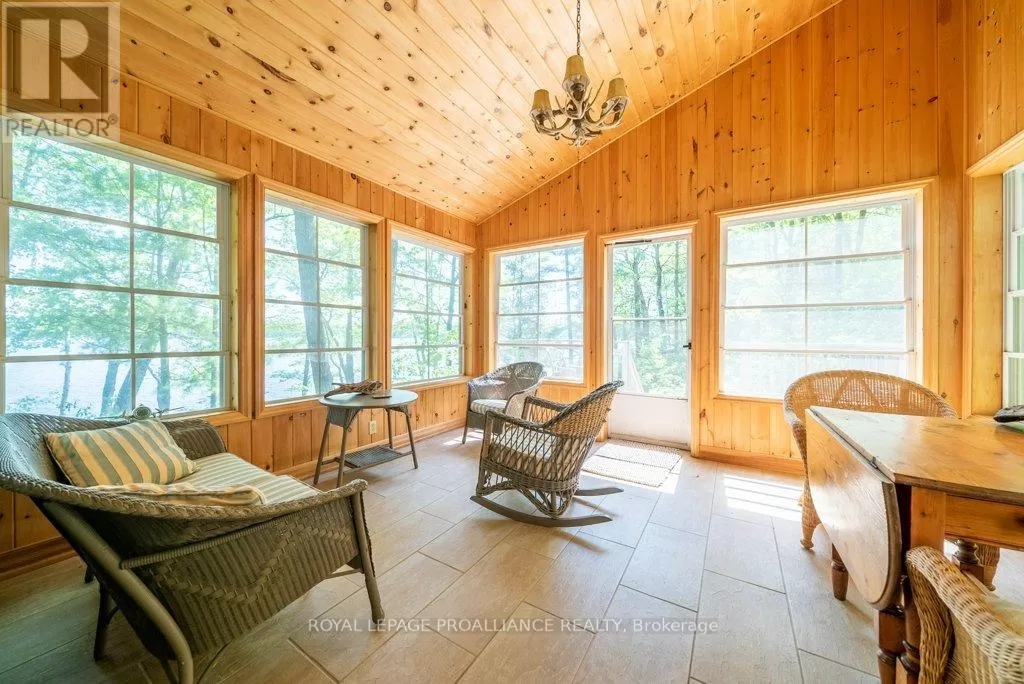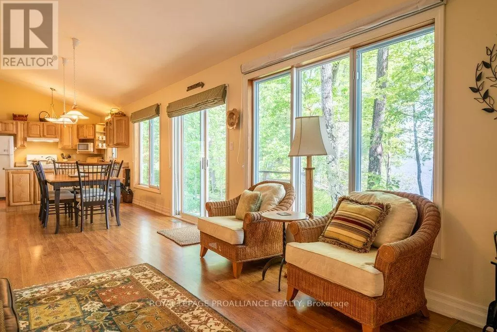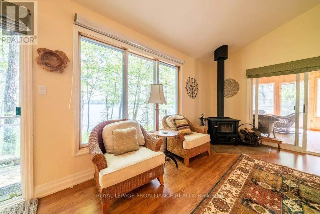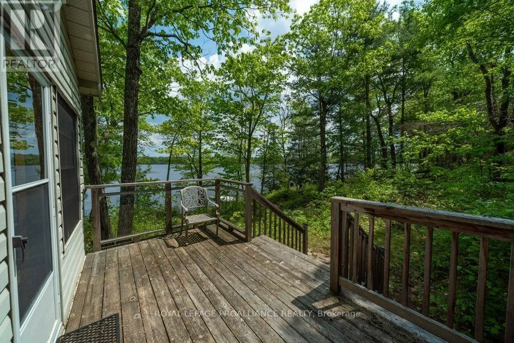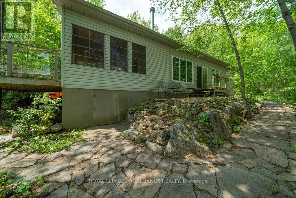 Cross Streets: Hughes Landing Rd & Skootamatta Lake Rd. ** Directions: Hughes Landing Rd. Experience Tranquility and Adventure on Skootamatta Lake! Wake up to breathtaking sunrises at this private, year-round retreat nestled on the pristine shores of Skootamatta Lake a sought-after destination in Ontario's Land O' Lakes region. This thoughtfully built bungalow offers peace of mind and modern comfort with a newly installed solar power system, allowing you to enjoy a worry-free, off-grid lifestyle without sacrificing convenience. The homes open-concept layout is ideal for entertaining, complete with a cozy woodstove at its heart. Gather with friends and family in the spacious living area or unwind in the tranquil sunroom with your favourite book, surrounded by nature. Set on a beautifully forested lot with 210 feet of crystal-clear shoreline, the waterfront offers excellent swimming and fishing right off your private dock. Whether you're paddling through hidden bays, exploring quiet inlets and islands, or showing off your waterskiing skills, Skootamatta Lake is large enough (over 12 km long and 1,150 hectares in area) to satisfy every water lovers dream. This turn-key property has been designed for low maintenance and comes fully furnished including a pontoon boat, ready for immediate enjoyment. Whether you're looking for a peaceful escape or an active lakefront lifestyle, this four-season home offers the best of both worlds .Come explore the Land O' Lakes and make your lakeside dreams a reality on Skootamatta Lake. (id:27476)