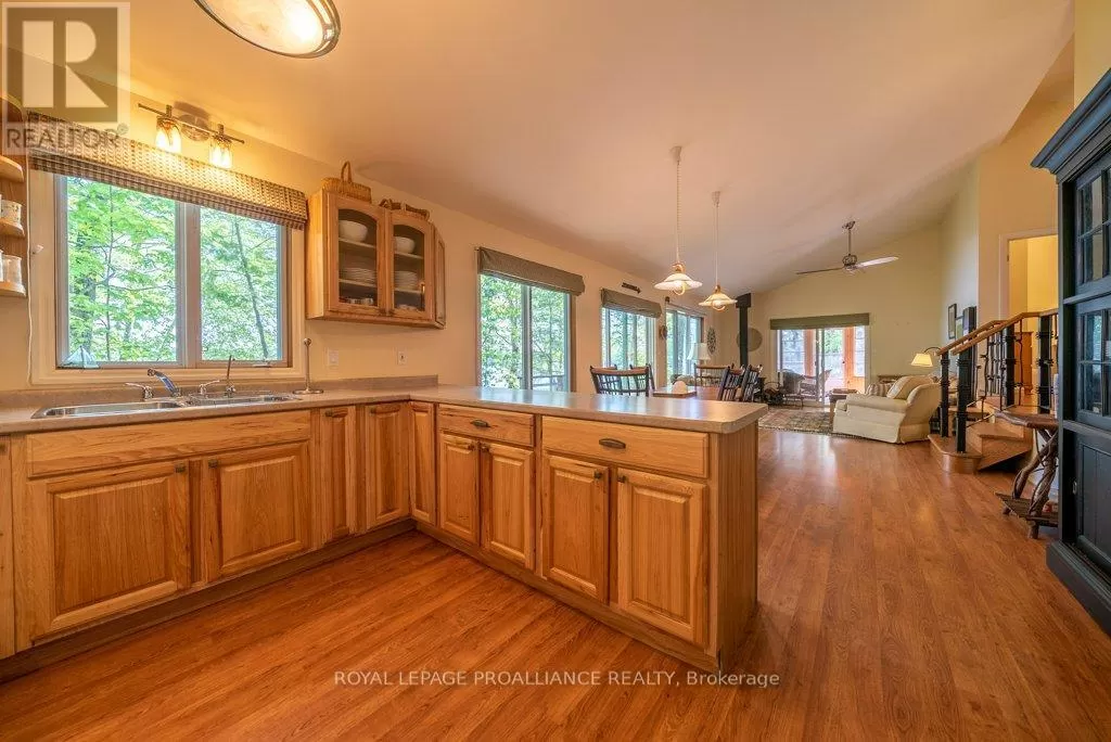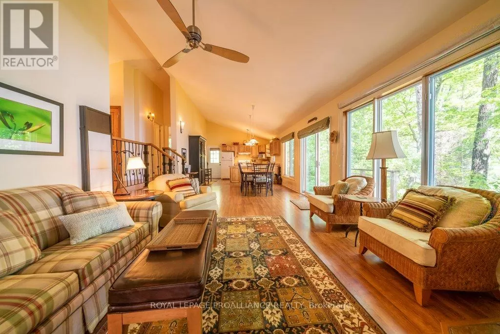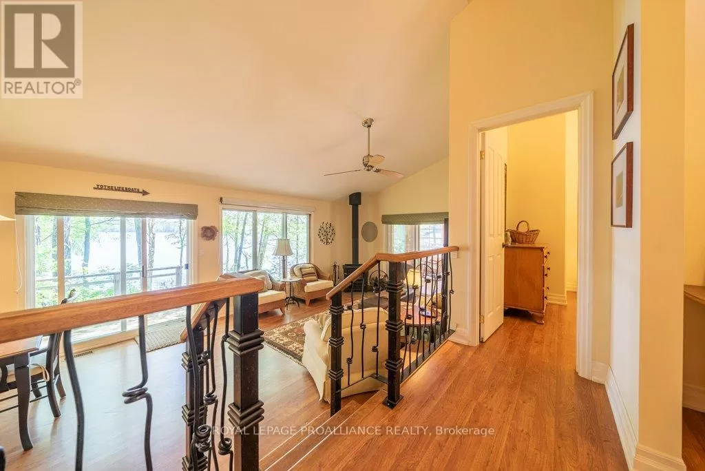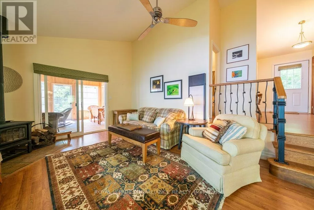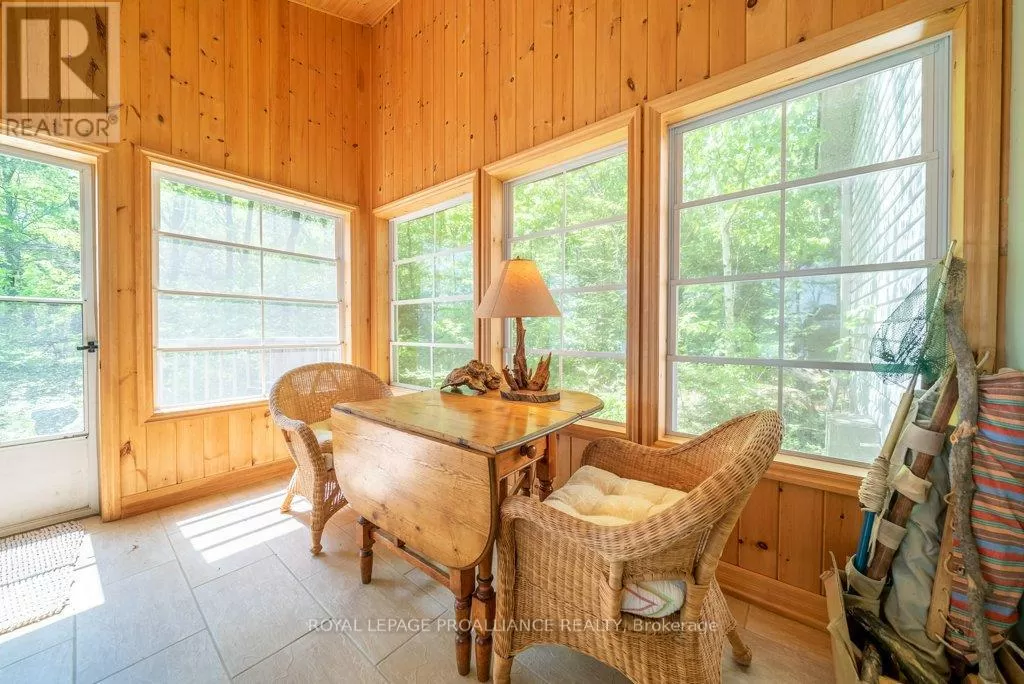 Cross Streets: Hughes Landing Rd & Skootamatta Lake Rd. ** Directions: Hughes Landing Rd. Experience Tranquility and Adventure on Skootamatta Lake! Wake up to breathtaking sunrises at this private, year-round retreat nestled on the pristine shores of Skootamatta Lake a sought-after destination in Ontario's Land O' Lakes region. This thoughtfully built bungalow offers peace of mind and modern comfort with a newly installed solar power system, allowing you to enjoy a worry-free, off-grid lifestyle without sacrificing convenience. The homes open-concept layout is ideal for entertaining, complete with a cozy woodstove at its heart. Gather with friends and family in the spacious living area or unwind in the tranquil sunroom with your favourite book, surrounded by nature. Set on a beautifully forested lot with 210 feet of crystal-clear shoreline, the waterfront offers excellent swimming and fishing right off your private dock. Whether you're paddling through hidden bays, exploring quiet inlets and islands, or showing off your waterskiing skills, Skootamatta Lake is large enough (over 12 km long and 1,150 hectares in area) to satisfy every water lovers dream. This turn-key property has been designed for low maintenance and comes fully furnished including a pontoon boat, ready for immediate enjoyment. Whether you're looking for a peaceful escape or an active lakefront lifestyle, this four-season home offers the best of both worlds .Come explore the Land O' Lakes and make your lakeside dreams a reality on Skootamatta Lake. (id:27476)