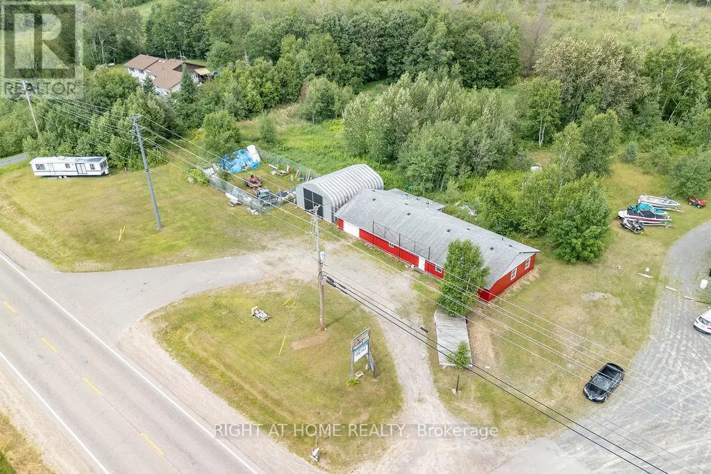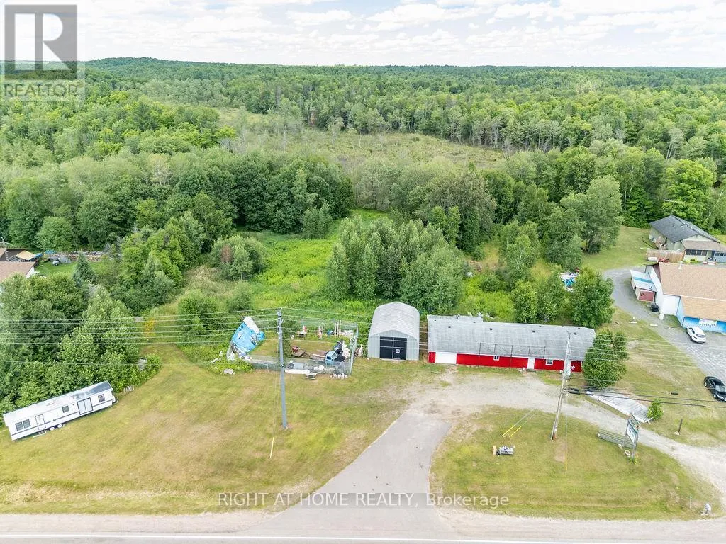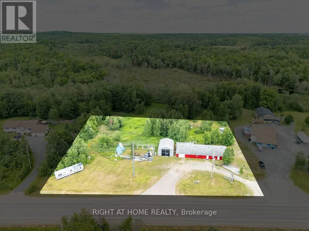 Cross Streets: HWY 41 AND HIGHWAY 7. ** Directions: GO NORTH ON HWY 41 FROM HIGHWAY 7 AT KALADAR. This is an incredible opportunity in Northbrook for the discerning business person . This well known property, located just on the outskirts of Northbrook, is available for sale. Situated on 2.05 acres with 300 FT frontage on Hwy 41, it is a gateway to cottage country and many trailer parks. Formerly a dry marina, this property has been home to a very successful trailer sales and repair business for many years. There is an incredible amount of storage for cars, boats and/or trailers either outside in the fenced compound or inside the Quonset hut.(16 foot ceilings and steel shelving) The main building has new aluminum siding all around, and offers a drive-thru garage on one end, a large work or storage area, a 2 piece bath, new oil furnace, newer duct work and drip pan. From here, enter the retail section with a private office, a service desk, peg board on the wall s for display and some shelving with peg board. Adjacent to this area is a newer section with 3 private offices and a 2 piece bath. The offices are heated by baseboards and are on separate meters. There is a separate entry from outside to this area so tenants could come and go as they please. Or, use the space for your own business. All you need is your own imagination to turn this property into a business of your own .More photos to come! (id:27476)