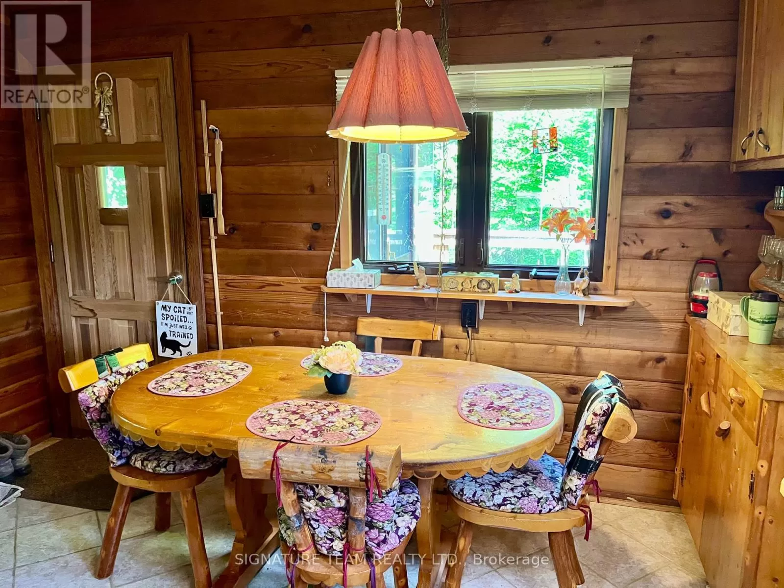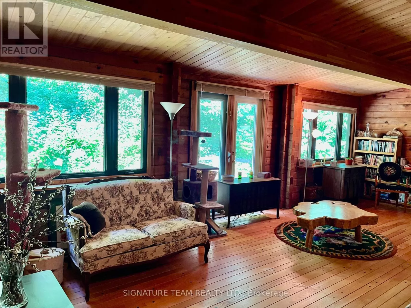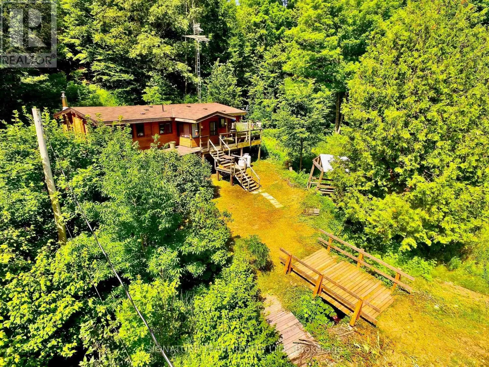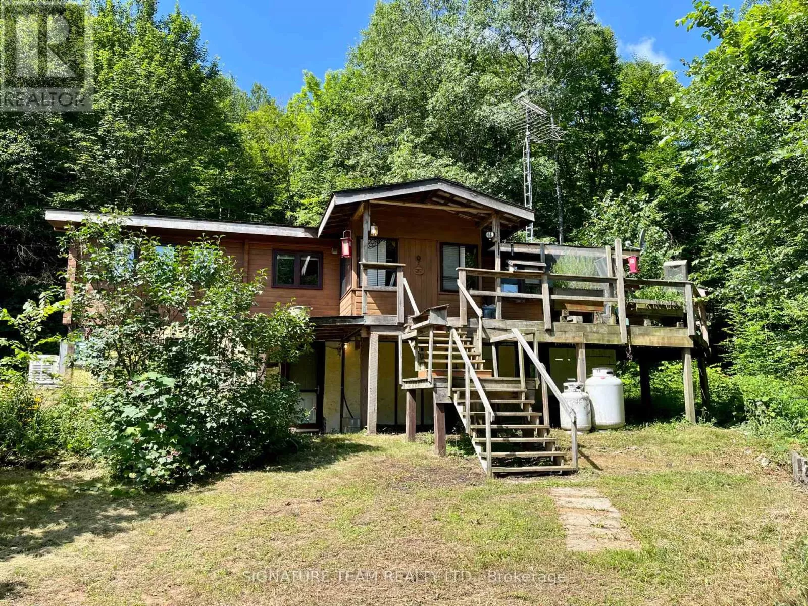 Cross Streets: Highway 41. ** Directions: Located between Cloyne and Denbigh on Highway 41. Escape to Nature Charming Square Log Home on 112 Private Acres. Discover your own private oasis with this beautiful square log home nestled on a serene 112-acre property surrounded by mature forest. Peace, privacy, and nature await in this truly unique retreat. This cozy 2-bedroom, 1-bathroom home features a spacious eat-in kitchen with direct access to a bright enclosed porch and deck, perfect for morning coffee or evening relaxation. The generous living room offers a warm, welcoming space to unwind, while the full walkout basement provides excellent potential for further development. Enjoy the tranquility of a park-like setting with a creek running right by your home. Step outside and explore the natural beauty of your surroundings, with direct access to hundreds of acres of crown land for hiking, hunting, or simply enjoying the great outdoors. For added peace of mind, the property includes a standby Generac generator keeping you comfortable and secure in all seasons. Whether you are looking for a year-round residence, a peaceful getaway, or a place to build your dream homestead, this one-of-a-kind property offers the perfect blend of rustic charm and modern convenience. (id:27476)