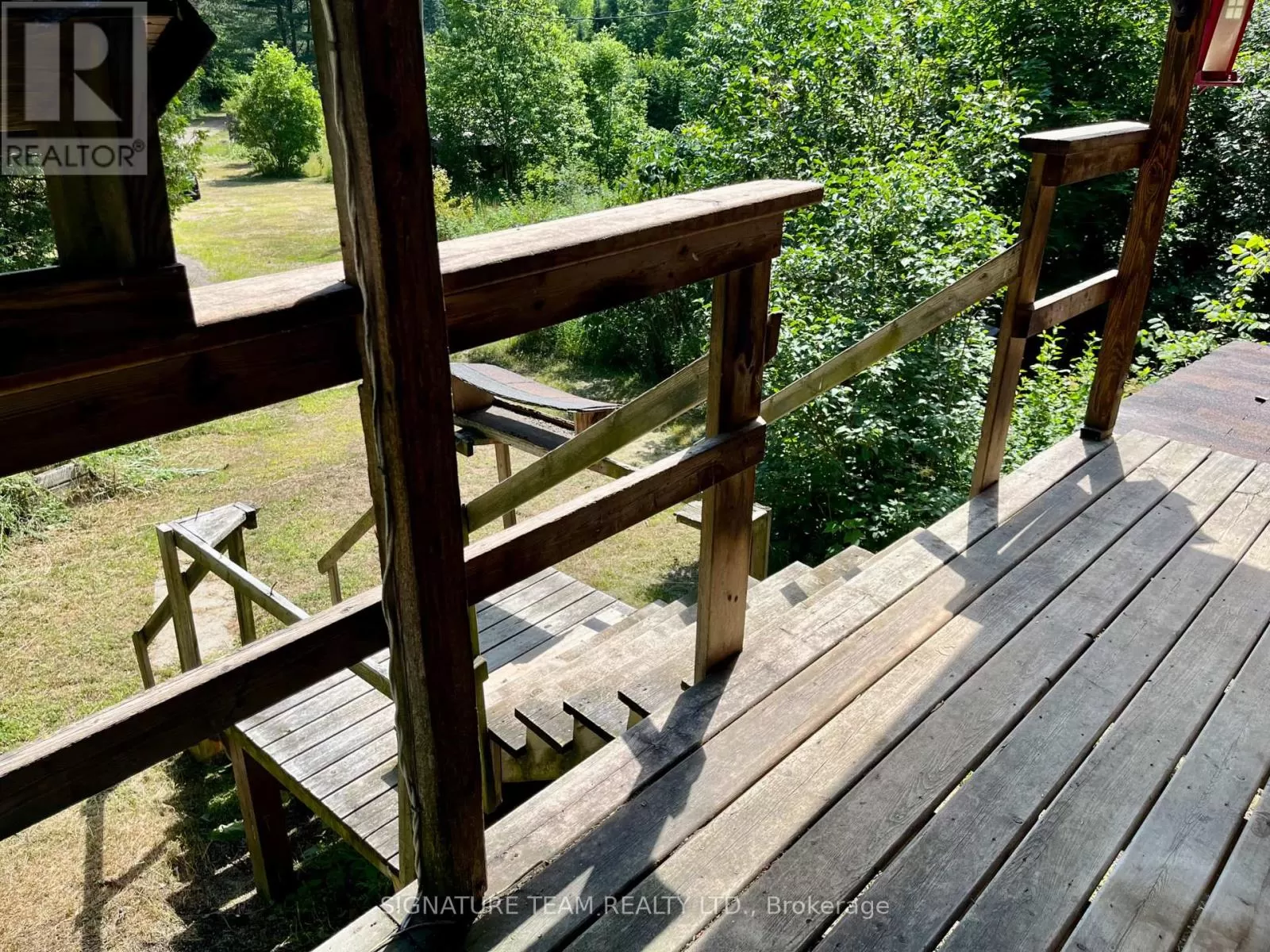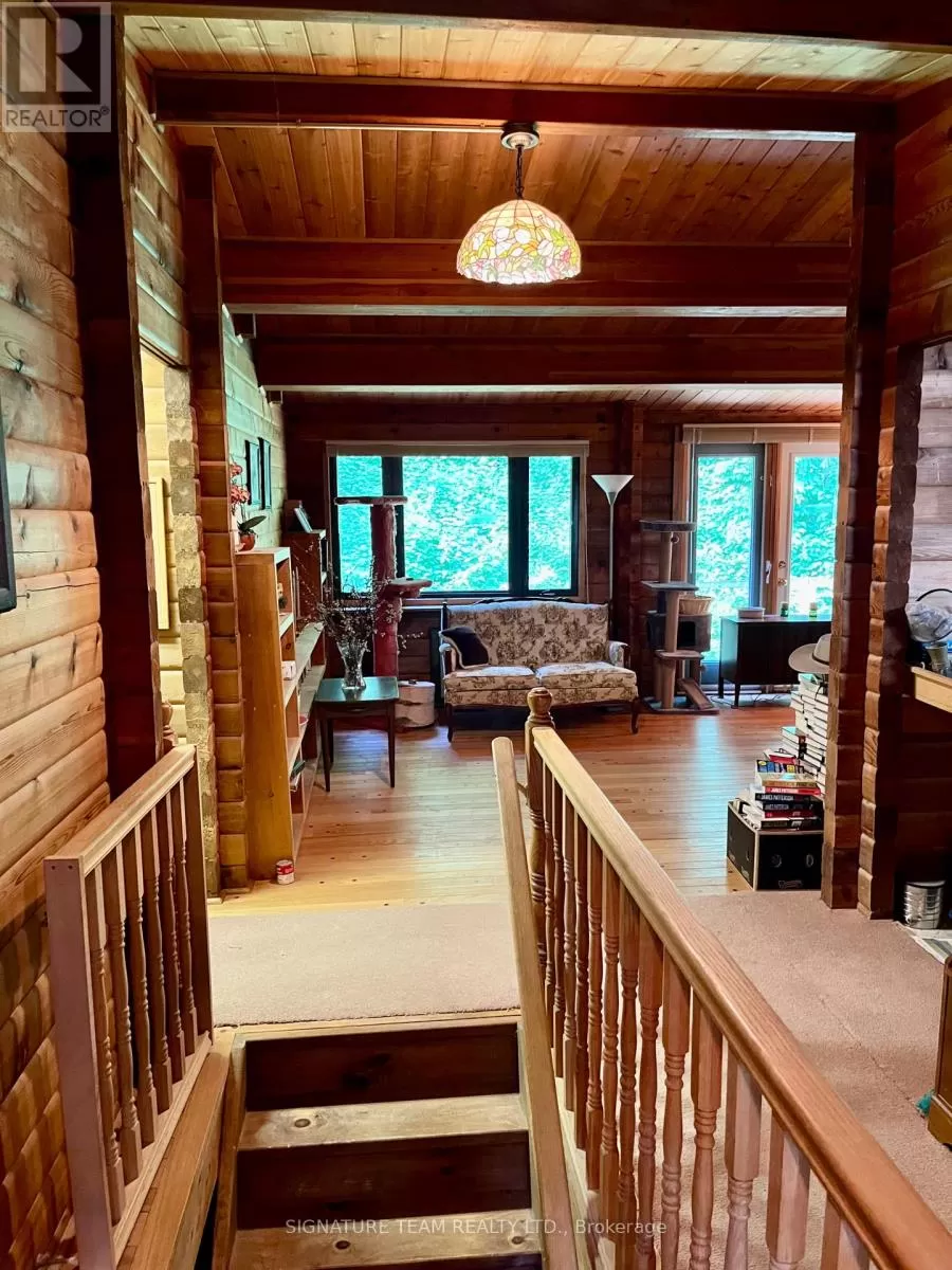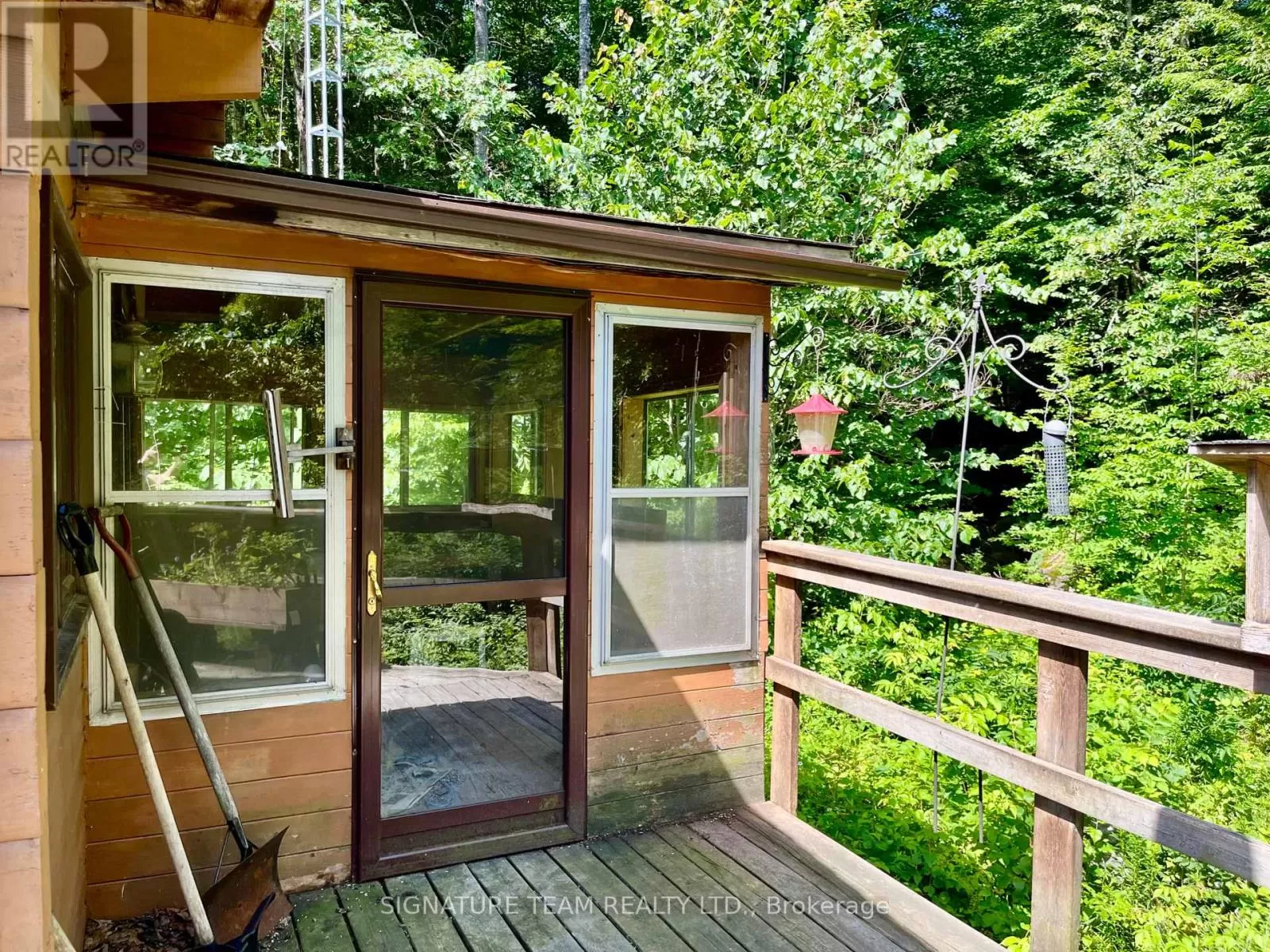 Cross Streets: Highway 41. ** Directions: Located between Cloyne and Denbigh on Highway 41. Escape to Nature Charming Square Log Home on 112 Private Acres. Discover your own private oasis with this beautiful square log home nestled on a serene 112-acre property surrounded by mature forest. Peace, privacy, and nature await in this truly unique retreat. This cozy 2-bedroom, 1-bathroom home features a spacious eat-in kitchen with direct access to a bright enclosed porch and deck, perfect for morning coffee or evening relaxation. The generous living room offers a warm, welcoming space to unwind, while the full walkout basement provides excellent potential for further development. Enjoy the tranquility of a park-like setting with a creek running right by your home. Step outside and explore the natural beauty of your surroundings, with direct access to hundreds of acres of crown land for hiking, hunting, or simply enjoying the great outdoors. For added peace of mind, the property includes a standby Generac generator keeping you comfortable and secure in all seasons. Whether you are looking for a year-round residence, a peaceful getaway, or a place to build your dream homestead, this one-of-a-kind property offers the perfect blend of rustic charm and modern convenience. (id:27476)