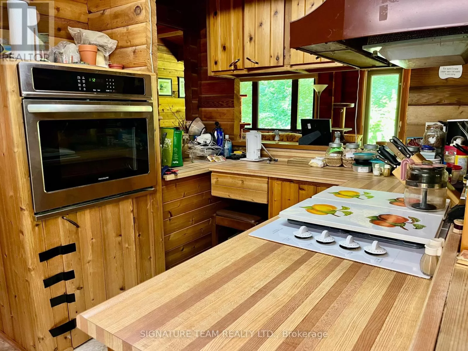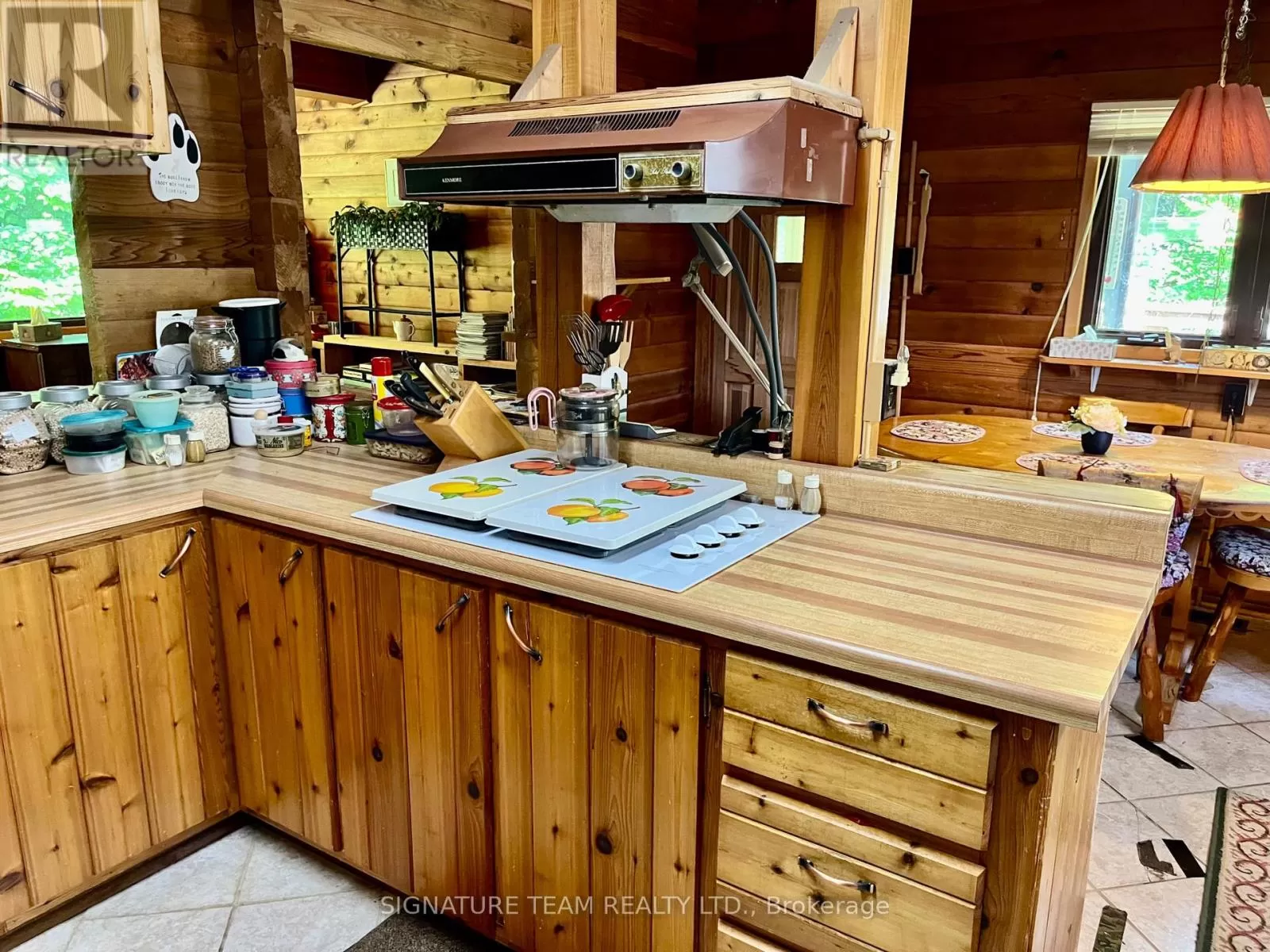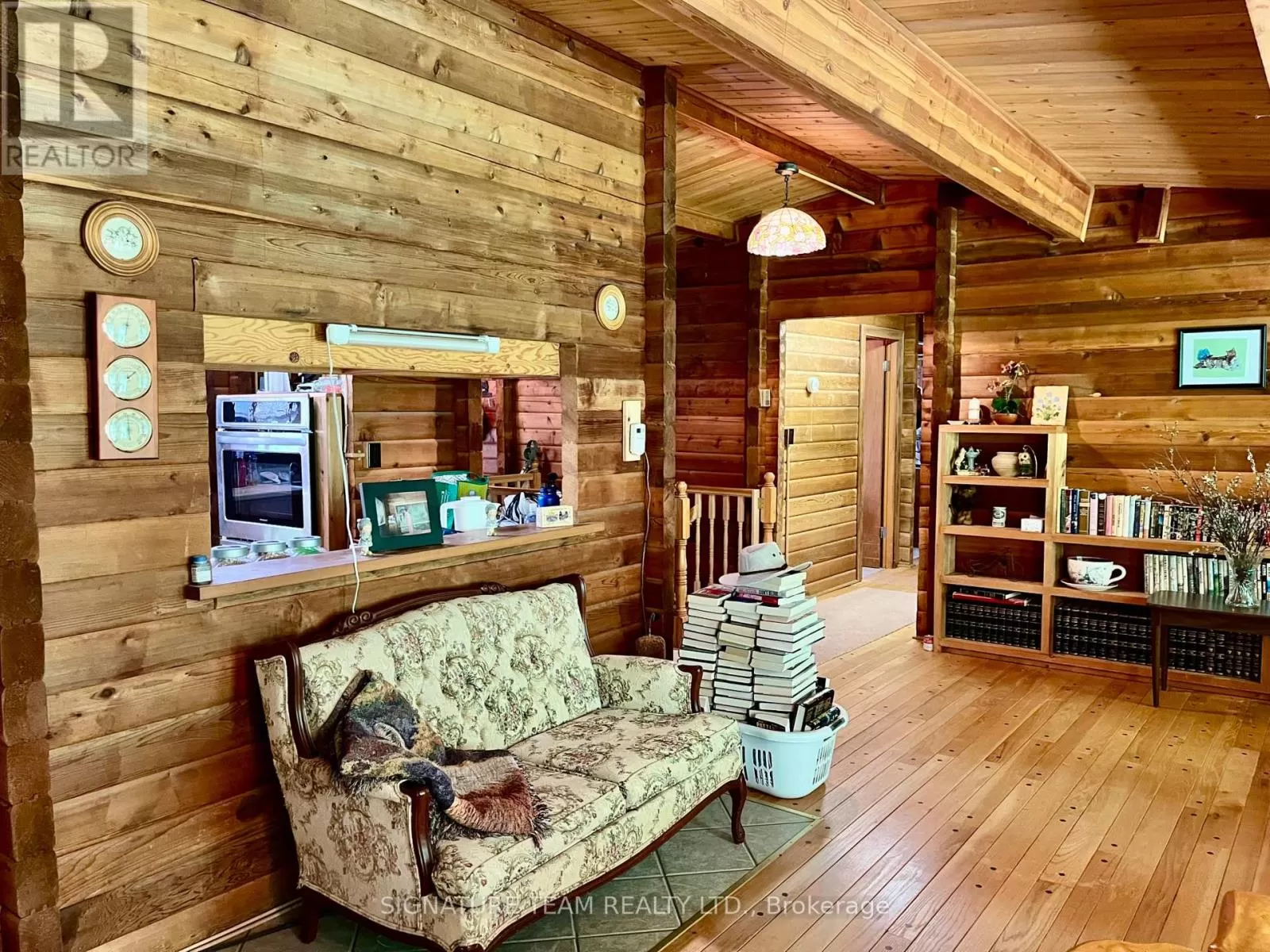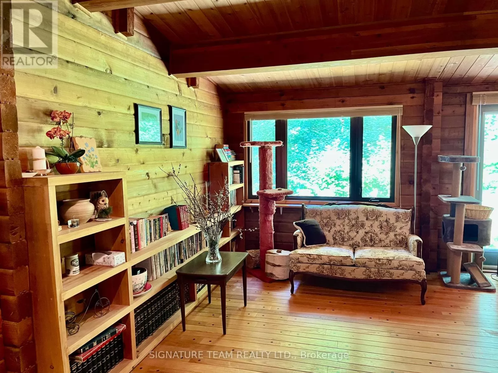 Cross Streets: Highway 41. ** Directions: Located between Cloyne and Denbigh on Highway 41. Escape to Nature Charming Square Log Home on 112 Private Acres. Discover your own private oasis with this beautiful square log home nestled on a serene 112-acre property surrounded by mature forest. Peace, privacy, and nature await in this truly unique retreat. This cozy 2-bedroom, 1-bathroom home features a spacious eat-in kitchen with direct access to a bright enclosed porch and deck, perfect for morning coffee or evening relaxation. The generous living room offers a warm, welcoming space to unwind, while the full walkout basement provides excellent potential for further development. Enjoy the tranquility of a park-like setting with a creek running right by your home. Step outside and explore the natural beauty of your surroundings, with direct access to hundreds of acres of crown land for hiking, hunting, or simply enjoying the great outdoors. For added peace of mind, the property includes a standby Generac generator keeping you comfortable and secure in all seasons. Whether you are looking for a year-round residence, a peaceful getaway, or a place to build your dream homestead, this one-of-a-kind property offers the perfect blend of rustic charm and modern convenience. (id:27476)