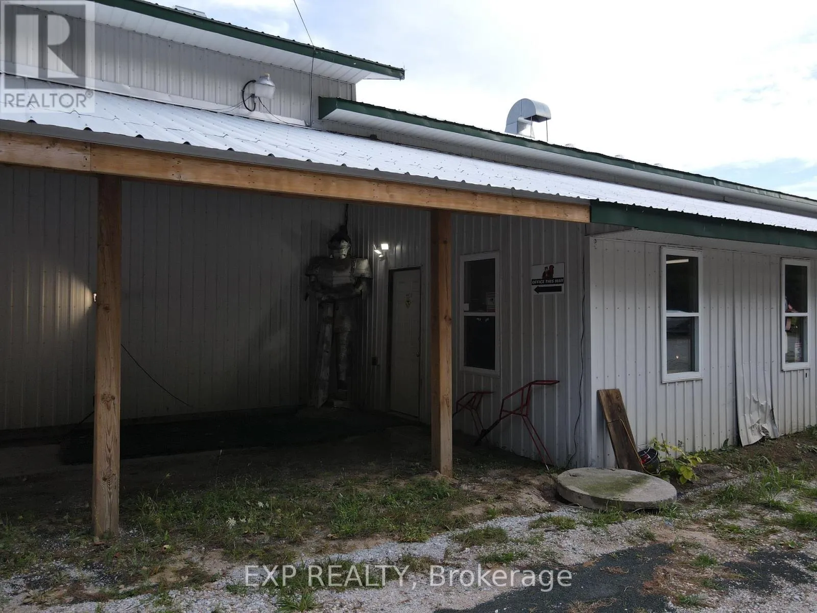 Cross Streets: hwy 41 and Addington Rd 2. ** Directions: Take Hwy41 north to Hwy 7. Continue on Hwy 41 just north of NorthBrook. A rare chance to secure a 4,000 sq. ft. heated commercial / light-industrial building with prime Highway 41 exposure in Addington Highlands. Purpose-built for serious operators, this high-capacity facility delivers five oversized drive-in bay doors, 16- and 18-foot ceiling heights, and 400-amp, 3-phase power-a combination that's increasingly hard to find in today's market and ideal for trades, contractors, fabrication, fleet operations, warehousing, or high-output shop use.The building is laid out for efficiency with a dedicated office area, staff/workspace, and washroom, allowing businesses to move in and operate without delay. The site is fully fenced and equipped with security cameras, alarm systems, and monitored security features, providing strong protection for equipment and inventory. The lease applies exclusively to the main 4,000 sq. ft. heated building; no yard space or additional structures are included unless separately negotiated. The Property is offered for lease on a triple-net (NNN) basis. In addition to base rent and HST, the Tenant shall be responsible for all operating costs (TMI), including property taxes, building insurance, maintenance, repairs, snow removal, landscaping, utilities, garbage disposal (E360), alarm/monitoring system (A.P.I.), internet, and telephone services. The Property is a freestanding, single-tenant industrial building zoned M2. All lease terms are subject to negotiation and a formal Agreement to Lease. (id:27476)