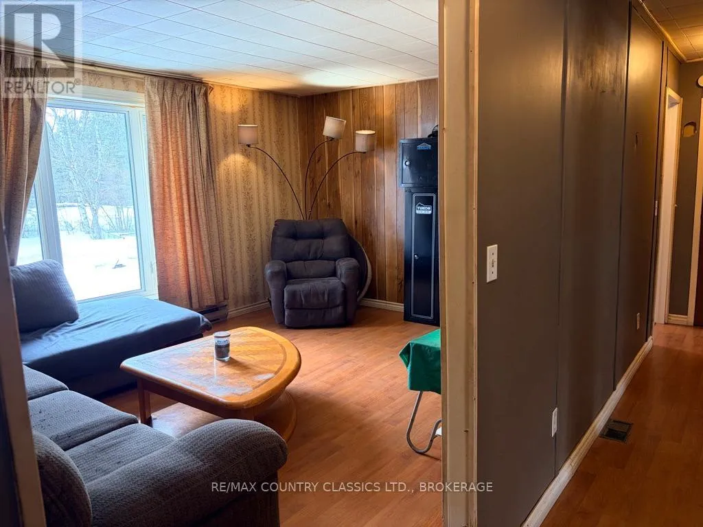 Cross Streets: Addington Road 2. ** Directions: From Highway 7, turn north onto Highway 41 and go to Northbrook. Continue into the village, then turn left onto Addington Road 2. Follow Addington Road 2 and take your next left onto Denison Drive, and your destination will be on your left. Welcome to 4 Denison Drive, a charming bungalow nestled just steps from the heart of Northbrook. Set on a spacious 0.58-acre corner lot, this property offers the perfect blend of comfort, convenience, and opportunity. This inviting home features 2 bedrooms, 1 bathroom, a bright living room, dining area, and a functional kitchen-ideal for everyday living. A generous entertainment room provides added versatility and could easily be converted into a third bedroom to suit your needs. Outside, you'll love the large yard-perfect for kids, pets, and outdoor gatherings. The property also includes a fantastic garage, offering plenty of space to store your vehicles, tools, or recreational toys. Downstairs, the unfinished lower level with high ceilings presents a blank canvas, ready for your creative vision-whether you dream of a workshop, family room, or additional living space. Located within walking distance to Northbrook, you'll enjoy easy access to all essential amenities, including a medical centre, pharmacy, grocery store, bank ATM, chiropractor, fitness centre, restaurants, and LCBO. Whether you're looking for a peaceful retreat or a fresh start in a welcoming community, this property is full of potential and ready to welcome you home. (id:27476)