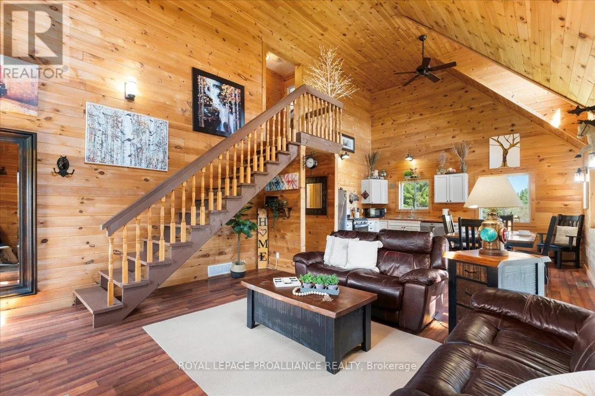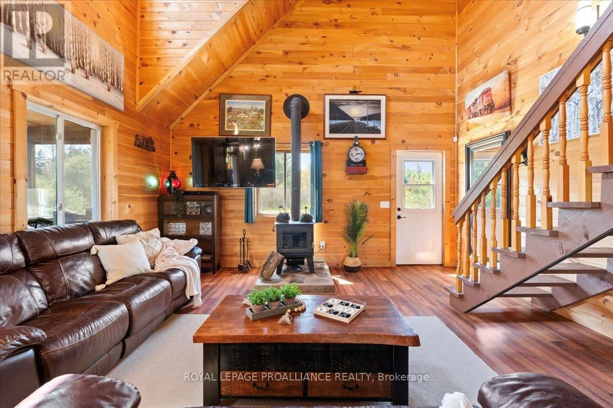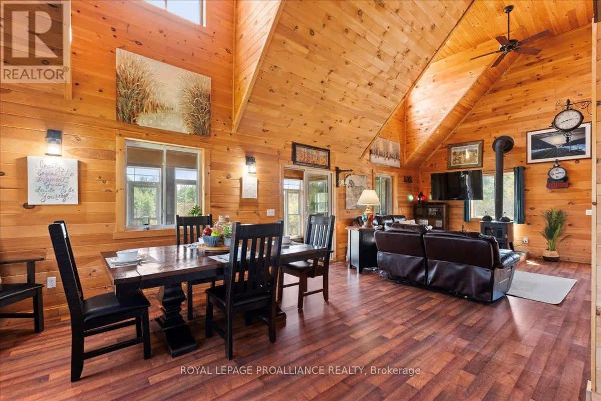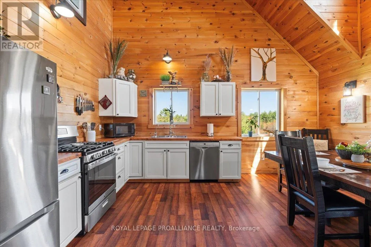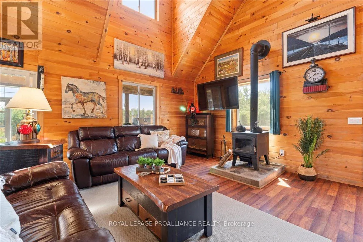 Cross Streets: Flinton Road and Deer Rock Lake Road. ** Directions: Take Hwy 7 to Flinton Rd. to Deer Rock Lake Road. Set on over 51 acres of private, forested land, and constructed in 2015, this home features forced air propane heating, central air conditioning, a drilled well, septic system, and owned water heater with water treatment already in place, providing comfort and reliability for year-round living. Inside, the open-concept layout is enhanced by soaring cathedral ceilings and a wood stove in the living room, offering both warmth and an inviting atmosphere. The kitchen flows seamlessly into the main living space, ideal for everyday living and entertaining. A bright sunroom with wraparound windows adds additional living space and captures the surrounding landscape in every season. The home offers 3 bedrooms and 2 bathrooms, with a functional layout suited for families, guests, or work-from-home flexibility. A crawl space basement with separate entrance provides added storage potential. Outdoors, the property truly shines with well-maintained trails winding throughout the woodland, perfect for hiking, exploring, peaceful walks, ATVing, and snowmobiling. There is even the opportunity to tap your own trees and enjoy maple syrup season right at home. Gather around the campfire and take in the sights and sounds of nature, with frequent wildlife sightings including deer, moose, and the occasional bear. A natural creek and waterfall feature adds to the setting, while ample parking provides space for vehicles and recreational equipment. Located on a quiet, municipally maintained dead-end road, this property offers privacy without sacrificing access, just minutes to the Deer Rock Lake boat launch. (id:27476)