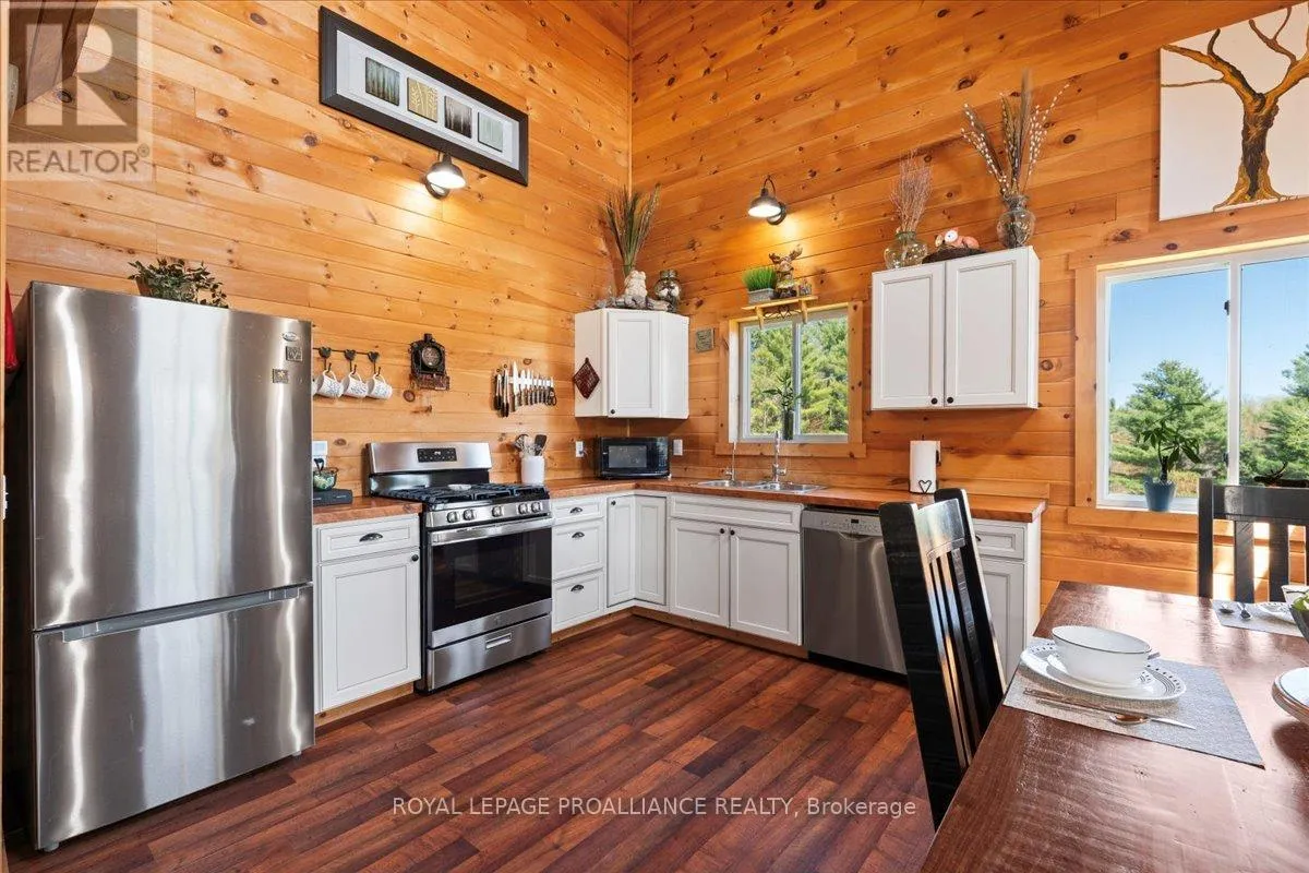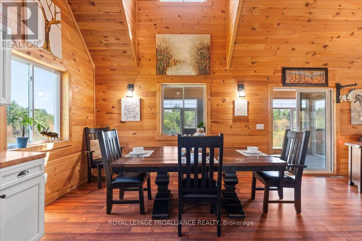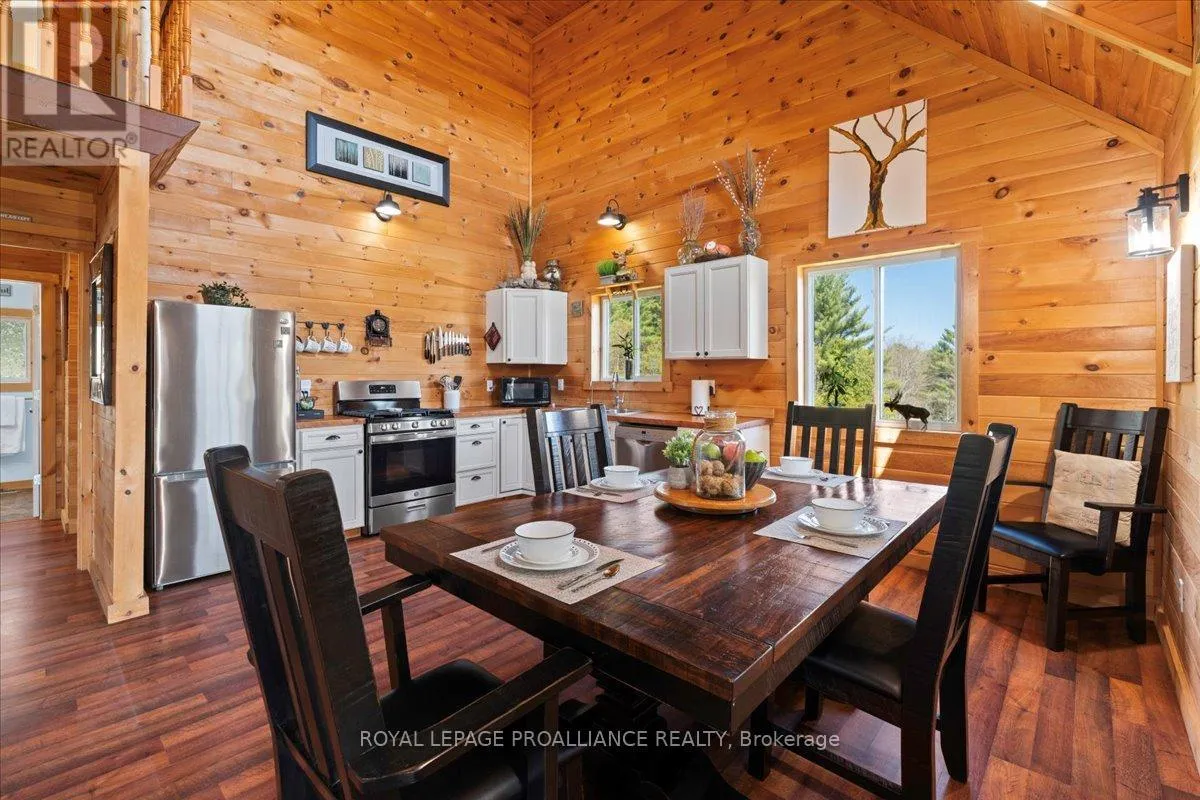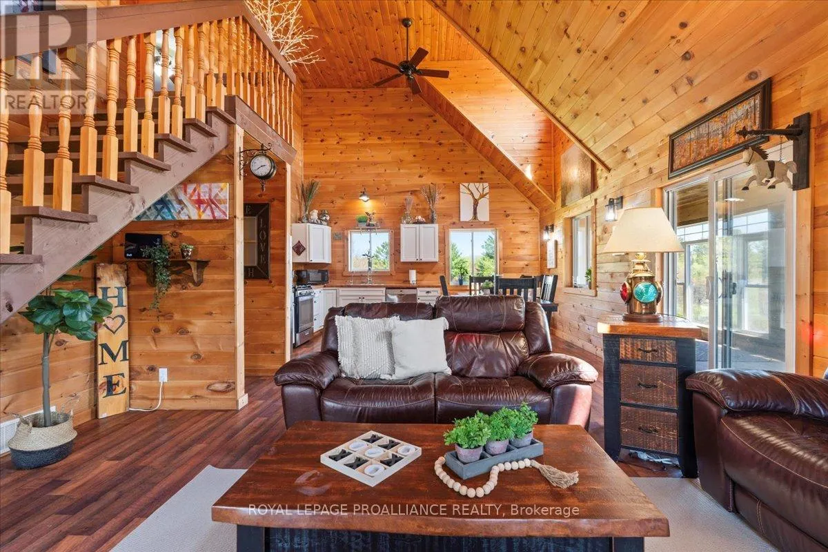 Cross Streets: Flinton Road and Deer Rock Lake Road. ** Directions: Take Hwy 7 to Flinton Rd. to Deer Rock Lake Road. Set on over 51 acres of private, forested land, and constructed in 2015, this home features forced air propane heating, central air conditioning, a drilled well, septic system, and owned water heater with water treatment already in place, providing comfort and reliability for year-round living. Inside, the open-concept layout is enhanced by soaring cathedral ceilings and a wood stove in the living room, offering both warmth and an inviting atmosphere. The kitchen flows seamlessly into the main living space, ideal for everyday living and entertaining. A bright sunroom with wraparound windows adds additional living space and captures the surrounding landscape in every season. The home offers 3 bedrooms and 2 bathrooms, with a functional layout suited for families, guests, or work-from-home flexibility. A crawl space basement with separate entrance provides added storage potential. Outdoors, the property truly shines with well-maintained trails winding throughout the woodland, perfect for hiking, exploring, peaceful walks, ATVing, and snowmobiling. There is even the opportunity to tap your own trees and enjoy maple syrup season right at home. Gather around the campfire and take in the sights and sounds of nature, with frequent wildlife sightings including deer, moose, and the occasional bear. A natural creek and waterfall feature adds to the setting, while ample parking provides space for vehicles and recreational equipment. Located on a quiet, municipally maintained dead-end road, this property offers privacy without sacrificing access, just minutes to the Deer Rock Lake boat launch. (id:27476)