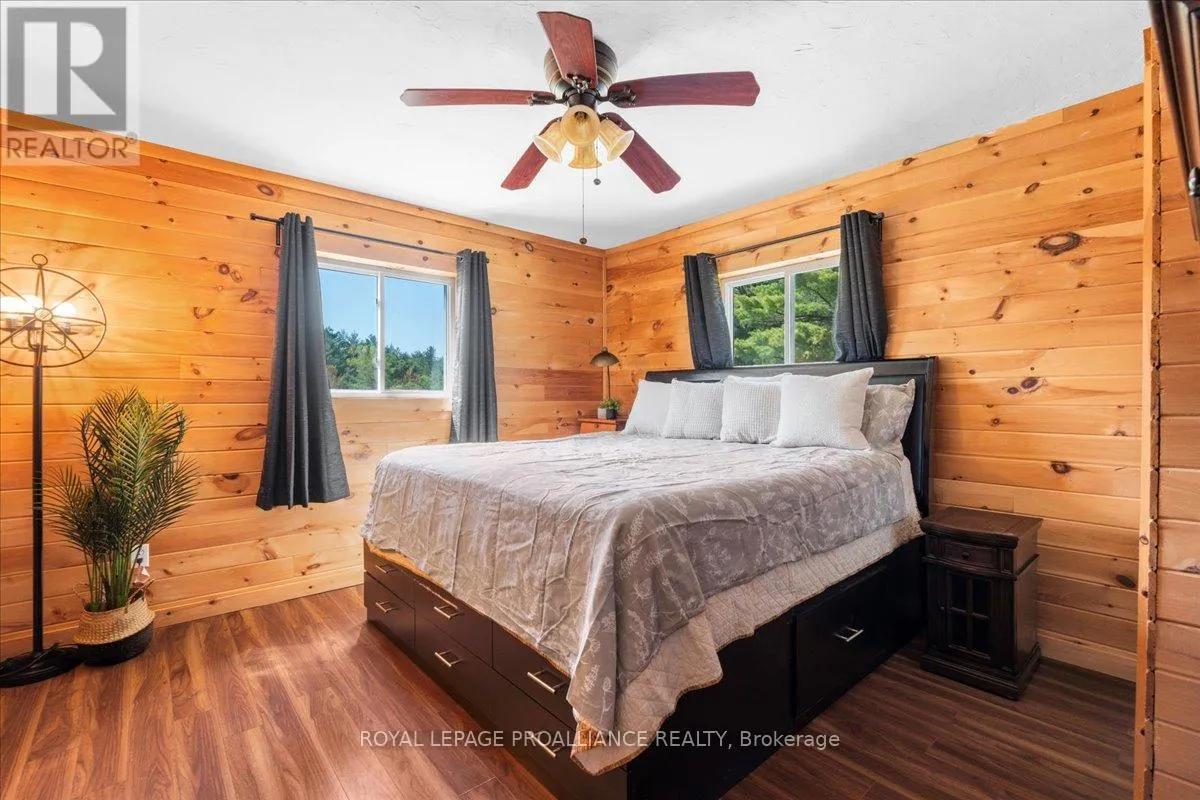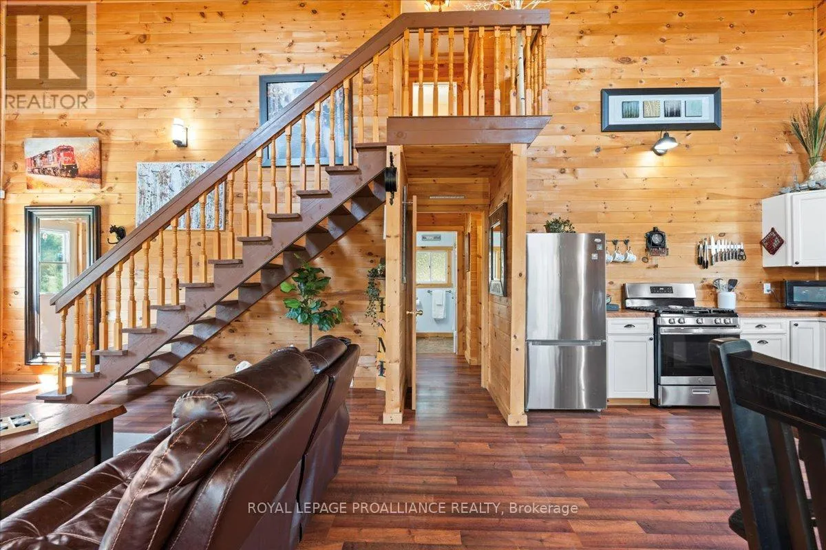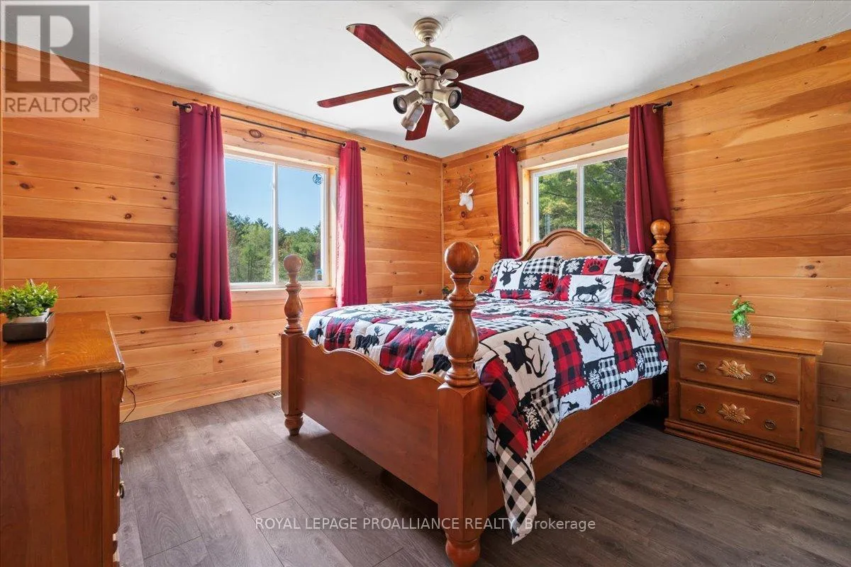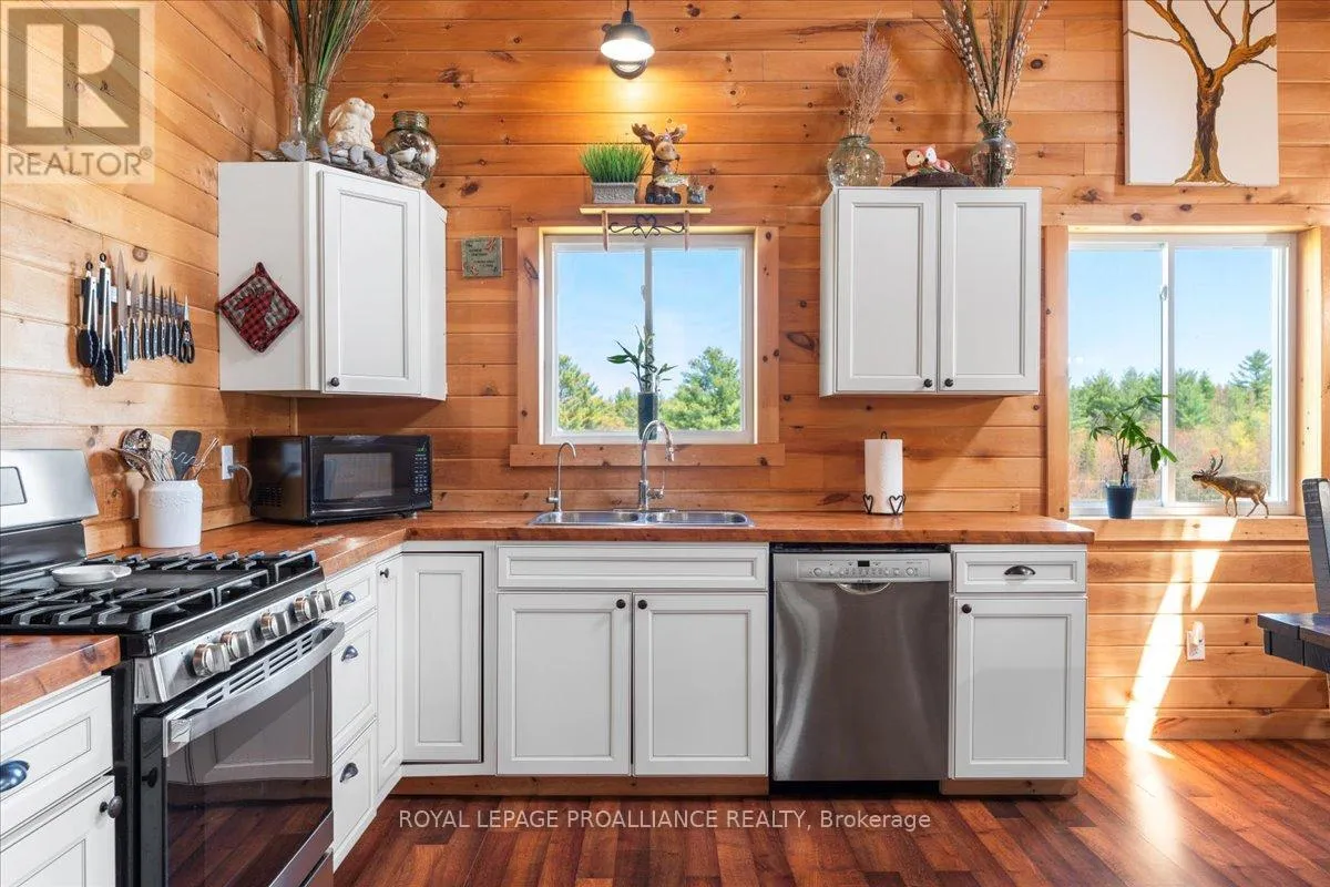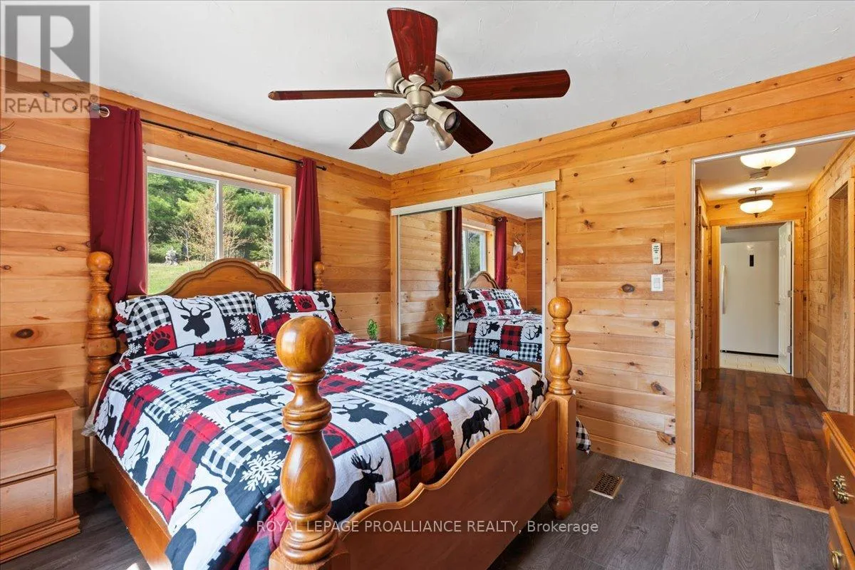 Cross Streets: Flinton Road and Deer Rock Lake Road. ** Directions: Take Hwy 7 to Flinton Rd. to Deer Rock Lake Road. Set on over 51 acres of private, forested land, and constructed in 2015, this home features forced air propane heating, central air conditioning, a drilled well, septic system, and owned water heater with water treatment already in place, providing comfort and reliability for year-round living. Inside, the open-concept layout is enhanced by soaring cathedral ceilings and a wood stove in the living room, offering both warmth and an inviting atmosphere. The kitchen flows seamlessly into the main living space, ideal for everyday living and entertaining. A bright sunroom with wraparound windows adds additional living space and captures the surrounding landscape in every season. The home offers 3 bedrooms and 2 bathrooms, with a functional layout suited for families, guests, or work-from-home flexibility. A crawl space basement with separate entrance provides added storage potential. Outdoors, the property truly shines with well-maintained trails winding throughout the woodland, perfect for hiking, exploring, peaceful walks, ATVing, and snowmobiling. There is even the opportunity to tap your own trees and enjoy maple syrup season right at home. Gather around the campfire and take in the sights and sounds of nature, with frequent wildlife sightings including deer, moose, and the occasional bear. A natural creek and waterfall feature adds to the setting, while ample parking provides space for vehicles and recreational equipment. Located on a quiet, municipally maintained dead-end road, this property offers privacy without sacrificing access, just minutes to the Deer Rock Lake boat launch. (id:27476)