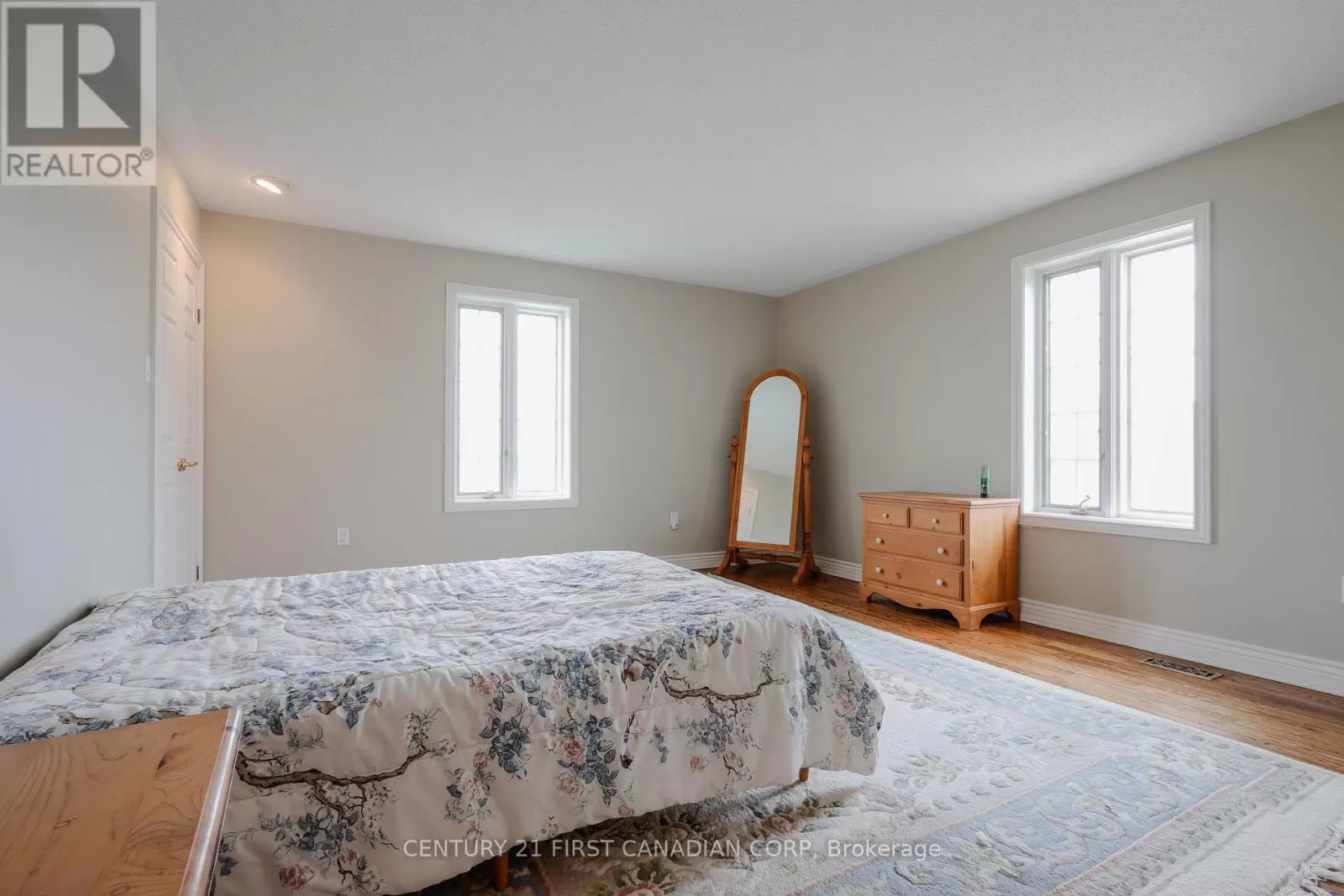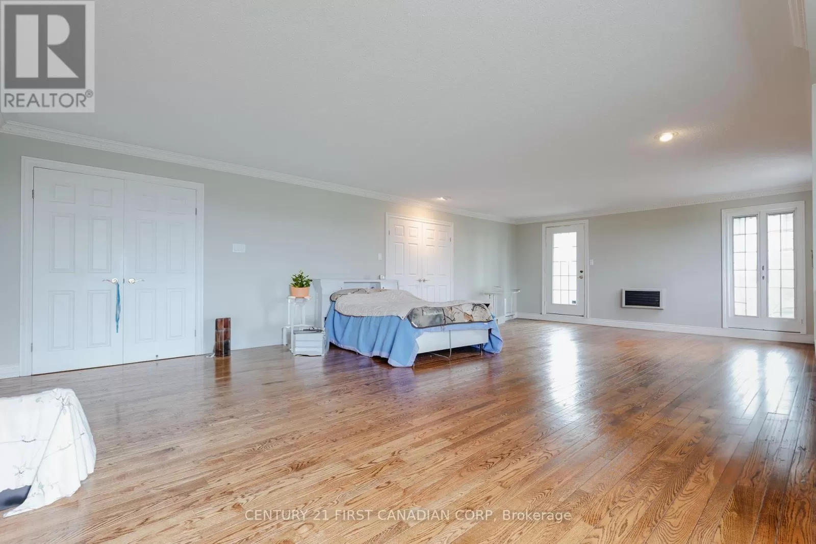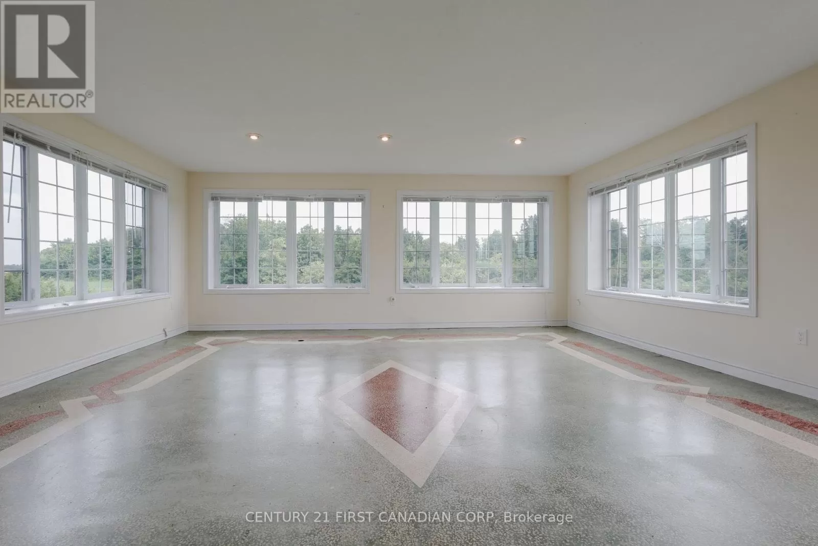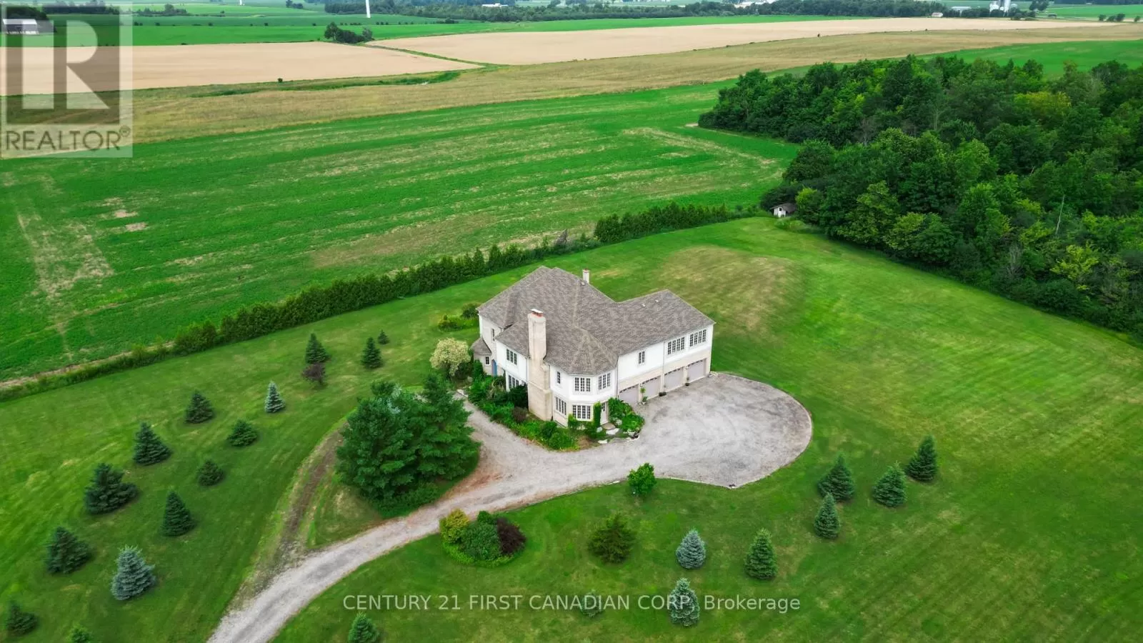 Centre Rd and Petty St A Rare find! 0nly 30 minutes from London! Approximately 10 Acres + beautiful solid custom built 5 bedroom, 6 bath home with 4 CAR garage, finished lower and 3rd floor loft all on paved country road with easy access to HWY 402 and all amenities in lovely town of Strathroy! Custom designed and built home by the current owner, this sprawling and light filled home boasts over 6000sf of finished living space & quality workmanship throughout. Ideal for large or growing family looking for room to roam in a beautiful & picturesque country setting! Features: tasteful neutral wall colours, gleaming oak floors, custom dentil crown moulding, quality Pella windows throughout with amazing views from all angles of the home, formal living and dining rooms, main floor office with custom oak built-ins, main floor family room, large eat-in kitchen, main floor sunroom, main floor laundry & 2 main floor baths; amazing 2nd floor layout with 5 bedrooms (one features adjoining bonus room with 3 walls of windows) & 3 bathrooms including massive primary bedroom with 5pc ensuite, dressing area & vanity, coffee bar & private east facing sunroom; a custom spiral staircase accesses the 3rd level loft ideal for play room, media room, gym or even Yoga room! Need more space? then check out the huge finished lower level with 3pc bath, rec room, 2 dens, ample storage and garage access! The exterior features huge patio, plenty of parking and priceless views year round! Added highlights: energy efficient heating/cooling, owned hot water heater, drilled well, central vac system & more. Approximately 46 workable acres are rented. Easy access to London & Sarnia via HWY 402 + on route to Lake Huron beaches north on HWY 81. (id:27476)