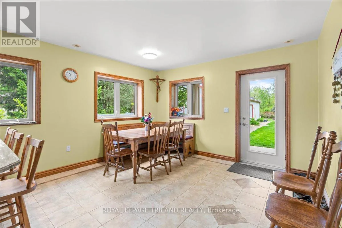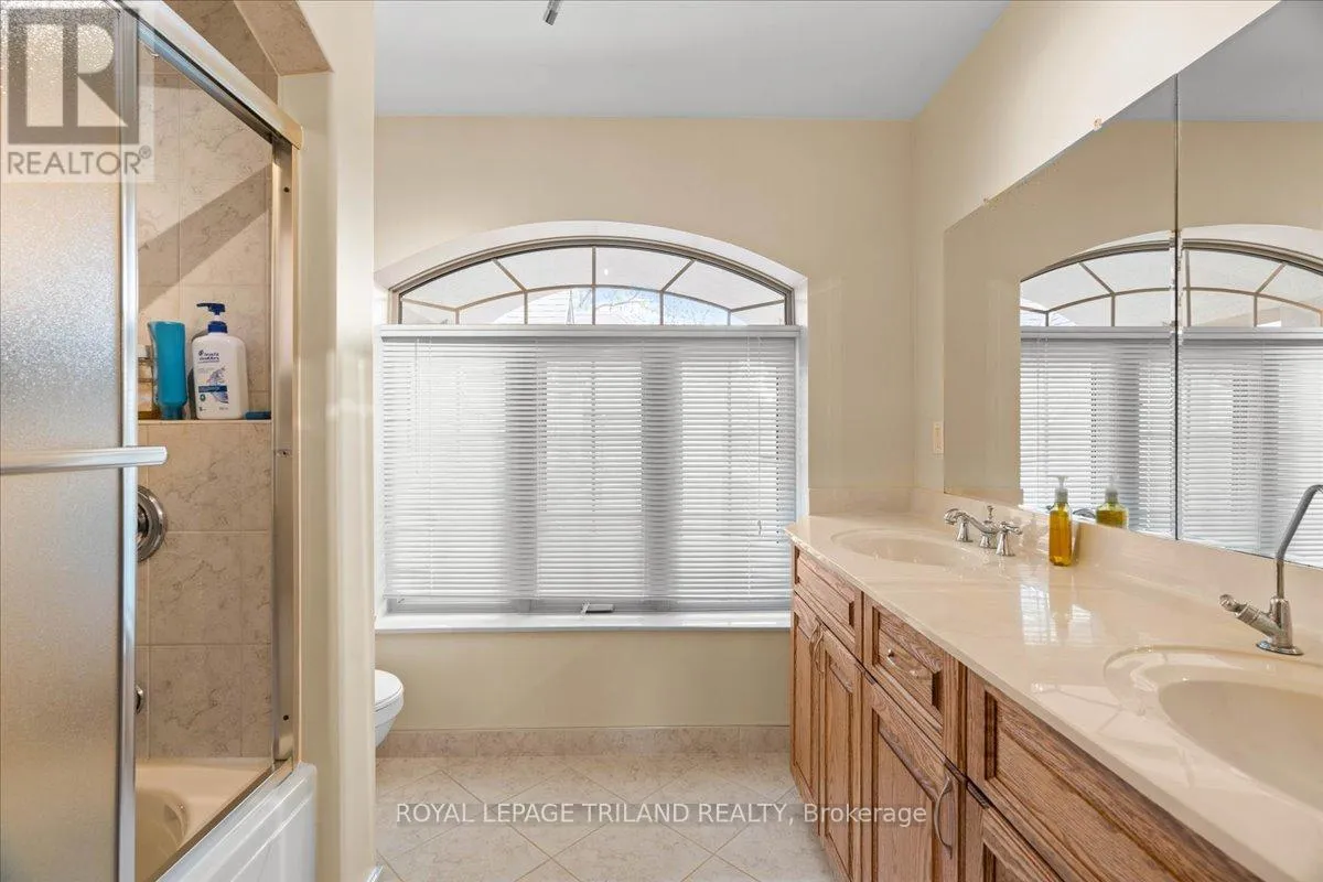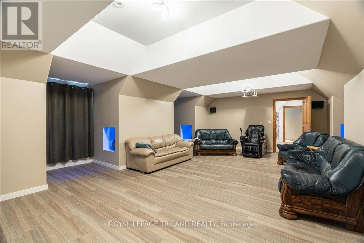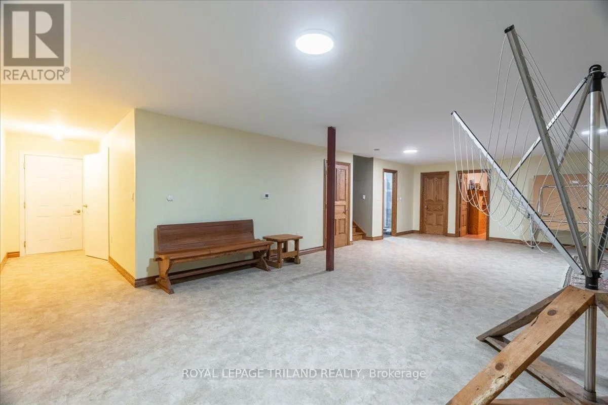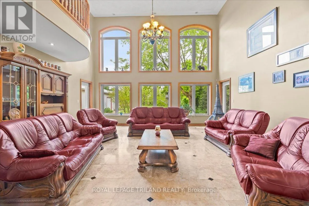 Cross Streets: PIKE AND NAPPERTON. ** Directions: West from Strathroy, property on south side. Discover exceptional living in this stunning custom-built home featuring ICF (Insulated Concrete Form) construction for unmatched energy efficiency and durability, perfectly situated on 2 private acres in the desirable town of Strathroy. Experience the grandeur of vaulted ceilings in the expansive main living area, where floor-to-ceiling rear windows showcase your private sanctuary, while the thoughtfully designed kitchen with functional peninsula seamlessly flows into the dining space, complete with garden door access to your outdoor patio. The main floor offers convenience with a 3pc bathroom, a dedicated office space, and easy access through the laundry room to your impressive 3-car garage, where the oversized third bay provides exceptional storage for trailers or workshop space, plus convenient basement access. The upper level provides a quiet retreat with three generous bedrooms plus a primary suite (featuring a private 5 pc ensuite bathroom and owners balcony), a four-piece family bathroom, and a bonus room above the garage offering flexible space currently used as a media room. The fully finished basement maximizes your living space with a large recreation room perfect for family gatherings, two additional bedrooms, a three-piece bathroom, plus practical cold storage and utility rooms for all your household needs. Your private 2-acre oasis provides endless possibilities for outdoor enjoyment, gardening, or simply relaxing in complete privacy, while the substantial 32' x 56' detached shop offers incredible potential for hobbyists, contractors, or anyone needing significant workshop and storage space. This exceptional property offers the perfect blend of luxury, functionality, and privacy in a location that combines rural tranquility with convenient access to amenities - truly a rare find for the discerning buyer. (id:27476)
