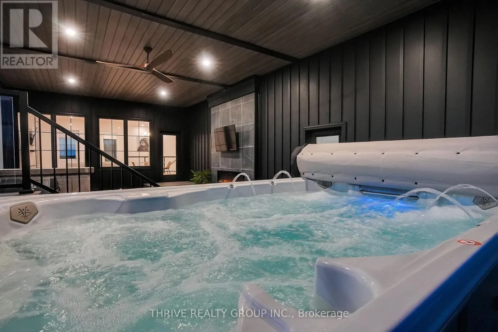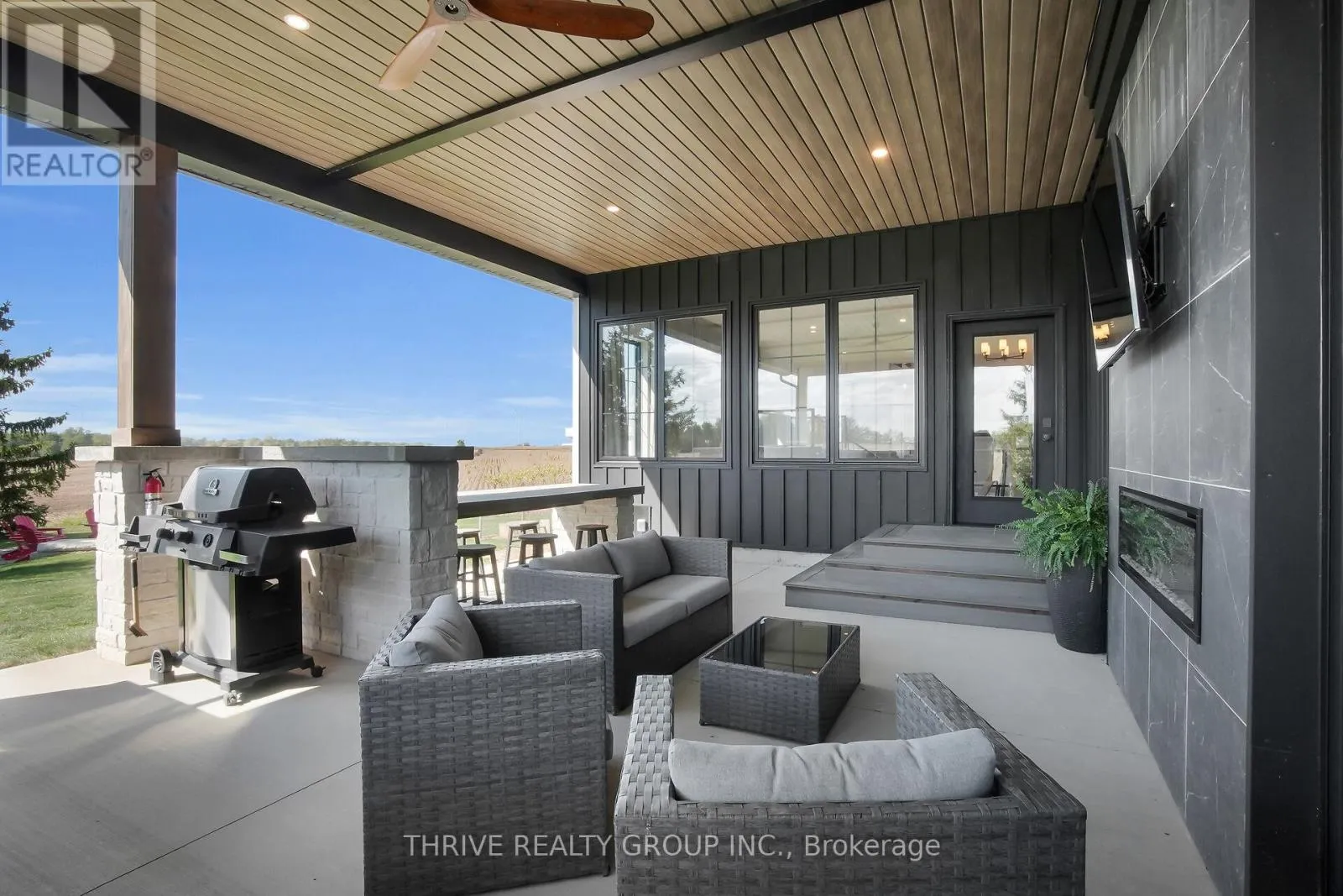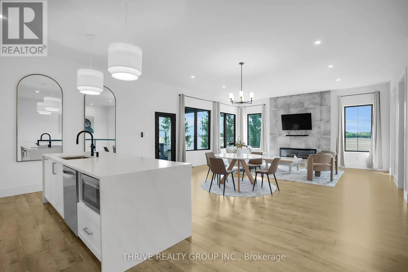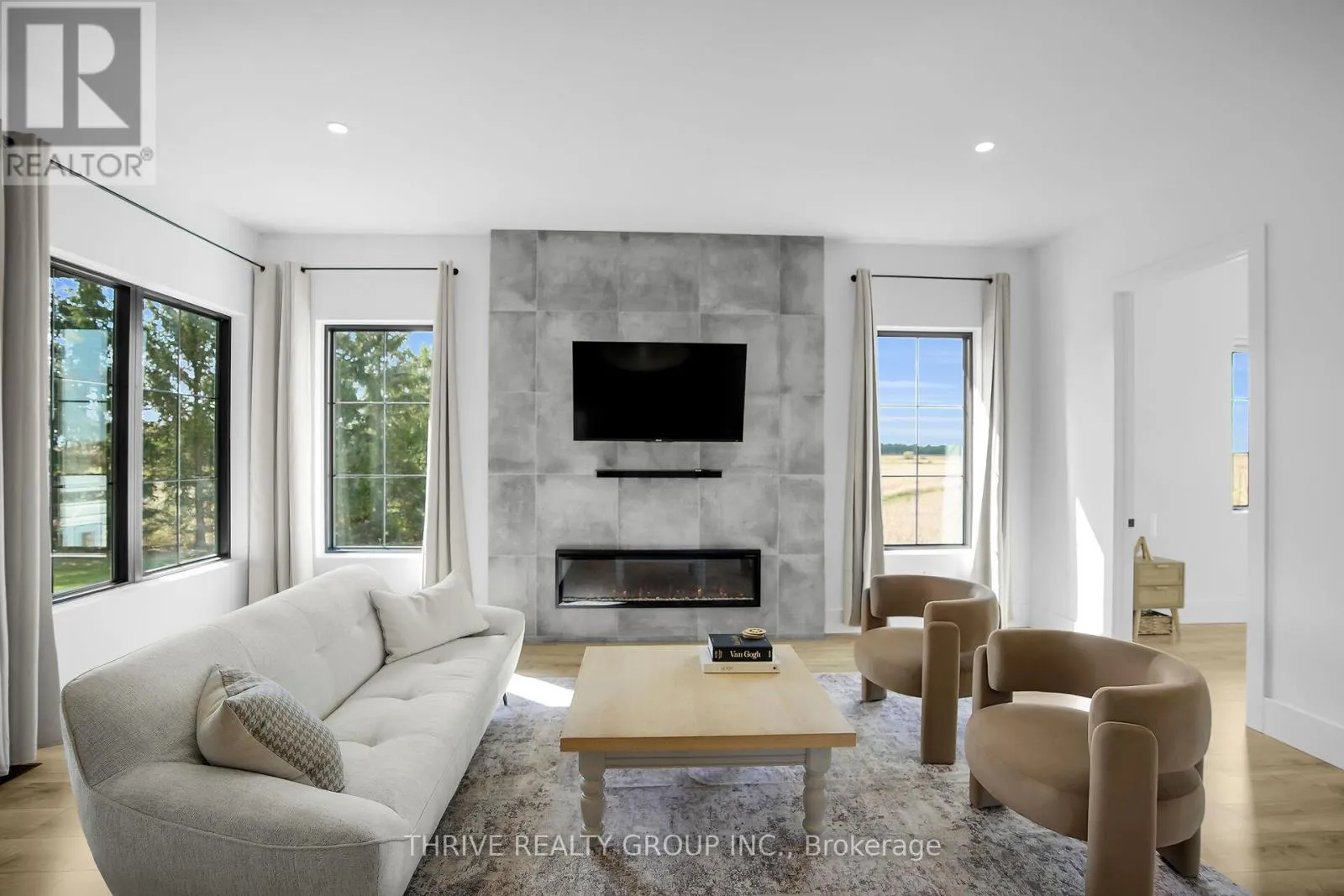 Cross Streets: Egremont and Wood Rd. ** Directions: North on to Wood Rd from Egremont. Constructed in 2023 on a 1.05 acre parcel of land surrounded by fields & seclusion, 25451 Wood Rd is the perfect rural destination. As you pull off of the paved road into the poured concrete laneway, you are greeted by the sound of the fountain circulating water through the stone lined pond. The oversized insulated 2-car garage includes 12' wide overhead doors, recessed lighting, & waterproof wall panelling. Entering the home, you are greeted with a tiled foyer & mudroom with 10' ceilings that span the entirety of the main floor. The main floor living space begins with the kitchen, equipped with quartz countertops, stainless steel appliances, & an 8' island with waterfall countertops. Just off the kitchen is the dining room & family room including a tiled entertainment area & fireplace as well as uninterrupted views of the country side. The main floor primary suite boasts a 4-piece ensuite with a 4'x8' custom shower & walk-in closet with beauty station & laundry chute. Heading into the basement with 9' ceilings, you are introduced to the lower level living room containing another custom entertainment area and fireplace. The lower level houses 3 additional rooms, a 4-piece bathroom, laundry room, & the utility room. Upon returning upstairs, you are transported to a luxurious outdoor covered patio incorporating a 13' swim spa, fireplace, tv, concrete island, stone barbecue enclosure, recessed lighting, built in sound system, & beautiful country views. Continuing into the backyard, you are presented with a chicken coop, garden area, & a stone retaining wall shaping the sunken seating area & fire pit. Also included on the property is a steel roof, Generac generator (supplying the entire living area & sump pump), automatic exterior lights, drive way indicator, a 200-amp panel with 100-amp sub-panel & surge protector, as well as permit approval for a detached shop. (id:27476)