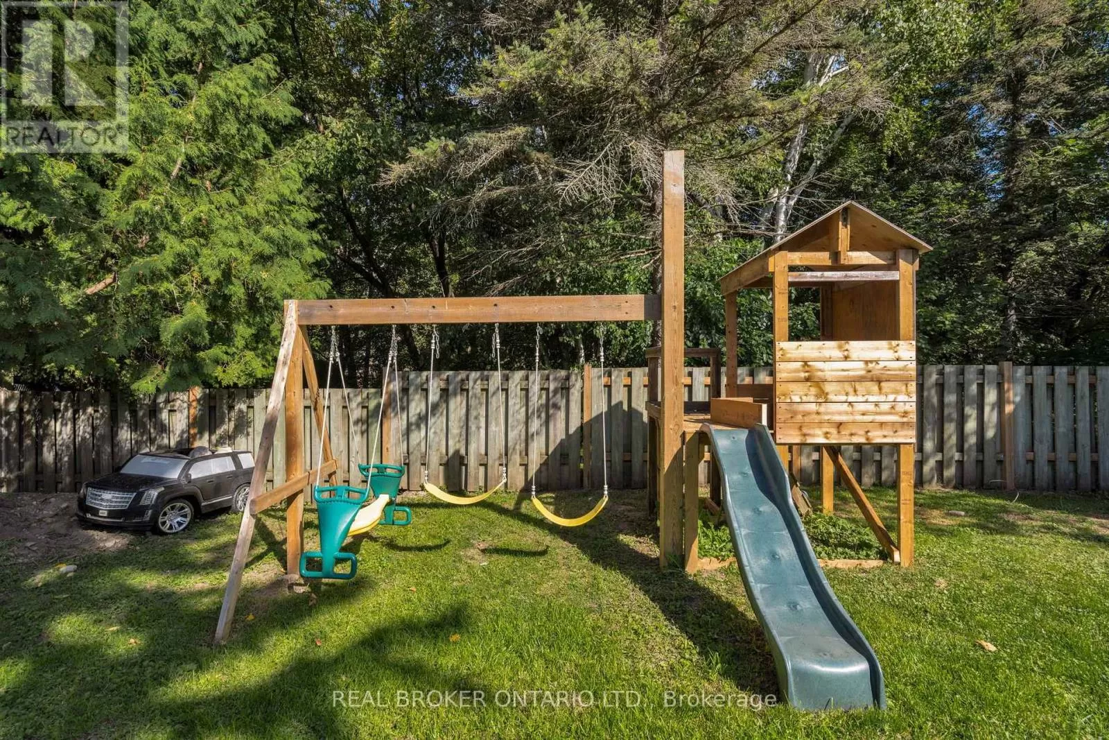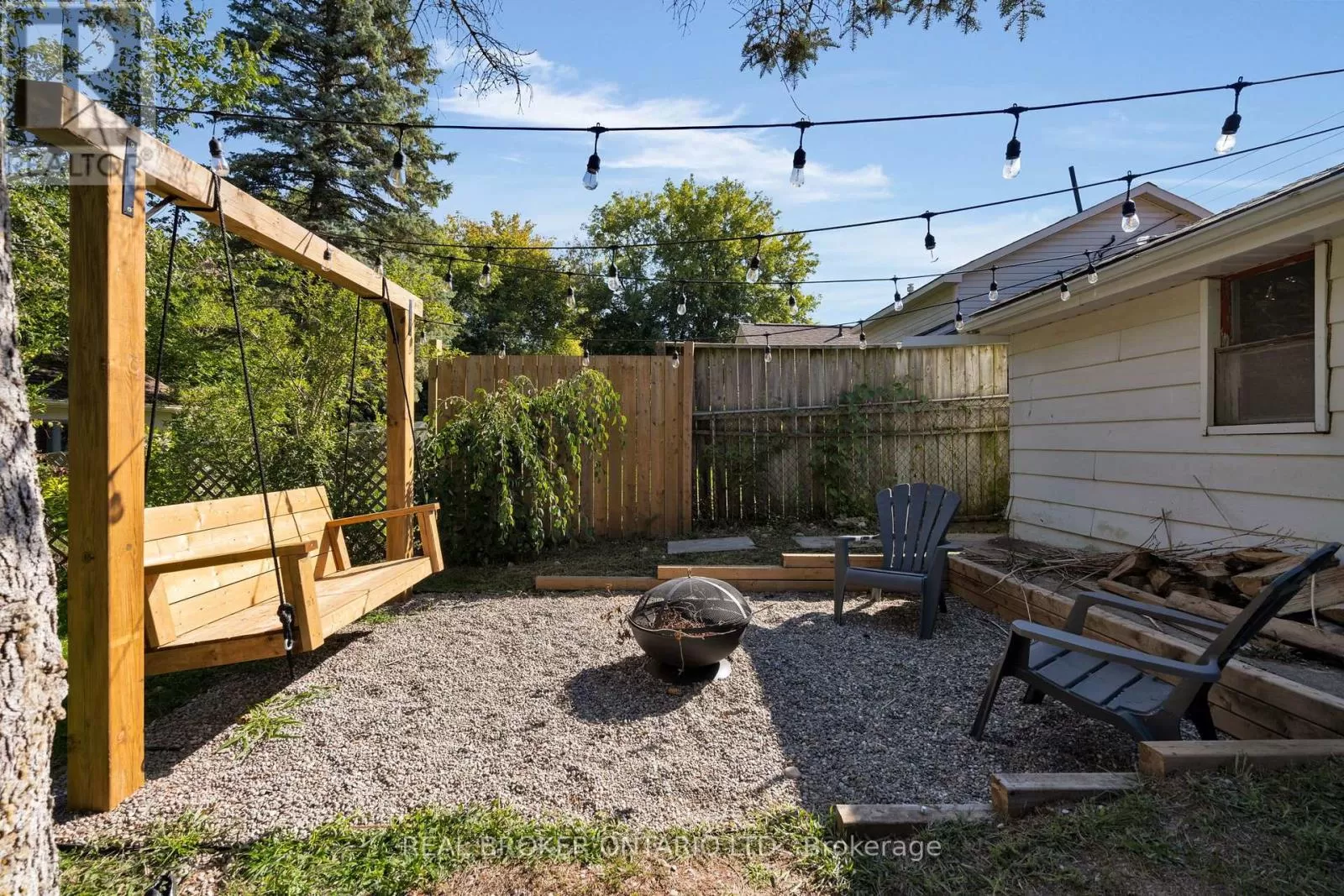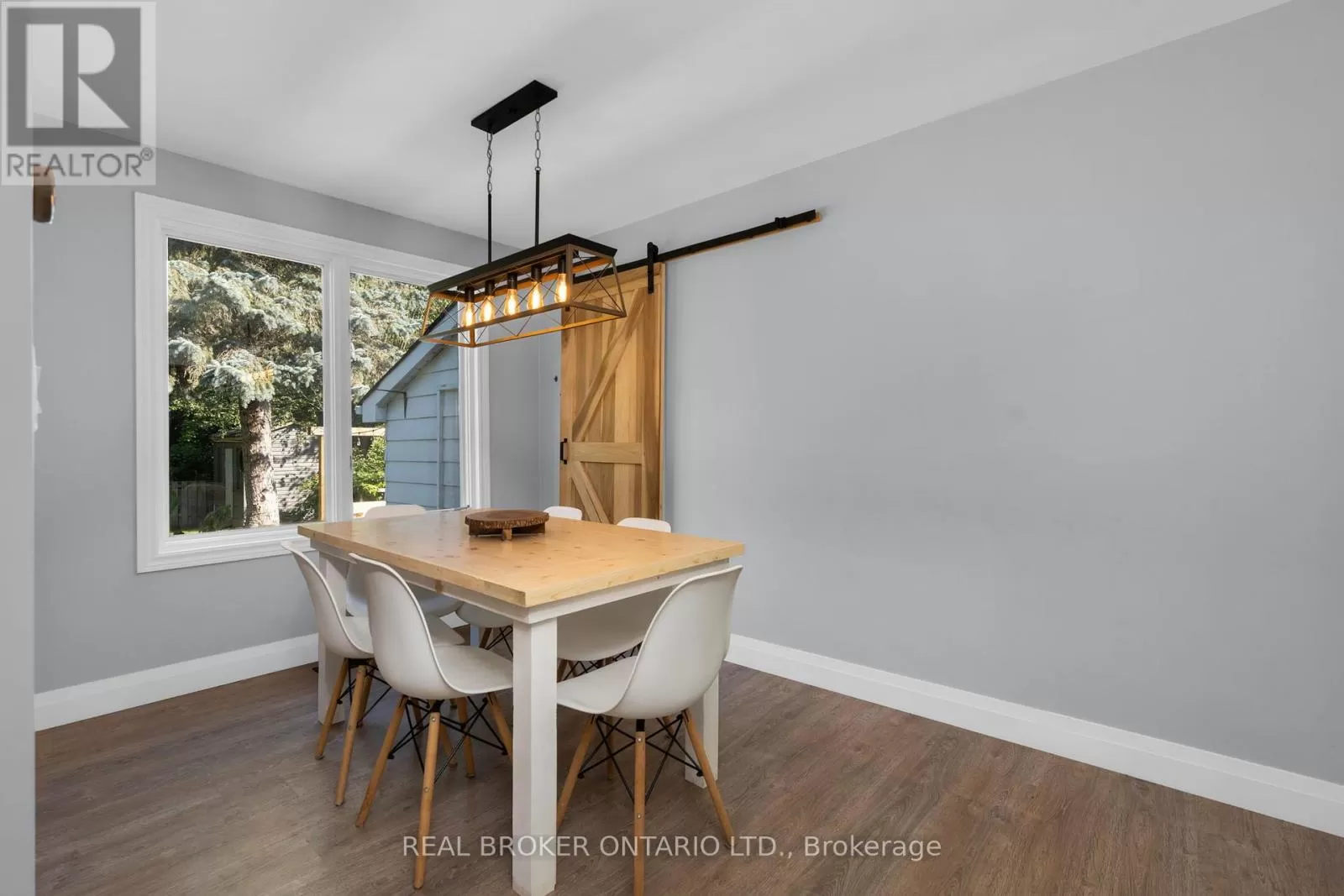 MAIN STREET EVERETT Surrounded by expensive homes this adorable ranch all brick bungalow (not garage) was renovated 2021 and has a huge usable backyard with tons of trees and privacy! With plenty of parking we start off on the right foot before even stepping inside. Then once inside you will notice all of the flat ceilings and pot lights (2021) as well as vinyl flooring and trim replaced (2021). The adorable ship lapped fireplace also has handy storage on both sides and light beams in the massive window. Open to the dining room and kitchen the flow works well and there is even a barn door to main floor laundry which also has access to the inside single car garage (which has pot lights). Onto the kitchen (refaced 2021) you will see sleek granite counters with undermounted sink, pot filler, gas stove and backsplash. Down the hall three spacious bedrooms all with the updated flooring and trim as well as one with a closet organizer and pot lights. There is also a deep linen closet and 4-piece updated bathroom. The welcoming back yard has massive deck (2023), storage shed (2022) and firepit area with string lights and built in swing. There are two cherry trees and raspberry bushes as well. The breaker panel was also updated 2021. Right on school bus route makes it easy for the kiddos, 8 minutes to Alliston, and 9 minutes to Base Borden (id:27476)