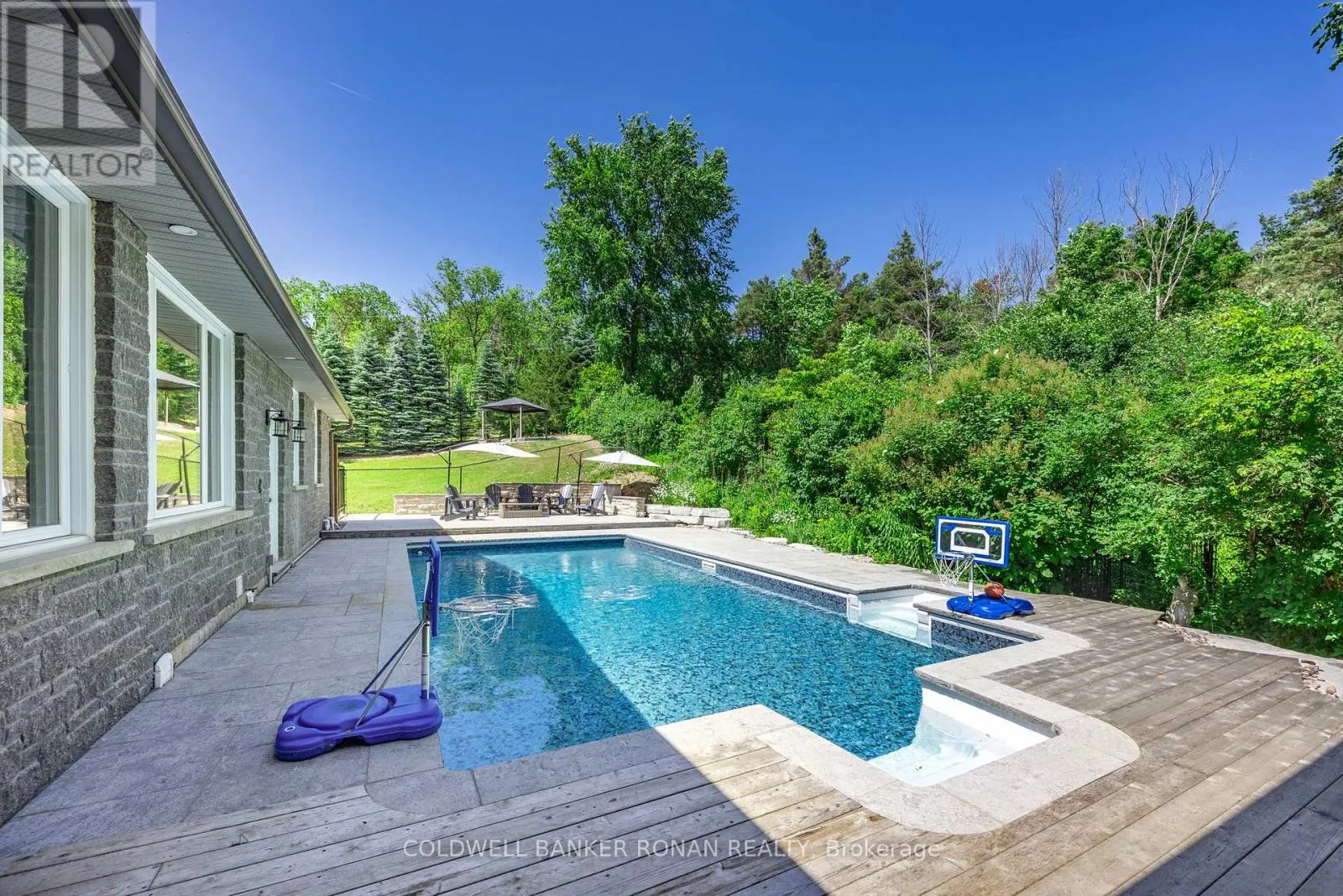 Con Rd 7/5 Sideroad Tosorontio Opportunity for multi-generational living! Located just northwest of Alliston, this expansive walk out bungalow offers over 5,000 sqft of finished living space on a private 1.25 acre property promising a tranquil lifestyle surrounded by nature, with endless outdoor recreation opportunities nearby including Earle Rowe Provincial Park, just steps away. This entertainers dream home features a striking stone exterior, attached two-car garage, paved driveway with armour stone boarders and lovely views from multiple walkouts. Enjoy the in ground pool and patio area, evenings around the fire pit, or soak and relax in the hot tub. Inside, youll find a thoughtfully designed living space with elegant touches throughout crown moulding, hardwood flooring and beautiful brick fireplace with custom built-ins. This home offers large principal rooms, a total of 6 spacious bedrooms, and 5 bathrooms, including 3 ensuites (one for each main floor bedroom)! The bright, finished basement provides even more living space with above-grade windows, two french door walkouts, a second kitchen, large open great room, 3 bedrooms, a full washroom, and laundry/storage perfect for multigenerational living or hosting guests. This impressive home offers a rare opportunity to embrace country living without sacrificing modern comforts all within a short drive to town. (id:27476)
