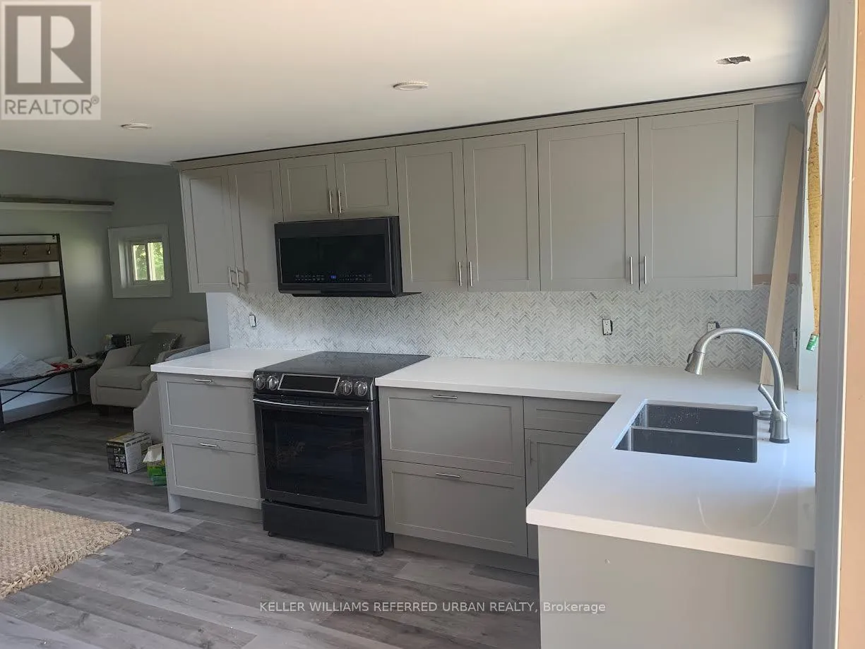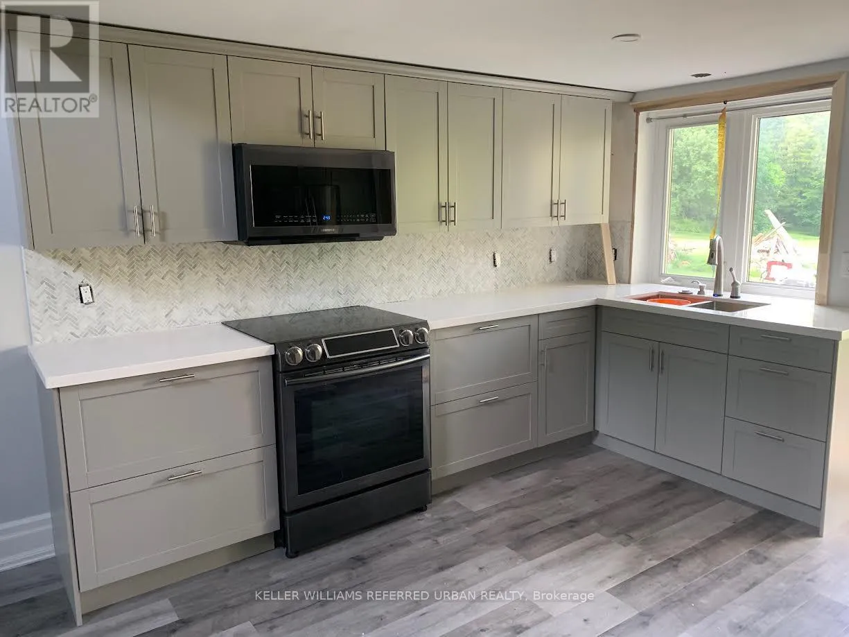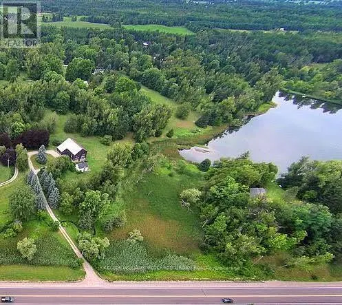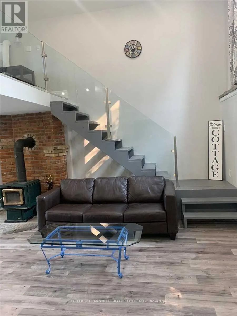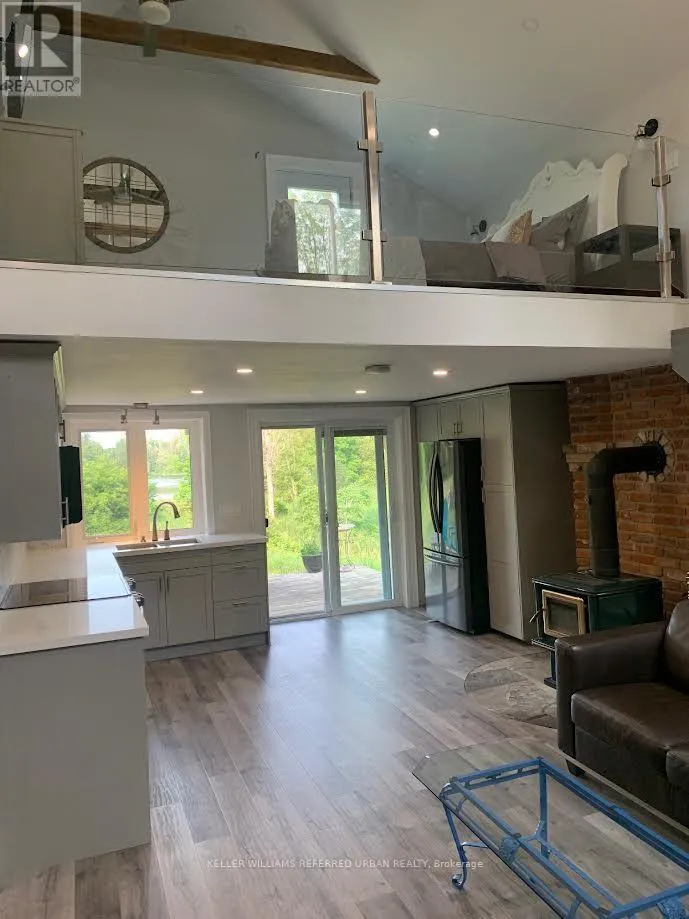 Highway 9 & Highway 50 A private oasis on 4 acres of land, bordering a small lake. Renovated, modern and open concept, this is luxury country living! Pot lights, glass railings, vaulted ceilings, walk-in closet, stone counters and ample natural light are just a few of the features. Enjoy summer walking out to the deck, sitting by the campfire or just enjoying the calm. Woodstove is fully functional to reduce heating bills. Furnishings are included. (id:27476)