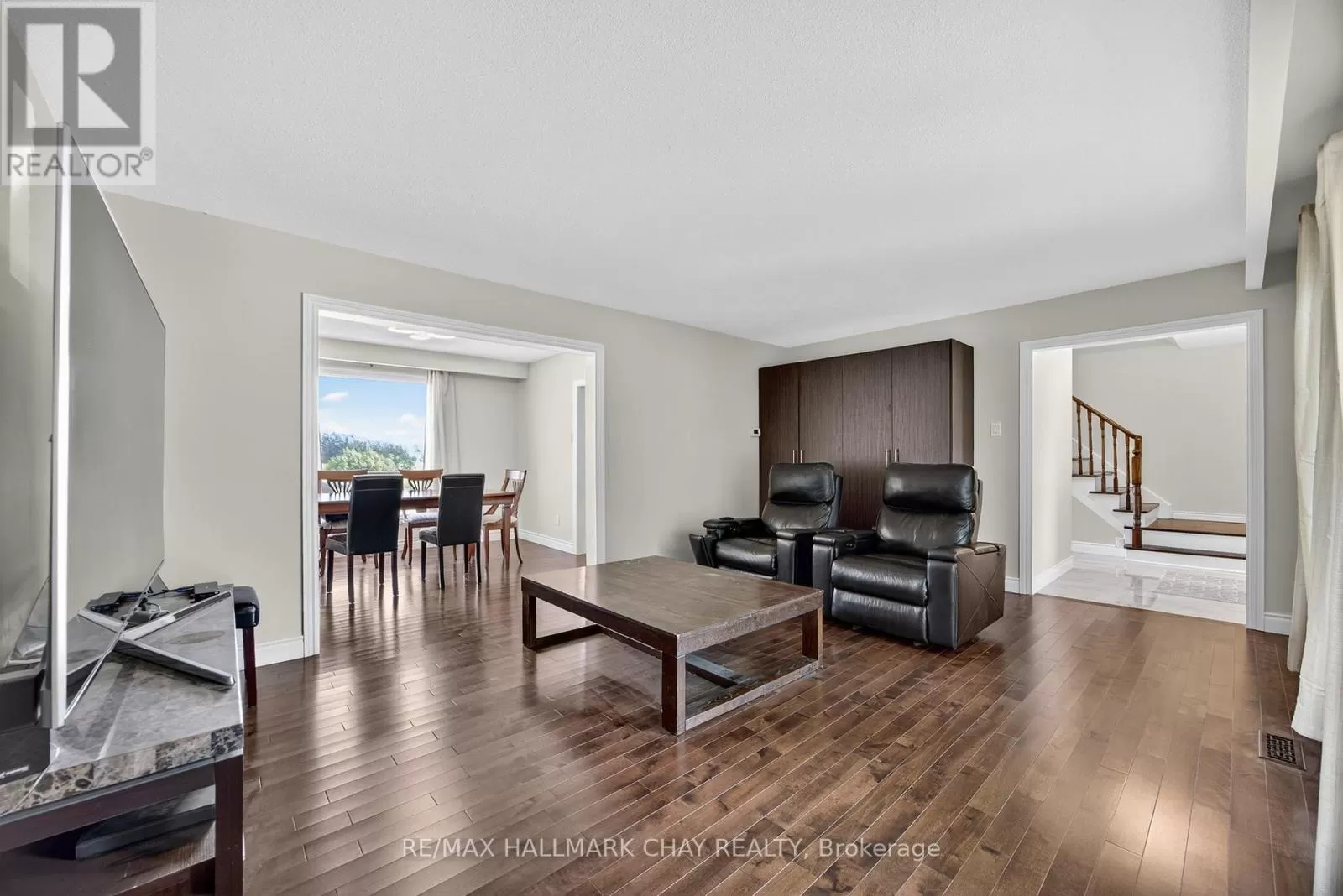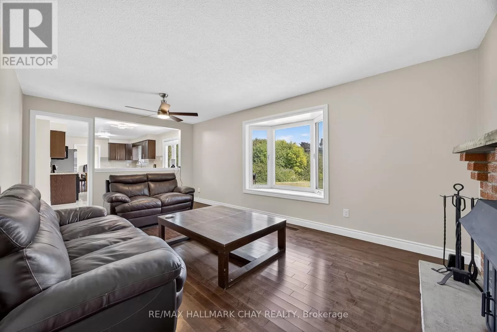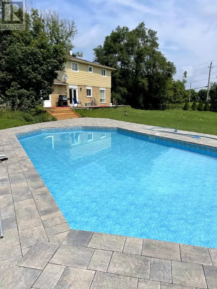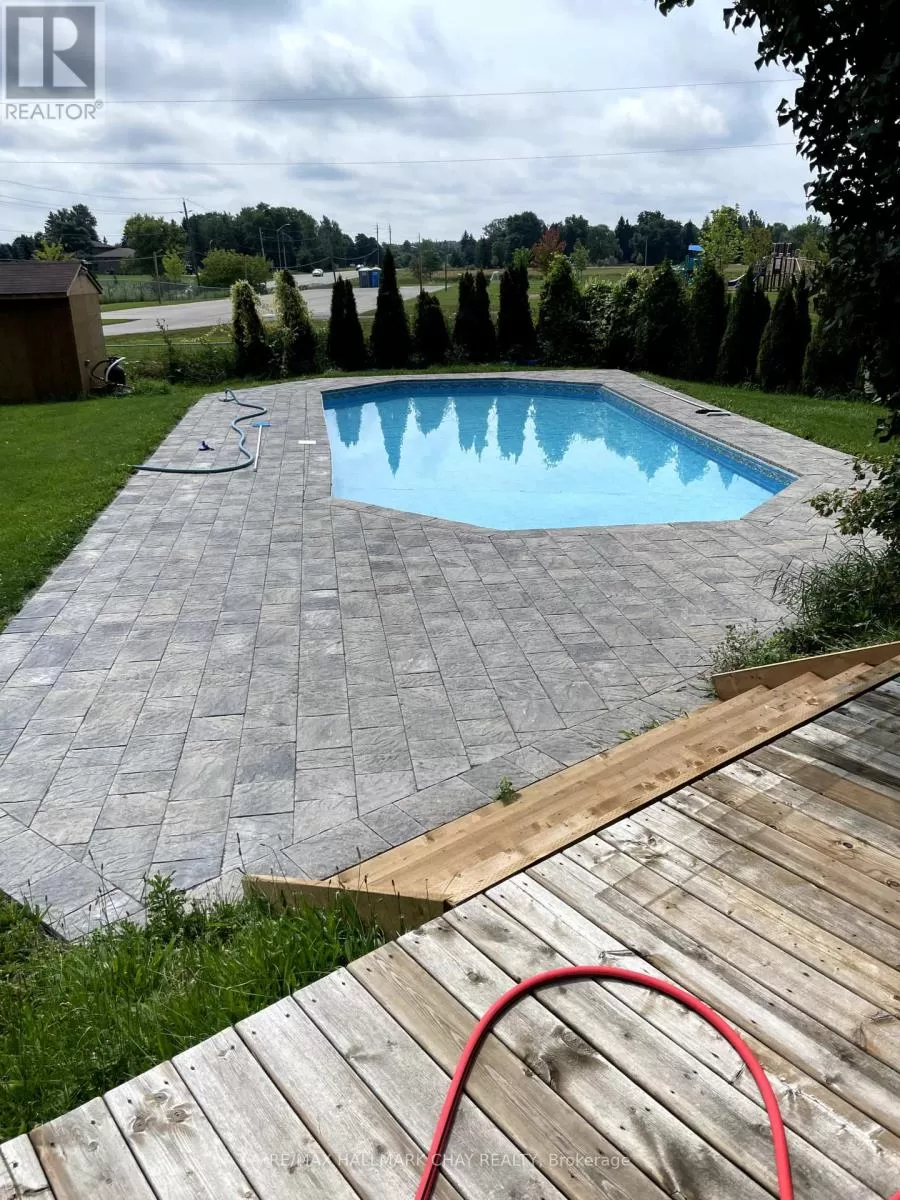 Cross Streets: Simon Dr & County Rd 50. ** Directions: Hwy 9 to County Rd 50 North to Simon Dr. A covered front entrance with new interlocking walkway welcomes you to this 4 bedroom family home recently renovated with premium finishes throughout. Solid oak hardwood and porcelain flooring through main and upper level. Custom Kitchen features oak cupboards, granite countertops, porcelain backsplash and high end appliances, just 2 years old. Main floor bath has new shower stall. The finished basement includes a recreation room with laminate flooring and a natural gas fireplace perfect for family gatherings. Walk out from the kitchen to the fully fenced south facing backyard with new shed and direct park access, ideal for kids and pets. New interlocking around the shallow in ground pool perfect for lounging and family fun! Double car garage with gas heater ready to connect and with the new oversized driveway you can easily accommodate 10 vehicles. Bell Fibe internet and quick highway access for the commuters. Family friendly street great place to call home! (id:27476)
