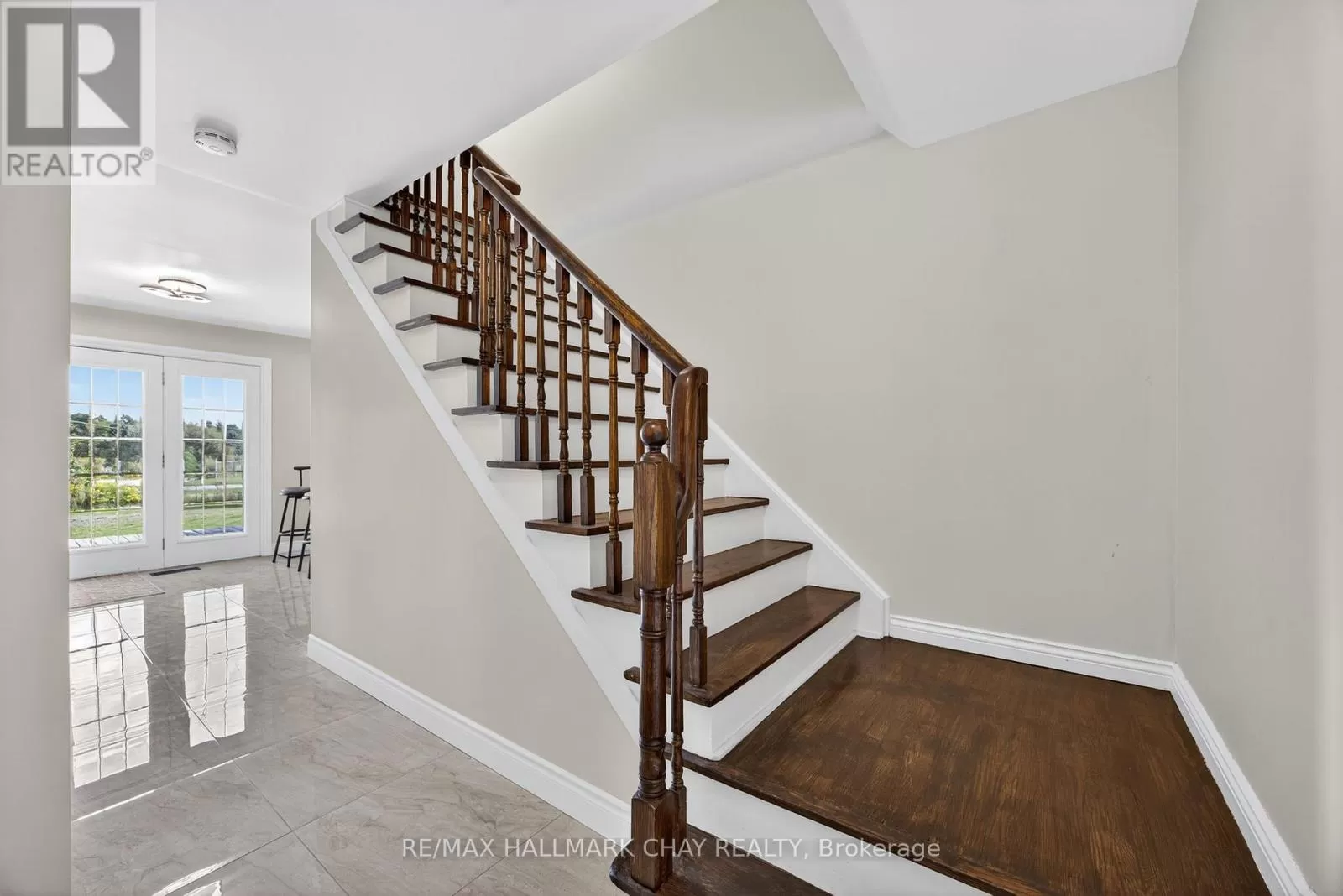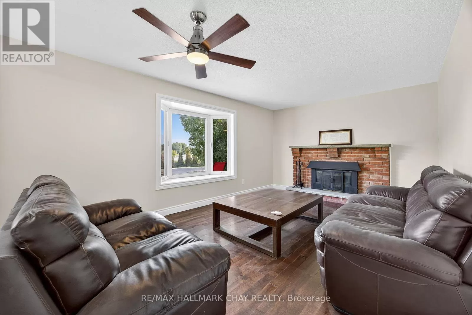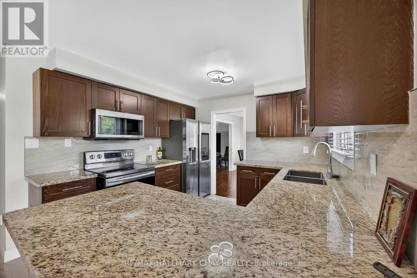 Cross Streets: Simon Dr & County Rd 50. ** Directions: Hwy 9 to County Rd 50 North to Simon Dr. A covered front entrance with new interlocking walkway welcomes you to this 4 bedroom family home recently renovated with premium finishes throughout. Solid oak hardwood and porcelain flooring through main and upper level. Custom Kitchen features oak cupboards, granite countertops, porcelain backsplash and high end appliances, just 2 years old. Main floor bath has new shower stall. The finished basement includes a recreation room with laminate flooring and a natural gas fireplace perfect for family gatherings. Walk out from the kitchen to the fully fenced south facing backyard with new shed and direct park access, ideal for kids and pets. New interlocking around the shallow in ground pool perfect for lounging and family fun! Double car garage with gas heater ready to connect and with the new oversized driveway you can easily accommodate 10 vehicles. Bell Fibe internet and quick highway access for the commuters. Family friendly street great place to call home! (id:27476)
