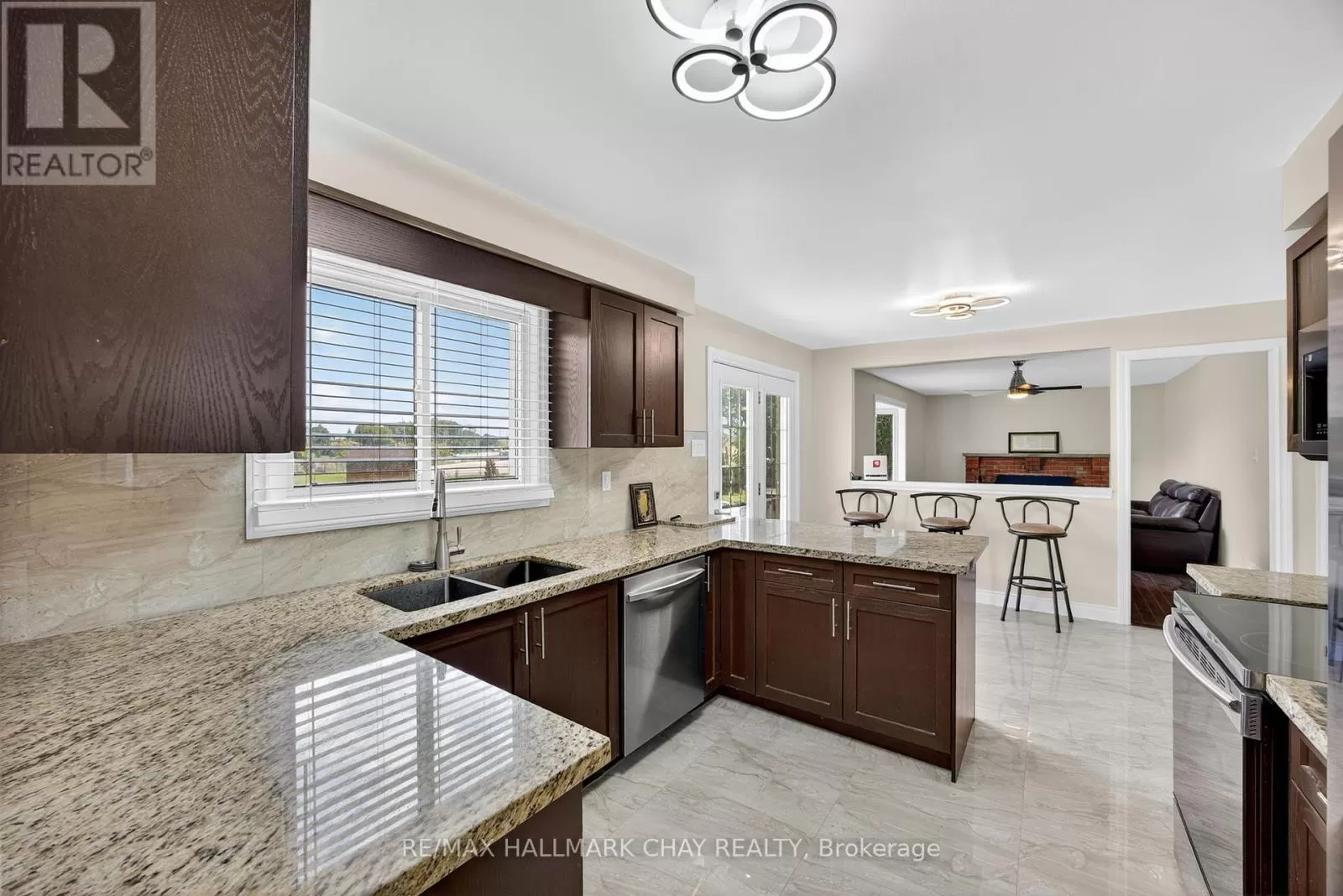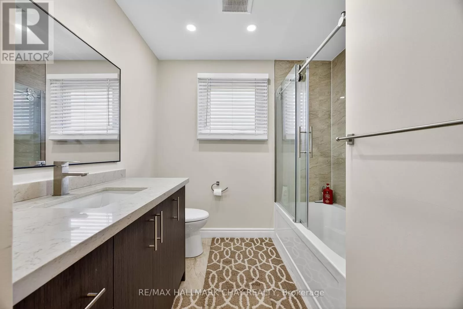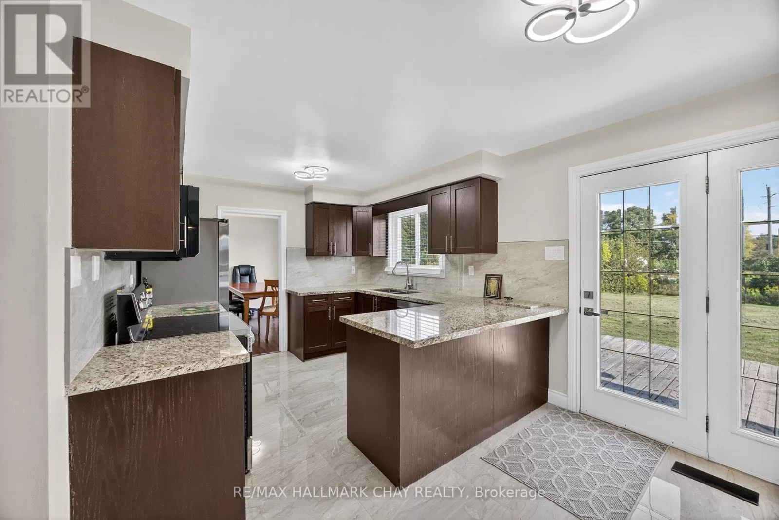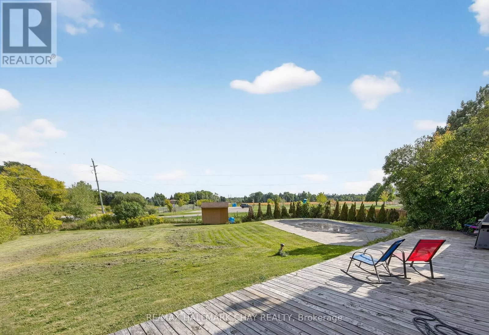 Cross Streets: Simon Dr & County Rd 50. ** Directions: Hwy 9 to County Rd 50 North to Simon Dr. A covered front entrance with new interlocking walkway welcomes you to this 4 bedroom family home recently renovated with premium finishes throughout. Solid oak hardwood and porcelain flooring through main and upper level. Custom Kitchen features oak cupboards, granite countertops, porcelain backsplash and high end appliances, just 2 years old. Main floor bath has new shower stall. The finished basement includes a recreation room with laminate flooring and a natural gas fireplace perfect for family gatherings. Walk out from the kitchen to the fully fenced south facing backyard with new shed and direct park access, ideal for kids and pets. New interlocking around the shallow in ground pool perfect for lounging and family fun! Double car garage with gas heater ready to connect and with the new oversized driveway you can easily accommodate 10 vehicles. Bell Fibe internet and quick highway access for the commuters. Family friendly street great place to call home! (id:27476)