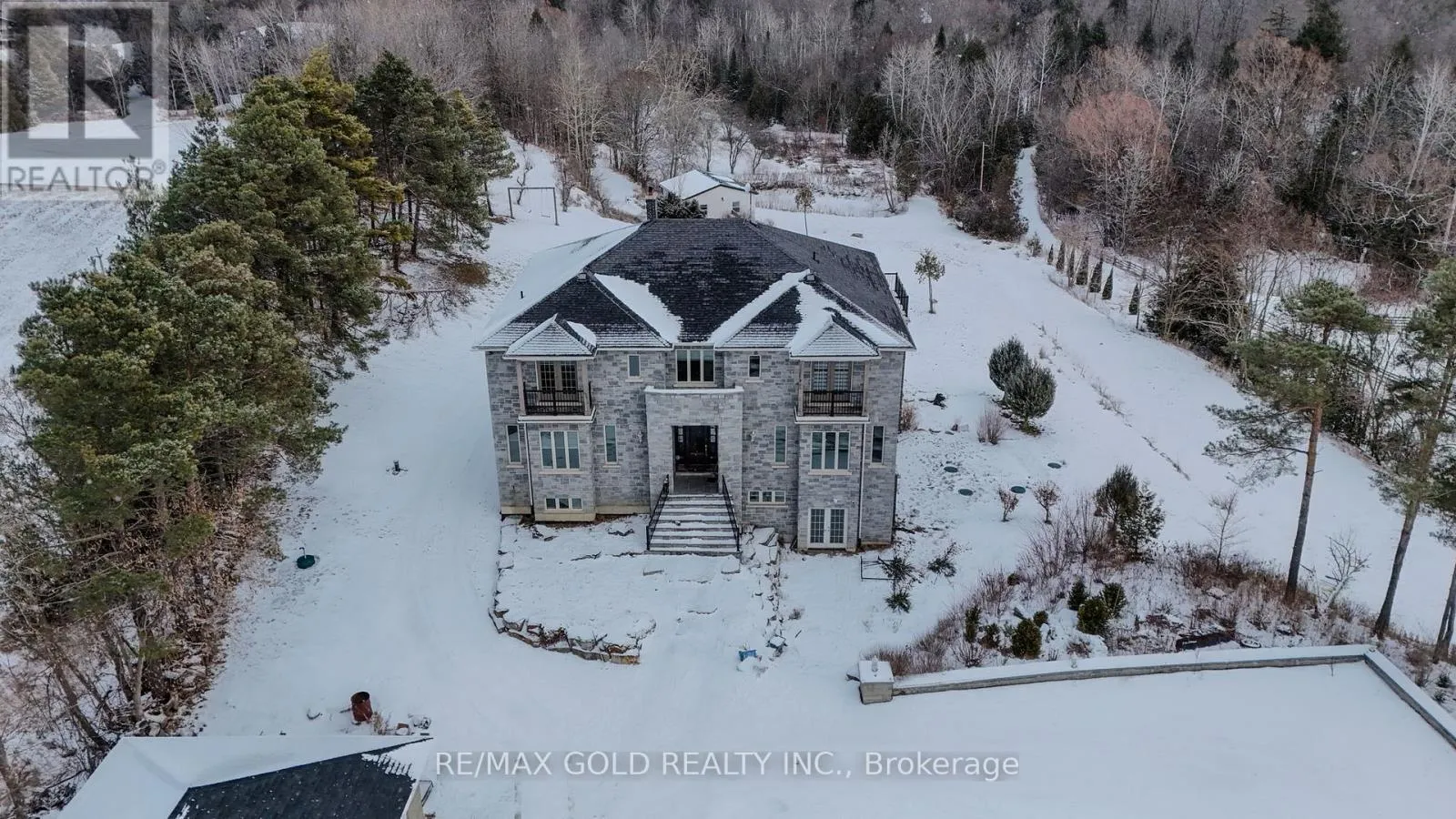 Highway 9 & 50 Experience Country Living At Its Best With This Stunning 7,327 Sq Ft (Finished Space) Custom Home On 10 Acres, Featuring Heated Marble and Granite Floors, Mahogany Doors and Flooring, Floor-To-Ceiling Windows, and A Gourmet Kitchen With Stainless Steel Appliances and A Breakfast Area Overlooking The Backyard; The Home Offers Formal Living and Dining Rooms, Office, and A Spacious Family Room With A Walk-Out Patio Facing The Pond, While The Primary Bedroom Includes A Spa-Like Ensuite and Walk-Out Balcony, 2nd Bedroom With Ensuite and Own Balcony, Another 2 Good Size Bedrooms with W/I Closet, An Ideal Property For Large or Multi-Generational Families, Spacious W/O Basement With 3 Bedrooms, Rec Room & Wet Bar, 2 Full Washrooms In Basement, Geo Thermal Heating and Cooling System, 400 AMP Electrical Panel, Separate Nanny Suite Built In Back Of House, Property Sold Under Power of Sale, Sold As Is, Where Is. (id:27476)