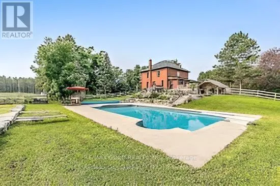 Cross Streets: HWY 9 / HWY 50. ** Directions: On Highway 9 west of highway 50 and east of airport rd on north side of highway just at conc4/ highway 9. Experience the pinnacle of rural luxury on this breathtaking 91-acre corner property bordering Caledon, where a fully renovated century home perfectly blends historic charm with modern sophistication. This sprawling country estate features a private pool and spa area with a dedicated BBQ building overlooking rolling paddocks, all while offering rare, breathtaking South-East views of the Toronto skyline. The land is a dream for equestrian enthusiasts and agricultural investors alike, boasting a 50x140ft indoor arena, a 150x140ft outdoor sand ring, 12 paddocks, and over 12 stalls, alongside the serene beauty of the Humber River winding through the acreage. Beyond the residential luxury, the property is a prime candidate for a high-traffic business location, featuring extensive Highway 9 frontage, a separate bunkie, and a 50x40ft heated and insulated building currently serving as a successful country artisan store. Whether you are looking for a peaceful retreat, a world-class equestrian facility, or a strategic entrepreneurial venture, this rare offering provides a versatile and stunning canvas to bring your grandest vision to life. (id:27476)