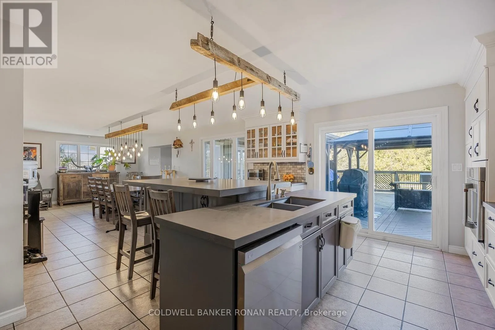 5th Sideroad of Tos N. on Conc Rd 6 Exceptional 118-acre working farm just minutes from the thriving town of Alliston, offering a rare combination of agricultural income, multigenerational living, and business potential. Currently operating as a bison and Texas Longhorn cattle farm, this property is well-equipped for livestock or expanded agri-business use. Two custom homes provide flexible living options. The main residence features a spacious eat-in kitchen with walkout to a landscaped yard and in-ground pool, multiple living areas, main floor primary bedroom, office, and five additional bedrooms upstairs. The finished walkout lower level includes a recreation room, kitchenette, and bath. A second walkout bungalow (1998) offers 2+3 bedrooms, ideal for extended family or income potential. Extensive infrastructure includes 800-amp service and a 10kW microFIT solar system generating approx. $10,000/year. Farm buildings include six grazing sheds (32' x 360'), a 130' x 50' shop (approx. 40% cold storage) attached to a 50' x 80' building (approx. 90% cold storage), a 40' x 100' coverall, multiple run-in sheds, and a large bank barn with retail/event potential and possible living quarters, plus lower-level equestrian setup. Approx. 80 workable acres, with portions currently in pasture. A turnkey farm with scale, versatility, and long-term opportunity in a prime location. (id:27476)