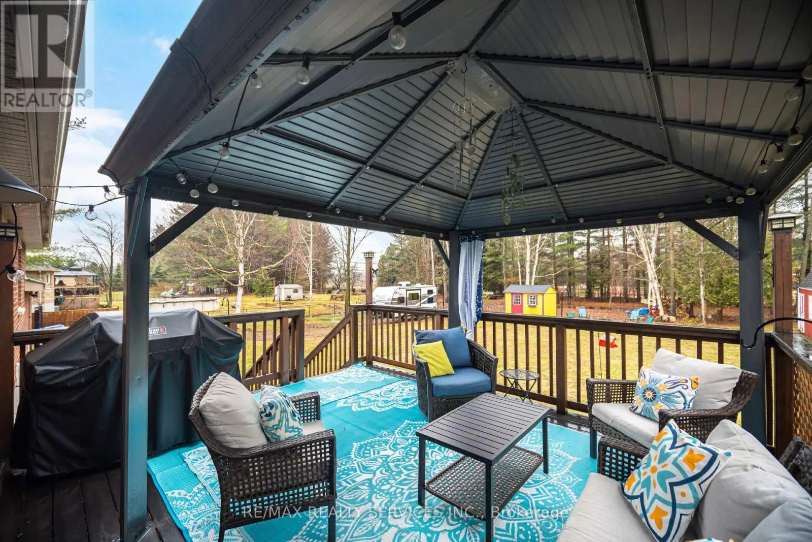 Cross Streets: County Road 13 & Princess. ** Directions: County Road 13 & Princess Drive. Welcome to 56 Princess Drive in Lisle. Beautifully upgraded Raised Bungalow on a acre treed lot. 3+2 bedrooms, finished lower level with separate entrance. Minutes away from Base Borden and located in a community-minded Village in the Township of Adjala-Tosorontio - fantastic location! Newly renovated Gourmet kitchen, upgraded bathrooms, freshly painted, modern finishings & more. Main floor has a terrific layout with functional access to the kitchen, dining area & living room making for great entertaining. Double garden doors open to the 16x14 deck with a 12x10 steel Gazebo extended the outdoor dining area all while enjoying nature in your own backyard. Sun filled living room and a dining area which is combined with both the kitchen & living room. 3 generous sized bedrooms. Hardwood floors on main level with new vinyl plank flooring in kitchen. Fully finished lower level offers more great family space. It features above grade windows, a spacious rec room for game night, 2 additional bedrooms and a 2nd 4pce bath. Bonus feature is the walk-up from the laundry room to the garage making this a separate entrance to the lower level. Fantastic curb appeal, oversized driveway to accommodate all your parking needs, cozy front deck/porch & garden beds. Backyard with lots of room for the kids to play, 12x24 barn-style shed with loft and an 8x10 She-Shed/Gardening Shed allowing for ample outdoor storage. Backyard is fully fenced and backs onto a wooded area with access to the front yard from both sides of the house. Many recent upgrades: kitchen, baths, garage doors, appliances, windows & more. This home has something for everyone including the outdoor enthusiast. Located across from the access path to the neighborhood park/playground, you can drive your ATV/snowmobile right from the house to the trails nearby. Don't miss out on this one! (id:27476)