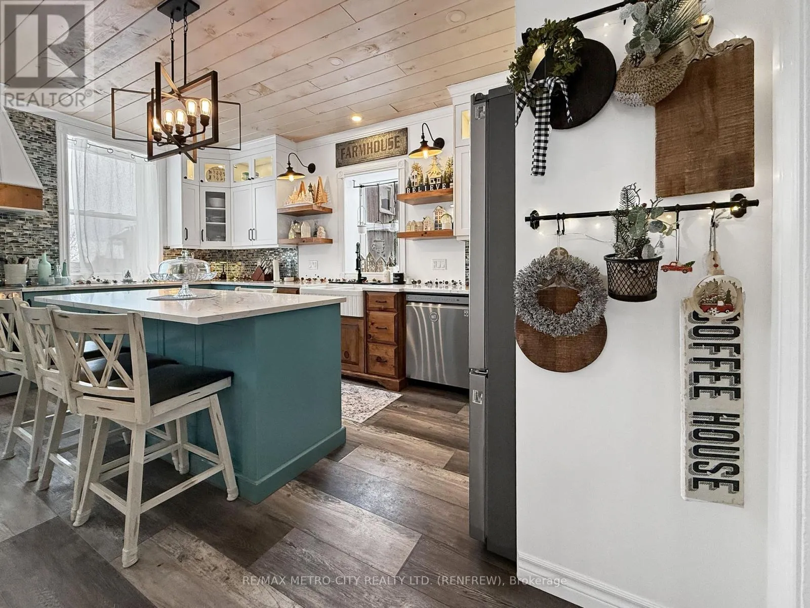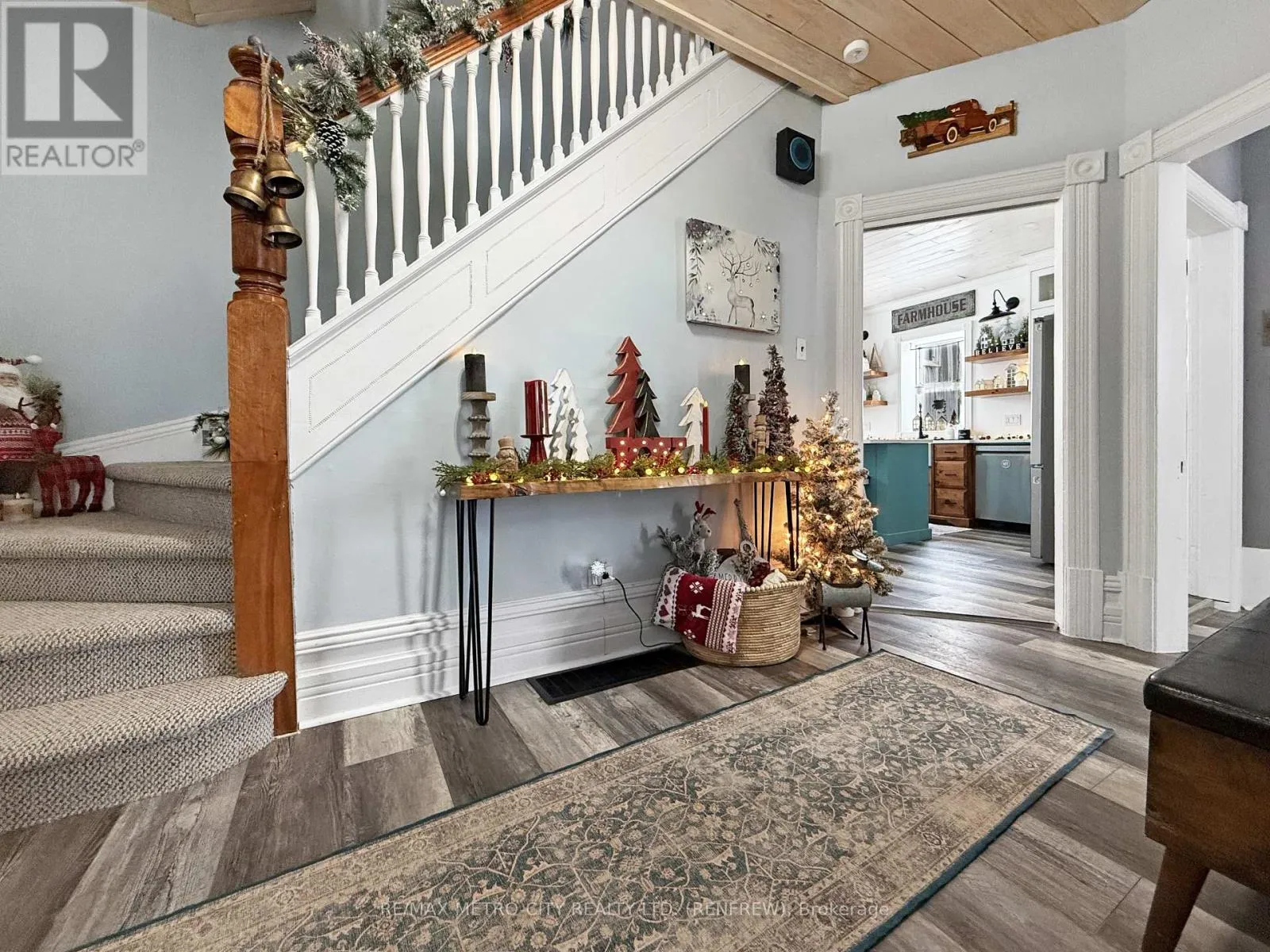 Cross Streets: Opeongo Rd. ** Directions: From Renfrew, take HWY 132 follow passed Opeongo Rd, home is on the right. Captivating Renovated Farmhouse on 31 Acres at Renfrew's Edge !!! Discover the timeless charm of this traditional three-storey farmhouse, exquisitely transformed into a modern haven, set on an expansive 31-acre lot at the edge of Renfrew. This stunning property combines classic architecture with contemporary living conveniences, ensuring a refined rural lifestyle. Step onto the inviting covered front porch and enter a warm main floor featuring a gourmet kitchen with a central island, perfect for culinary creations and family gatherings. Enjoy the practicality of a main floor laundry room, alongside a cozy living room and elegant dining area. From the dining room, access the spacious rear deck that offers panoramic views over the sprawling acreage and serene pond, a perfect setting for outdoor entertainment. The second floor hosts three generously-sized bedrooms and a den that currently serves as a walk-in closet, along with a charming covered porch. A well-appointed 4-piece bath adds to the home's comfort. The third floor presents three partially finished rooms, offering a versatile space for further development. Imagine a home office, studio, or guest retreat. Updated within the past seven years, the home features efficient propane forced air heat and central air conditioning for year-round comfort. Nature enthusiasts will appreciate the property's proximity to the K&P Recreational Trail, providing endless opportunities to explore the scenic beauty of Renfrew County. Additionally, there is potential to sever two extra lots on the property's east end, accessible from McLaren Rd, paving the way for future growth or investment. Seize the opportunity to own this exceptional countryside escape that combines modern luxury with much added potential. Schedule your viewing today and envision the lifestyle awaiting you at this unique Renfrew home. (id:27476)