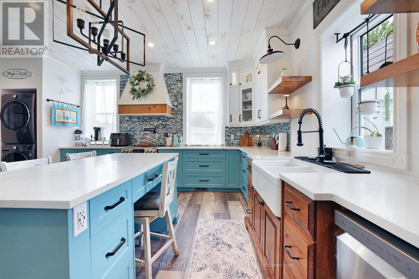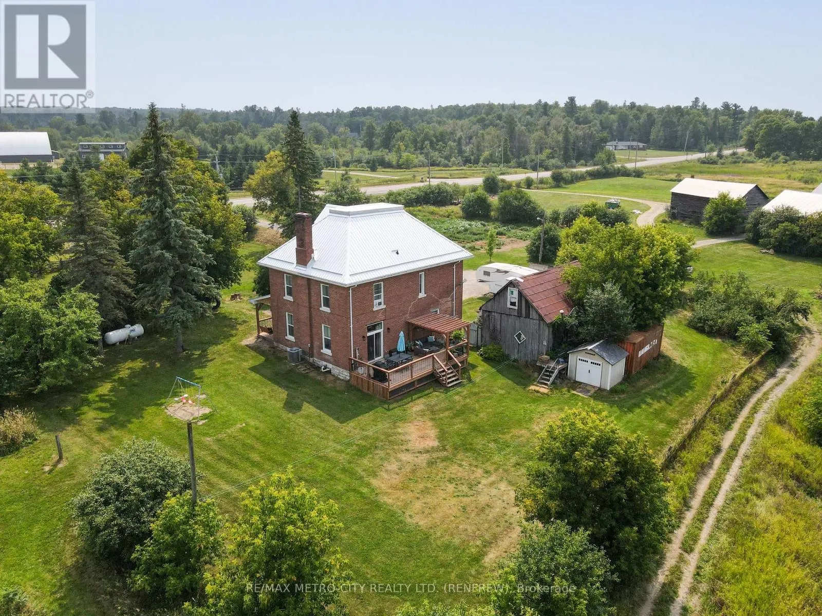 Cross Streets: Opeongo Rd. ** Directions: Hwy 132 From Renfrew, past Opeongo RD home is on the right. Captivating Renovated Farmhouse on 31 Acres at Renfrew's Edge !!! Discover the timeless charm of this traditional three-storey farmhouse, exquisitely transformed into a modern haven, set on an expansive 31-acre lot at the edge of Renfrew. This stunning property combines classic architecture with contemporary living conveniences, ensuring a refined rural lifestyle. Step onto the inviting covered front porch and enter a warm main floor featuring a gourmet kitchen with a central island, perfect for culinary creations and family gatherings. Enjoy the practicality of a main floor laundry room, alongside a cozy living room and elegant dining area. From the dining room, access the spacious rear deck that offers panoramic views over the sprawling acreage and serene pond, a perfect setting for outdoor entertainment. The second floor hosts three generously-sized bedrooms and a den that currently serves as a walk-in closet, along with a charming covered porch. A well-appointed 4-piece bath adds to the home's comfort. The third floor presents three partially finished rooms, offering a versatile space for further development. Imagine a home office, studio, or guest retreat. Updated within the past seven years, the home features efficient propane forced air heat and central air conditioning for year-round comfort. Nature enthusiasts will appreciate the property's proximity to the K&P Recreational Trail, providing endless opportunities to explore the scenic beauty of Renfrew County. Additionally, there is potential to sever two extra lots on the property's east end, accessible from McLaren Rd, paving the way for future growth or investment. Seize the opportunity to own this exceptional countryside escape that combines modern luxury with much added potential. Schedule your viewing today and envision the lifestyle awaiting you at this unique Renfrew home. (id:27476)