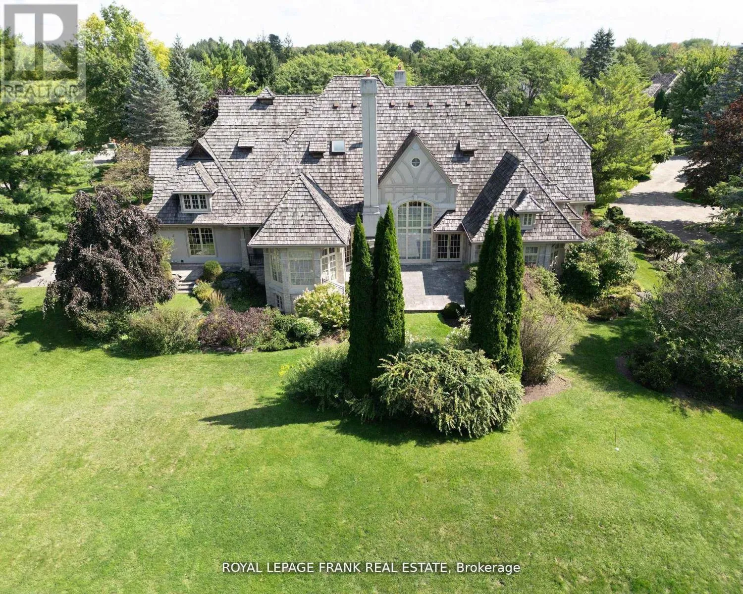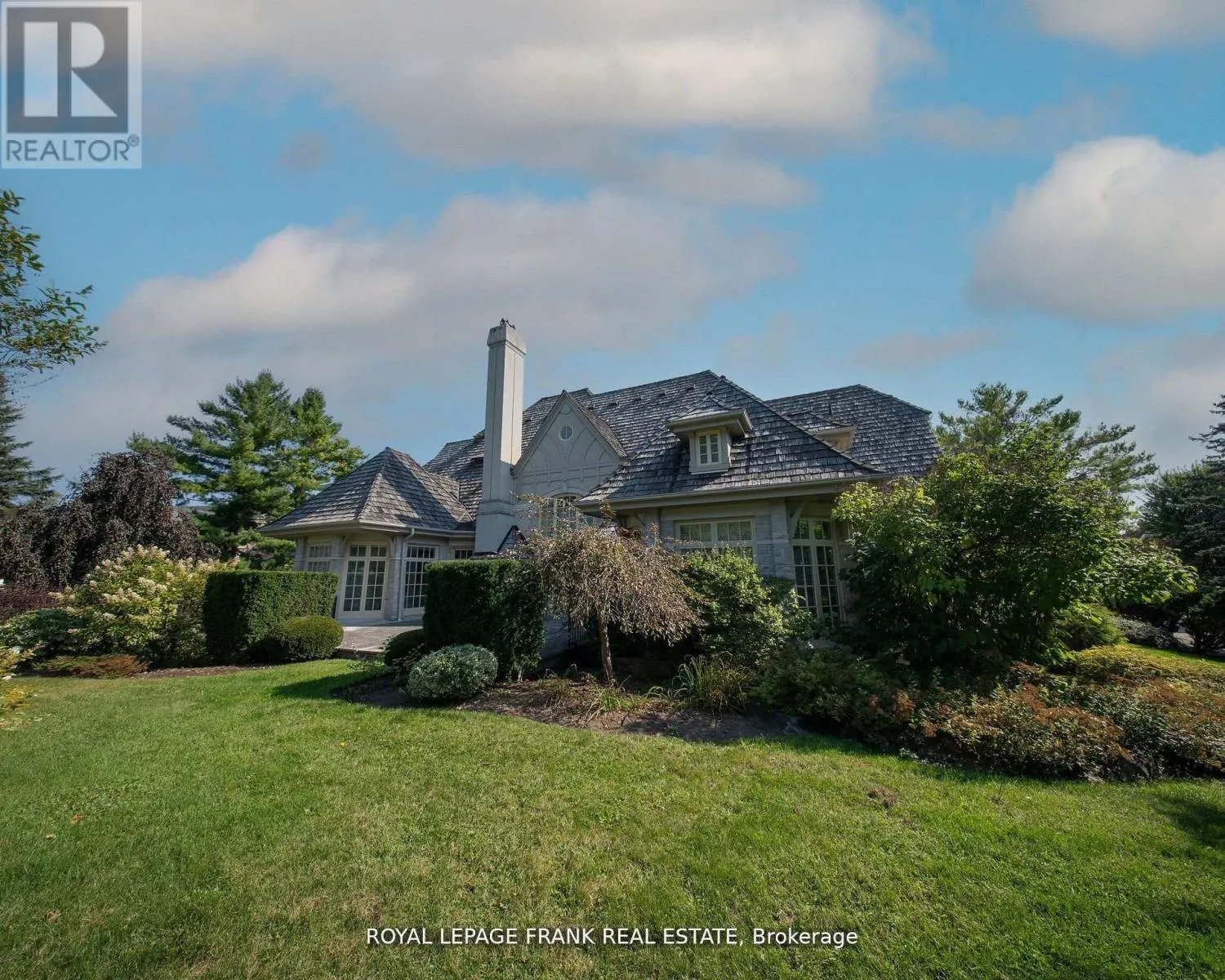 Taunton Rd / Salem Rd Situated in one of the most prestigious neighbourhoods, Deer Creek, 42 Buggey Lane is a true custom-built luxury estate spanning 1.42 acres with mature trees offering ultimate privacy and an English garden ambiance. Just steps from Deer Creek Golf Course, this 5000+ sq. ft. home features a timeless exterior blend of English Tudor Country with Gothic roofline peaks, crafted with Wiarton ledger rock, Indiana limestone, and Douglas Fir trim. Built in 2000, this residence was among the first smart homes, equipped with automated Hunter Douglas blinds and integrated smart home controls. Inside, the kitchen boasts Giallo Vittoria granite countertops with views overlooking the lush back garden. The Great Room, anchored by a dual Travertino Classico fireplace, is perfect for elegant gatherings. Hardwood floors throughout the main and upper level and a grand dining room to elevate luxury. The finished basement includes an additional bedroom, additional storage and a massive bunker. **EXTRAS** 4+1 bedrooms with primary and secondary bedroom on the main floor, offering comfort and accessibility. Upstairs has 2 additional bedrooms complete with a kitchen and living space and an oversized office. Ample parking with 4 car garage. (id:27476)