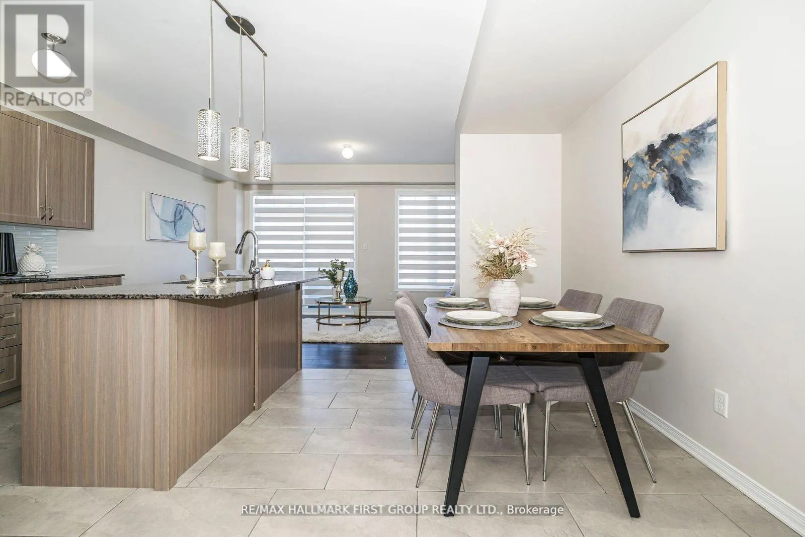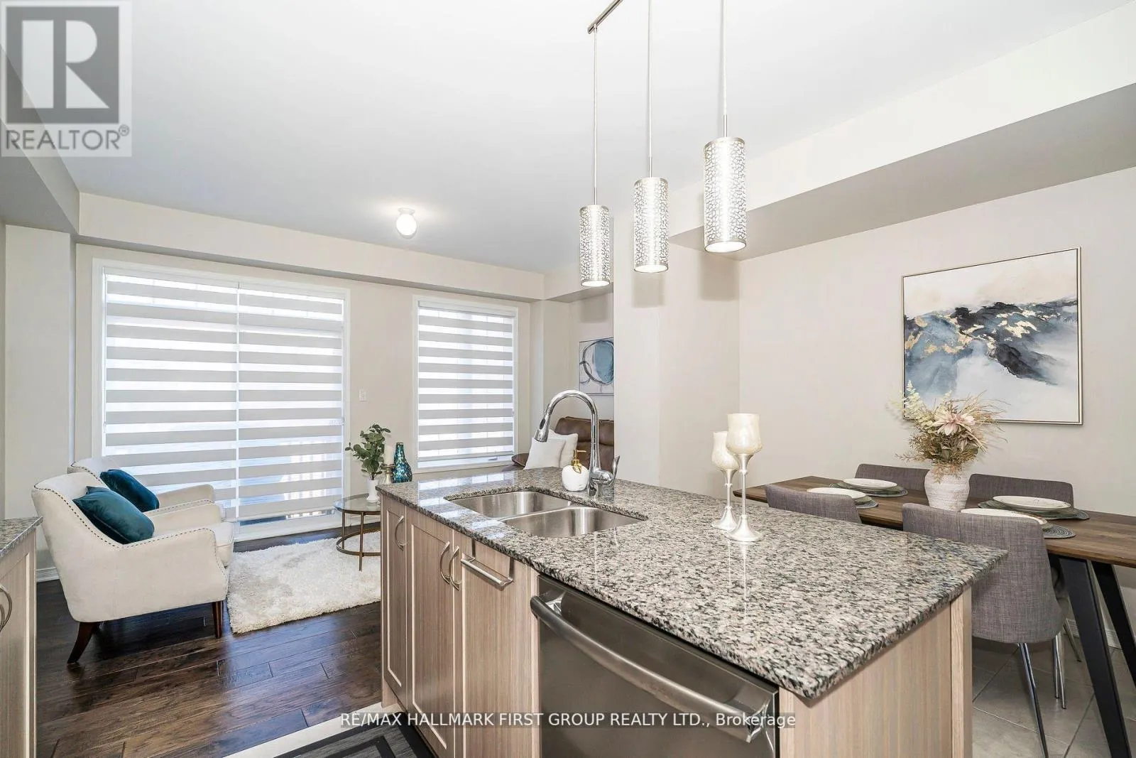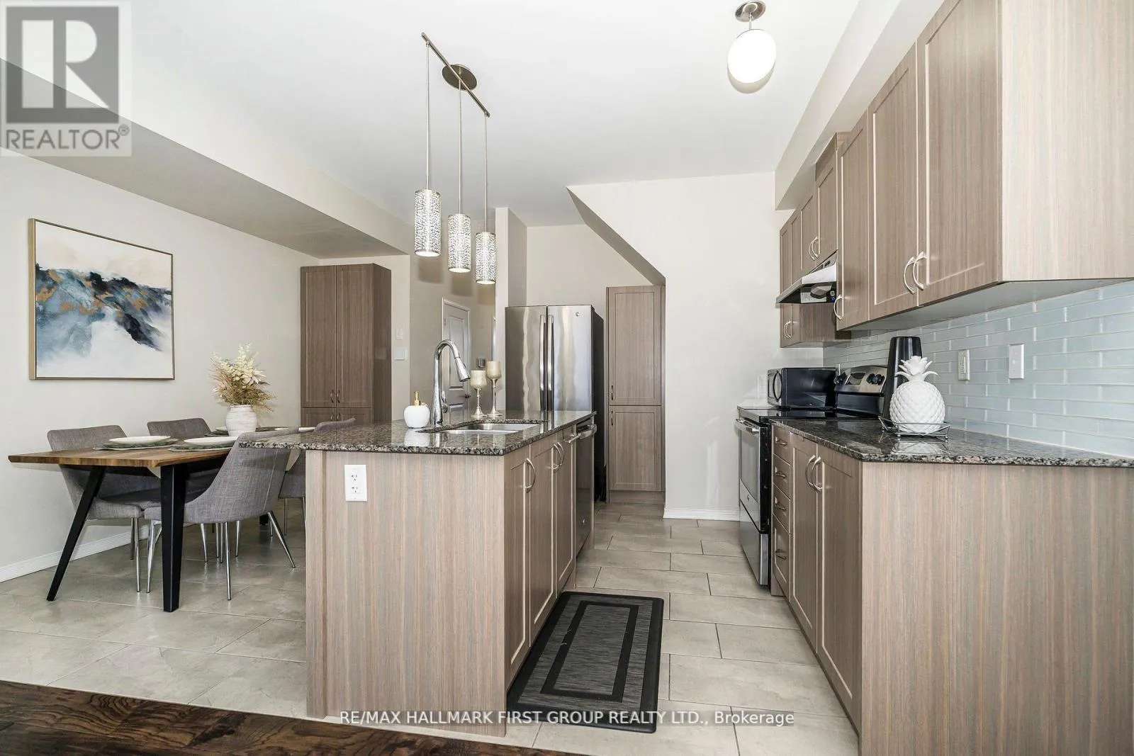 Cross Streets: Salem / Rossland. ** Directions: -. Stunning Freehold End Unit Townhome on a Premium Lot. This beautifully designed 3-story brick and stone townhome offers over 2000 sq. ft of living space, featuring 4 bedrooms and 4 bathrooms. Bright and Spacious Living Areas: The family room is filled with natural light and opens to a lovely walk- out - deck perfect for relaxation. Modern Kitchen: Equipped with sleek granite countertops and stainless steel appliances for a contemporary touch. Generous Bedrooms: Large-sized rooms with spacious closets provide comfort and convenience. Primary Bedroom Retreat: Includes a walk-in closet and a private 4-piece ensuite. Main floor bedroom and 3pc baths can generate rental income. Unfinished Basement: Ideal for future customization to suite your needs. Prime Location: Steps to shopping, restaurants, and parks. Close to top-rated schools, Highways 401, 407, & 412, plus easy access to the GO station for seamless commuting. (id:27476)