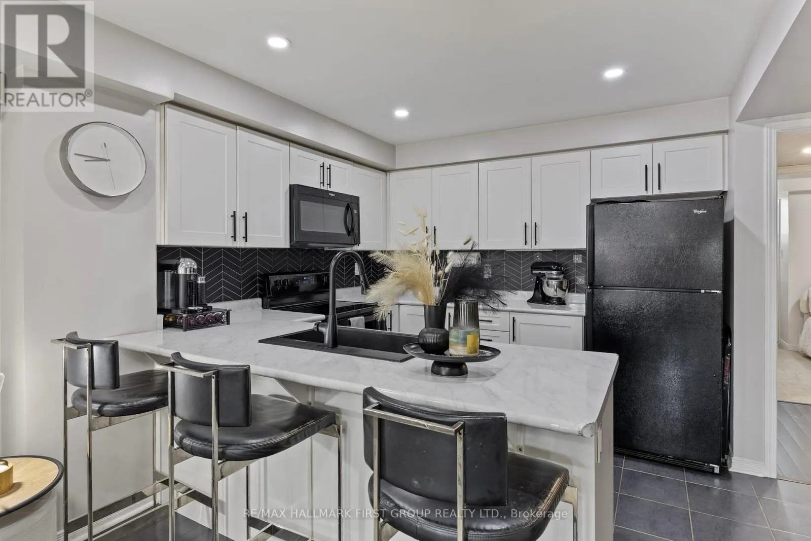 Cross Streets: Westney /Kingston Rd/Chapman. ** Directions: SEE MAP. This modern 2-bedroom, 1-bathroom stacked condo townhouse offers sleek black finishes, hardwood floors, pot lights, and a stylish kitchen with stainless steel appliances, a sleek backsplash, and updated bathrooms. Just under 900 sq ft, the unit is well-maintained and located on the ground floor for easy access. You're just 1 minute from Hwy 401 and steps from Westney Heights Plaza with Shoppers, Food Basics, banks, restaurants, and more. Perfect for first-time buyers, downsizers, or investors looking for style and convenience in one of Ajax's best locations. (id:27476)