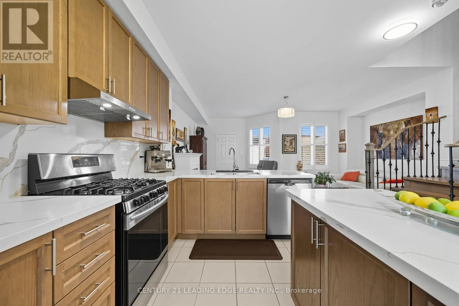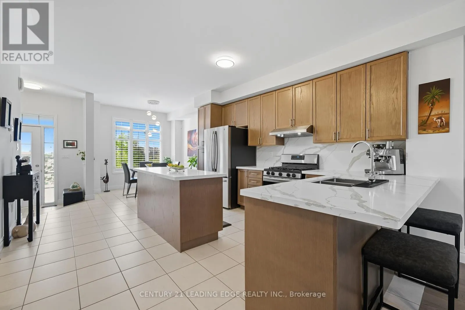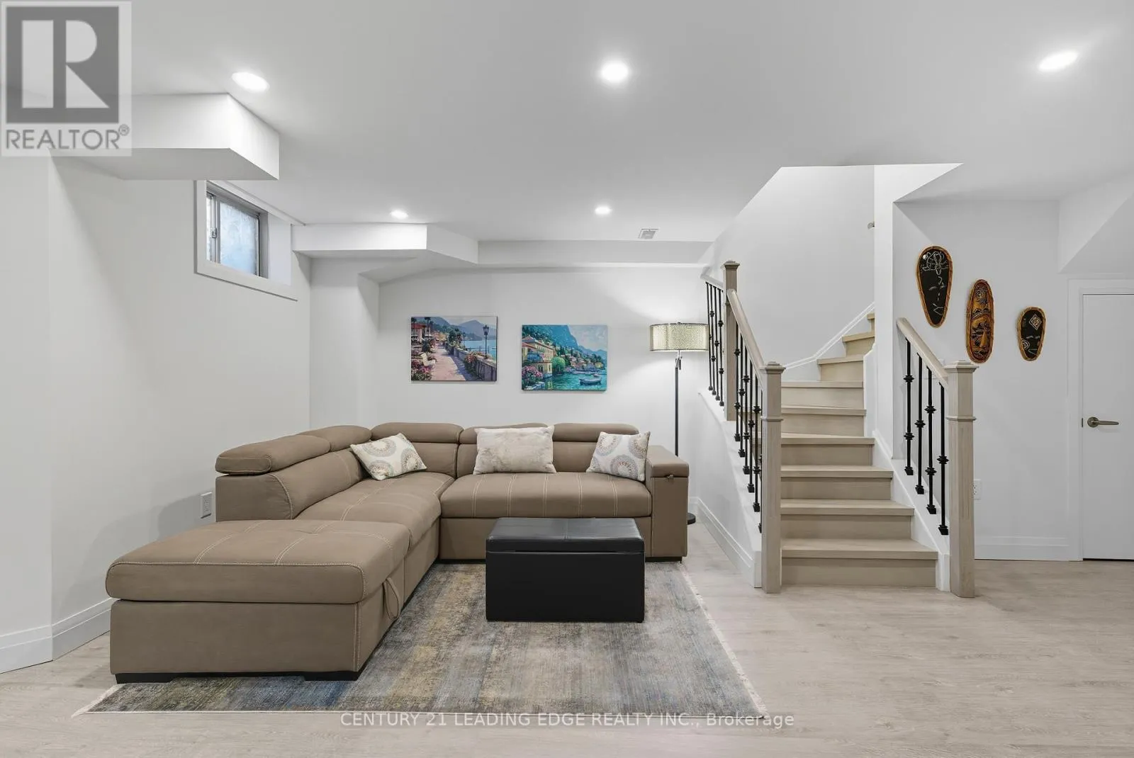 Church St N & Harrisview St. Welcome To 14 Drayton Ave, Ajax A Beautifully Upgraded Freehold Townhome In The Sought-After Northwest Ajax Community. This Bright And Modern 3+1 Bedroom, 4-Bathroom Home Features An Open-Concept Layout With 9-Ft Ceilings, Hardwood Stairs With Wrought Iron Pickets, And Pot Lights Throughout. The Stylish Kitchen Boasts Quartz Counters, A Gas Stove, Stainless Steel Appliances, And A Spacious Breakfast Area Filled With Natural Sunlight. The Primary Bedroom Offers A Coffered Ceiling, Walk-In Closet, And A Luxurious 5-Piece Ensuite. The Home Also Includes An Alarm Rough-In For Added Convenience And Peace Of Mind. The Professionally Finished Basement Adds Valuable Living Space With A Large, Bright Rec Room And Ample Pot Lighting Perfect For Entertaining Or Relaxing. Situated On A Premium Lot With No Homes In Front, This Move-In-Ready Gem Is Close To Schools, Parks, Shopping, And Major Highways. A Perfect Blend Of Elegance, Comfort, And Convenience! (id:27476)