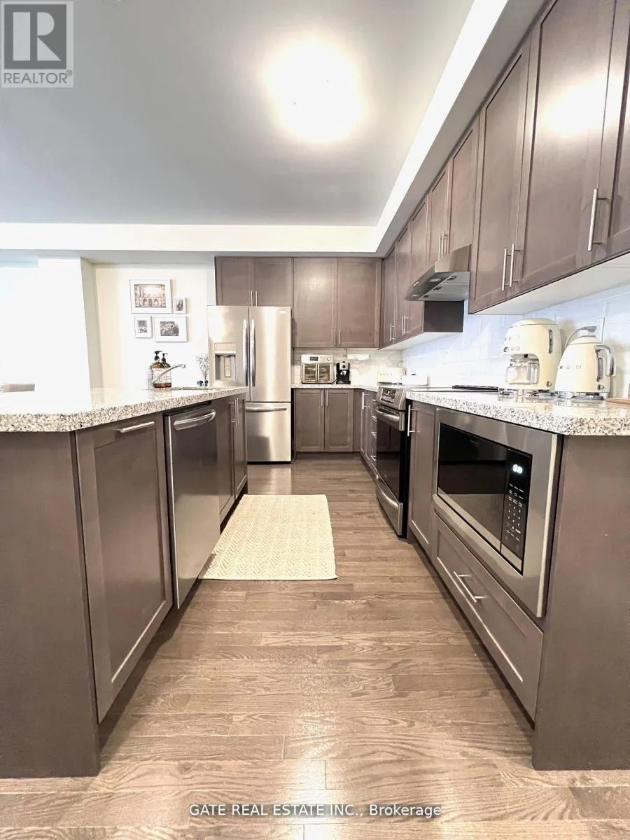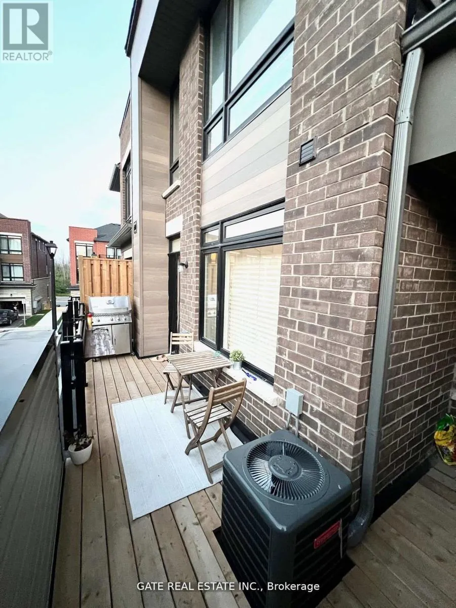 Salem/ Bayly Indulge in luxury living with this elegantly designed 3-bedroom townhouse, meticulously maintained and boasting high-end finishes such as higher baseboards, elevated interior doors, and hardwood flooring throughout. The open-concept foyer welcomes you into a space with the living room on a separate level, featuring an electric fireplace and flowing seamlessly onto a spacious balcony, perfect for BBQs. The eat-in kitchen is equipped with high-end Frigidaire Gallery stainless steel appliances, and the bathrooms feature upgraded tiles, adding to the opulence. Additional features include a convenient garage door opener and proximity to schools, transit, and playgrounds. Dont miss the opportunity to lease this sophisticated gem. (id:27476)
