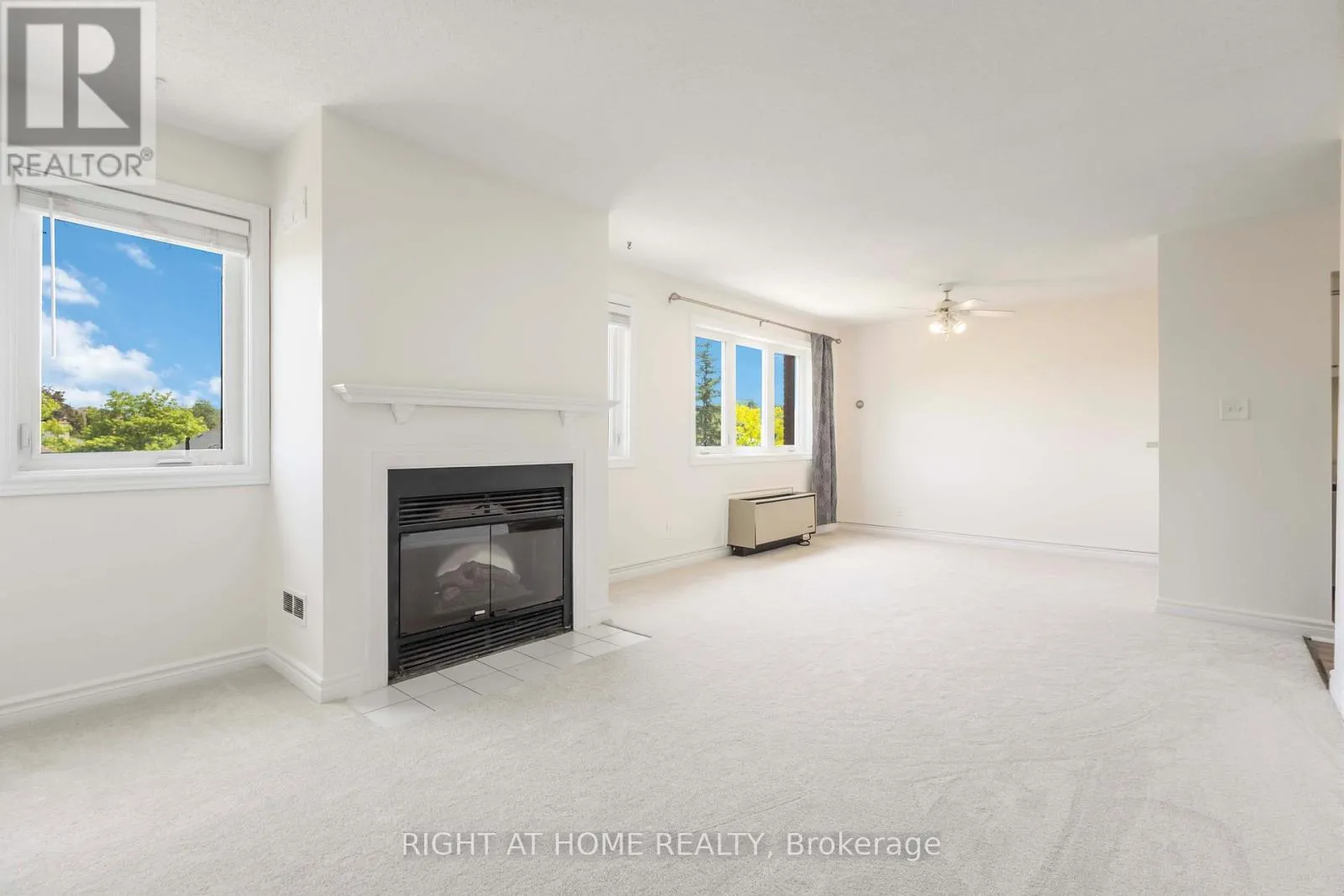 Cross Streets: Westney/Lake Driveway. ** Directions: south on Westney, right onto Lake Driveway. This stunning top-floor 1-bedroom condo is a rare find, with only three units of its kind in the building. Freshly painted with new flooring throughout, it boasts a bright, open-concept layout with large windows, stainless steel appliances, a cozy fireplace, and a private balcony. The master bedroom features a 4-piece ensuite, and the unit includes convenient ensuite laundry. With renovations to the lobby and hallways, plus fantastic amenities like an indoor pool, sauna, gym, tennis court, and more, this complex offers everything you need. Located just steps from the lake, waterfront trails, GO transit, shopping, and schools, its the perfect mix of comfort and convenience. Plus, the hot water tank is owned no rental fees! (id:27476)