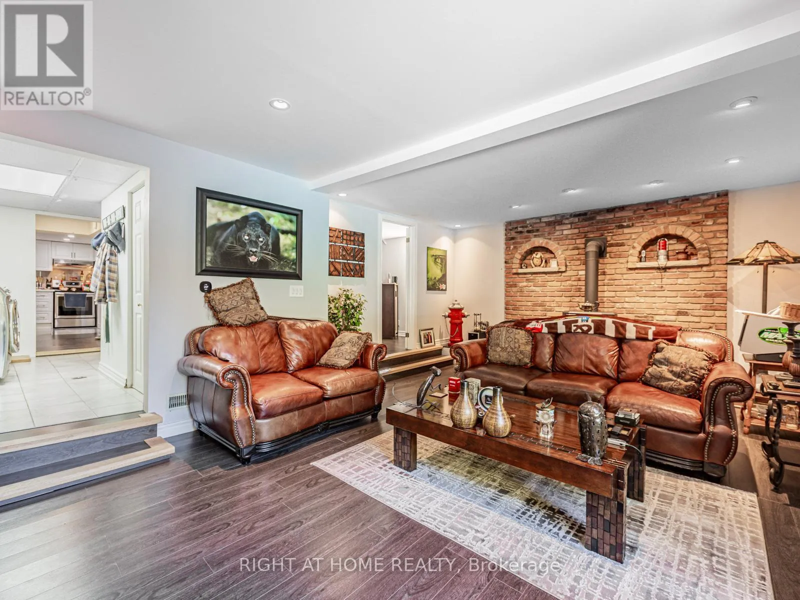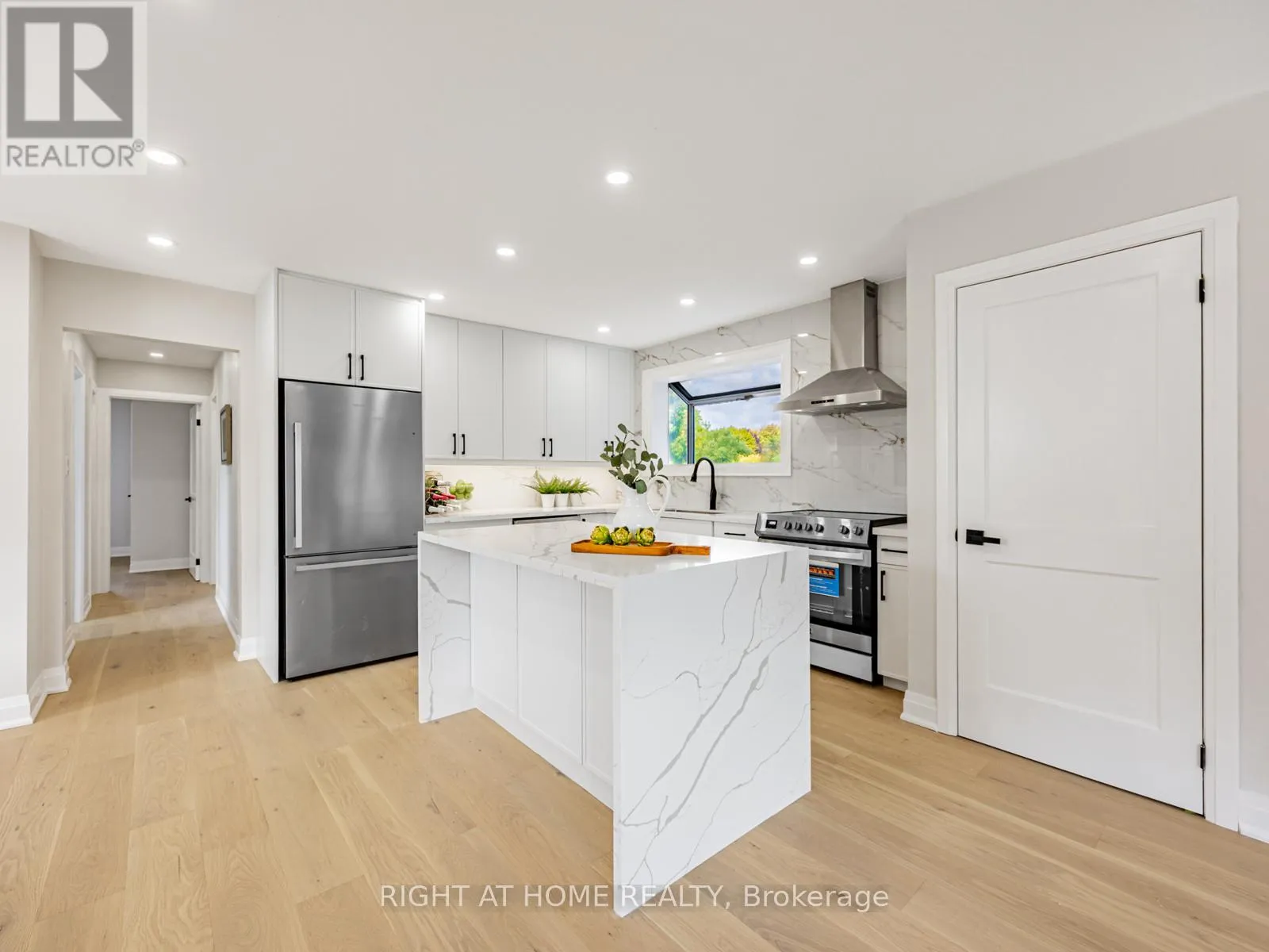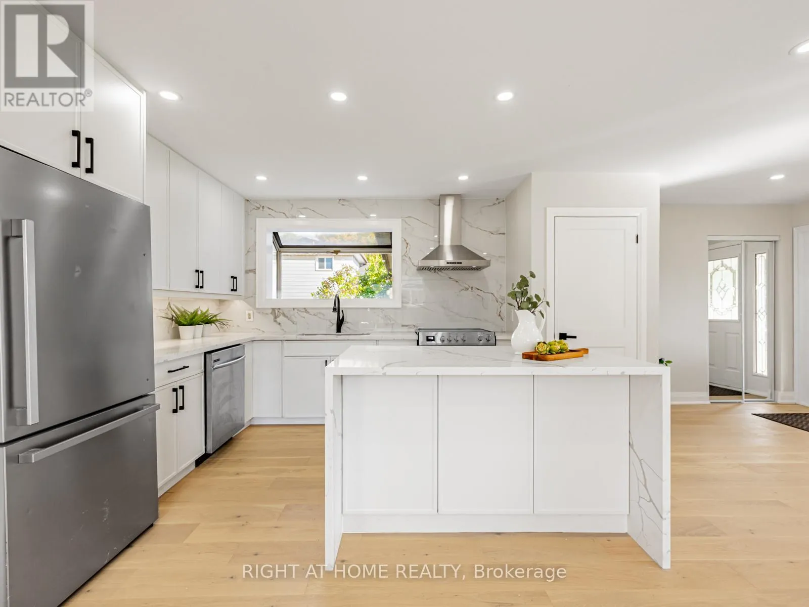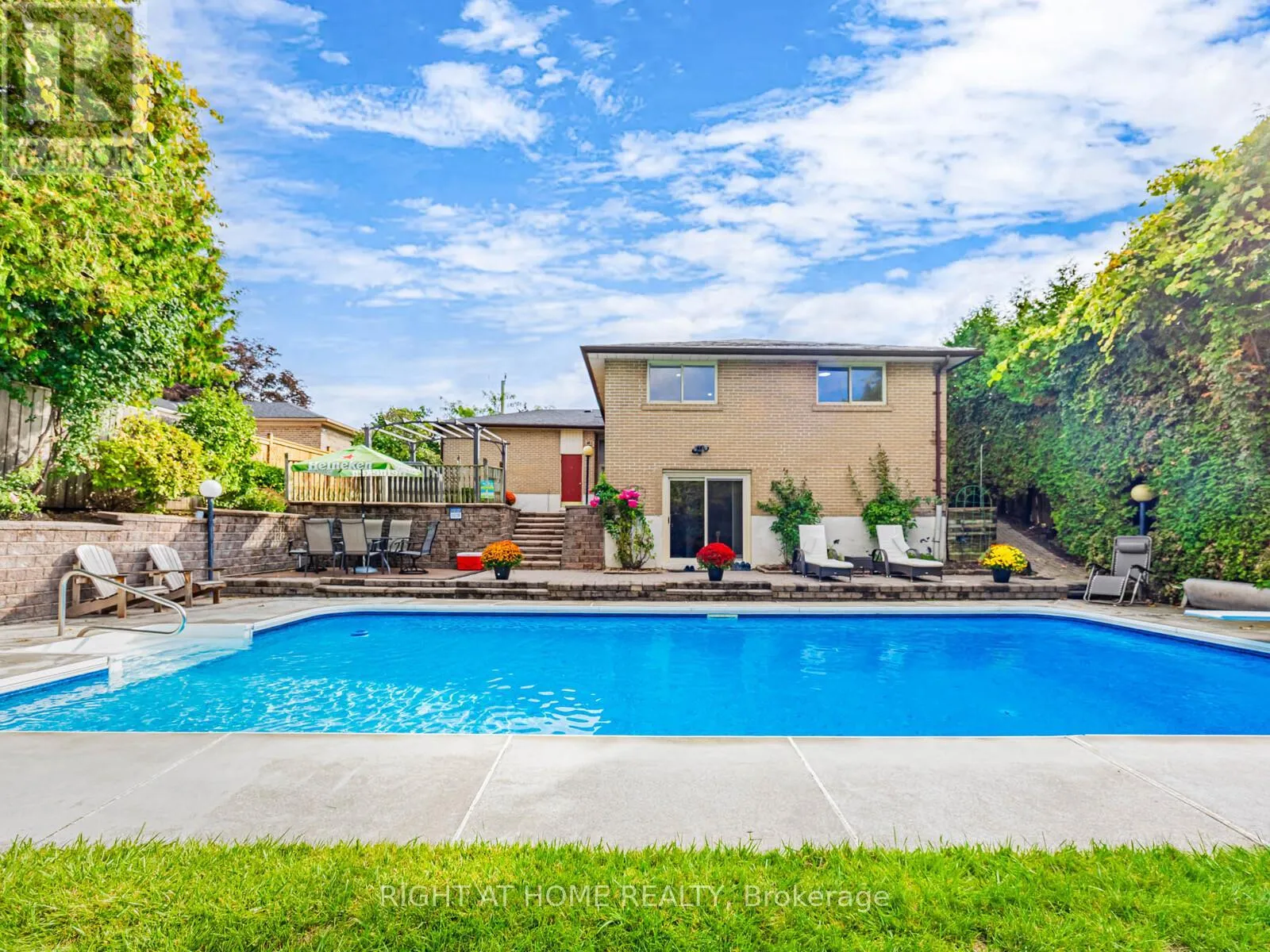 Westney/HWY 401 Ravine! Walk-out basement! Swimming pool! Newly renovated bungalow on premium 63x141ft lot with finished walk-out basement, facing west toward greenery. Fully fenced private backyard with stone interlock and in-ground swimming pool, surrounded by mature trees. Newly painted walls, engineered hardwood floor/smooth ceiling/pot lights throughout. Open concept. Upgraded kitchen with beautiful waterfall center island/quartz counter/SS appliances. Elegant primary bedroom with lavish 4pc ensuite, overlooking ravine. Quiet street, close to HWY 401/GO station/trail/community centre/hospital. (id:27476)