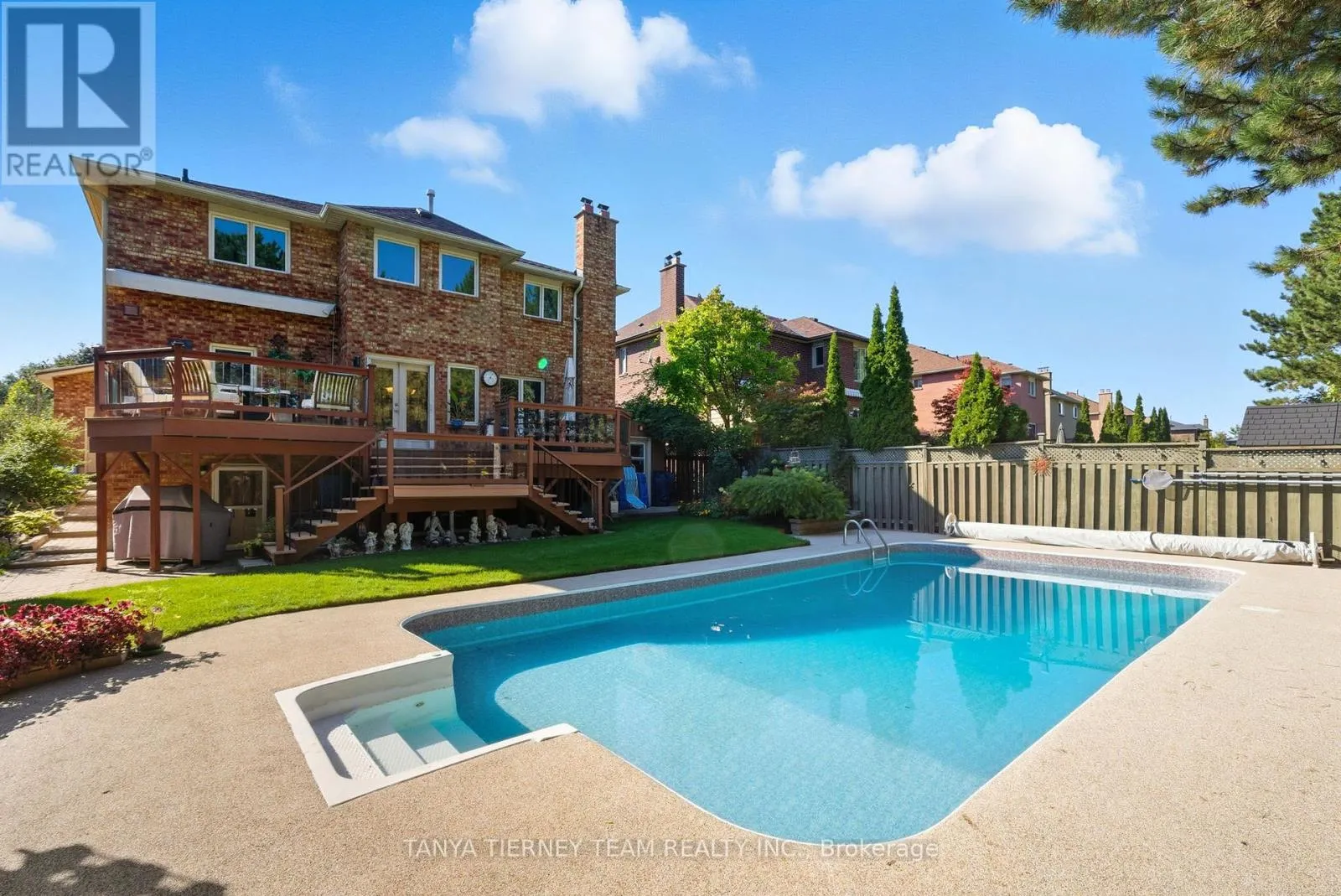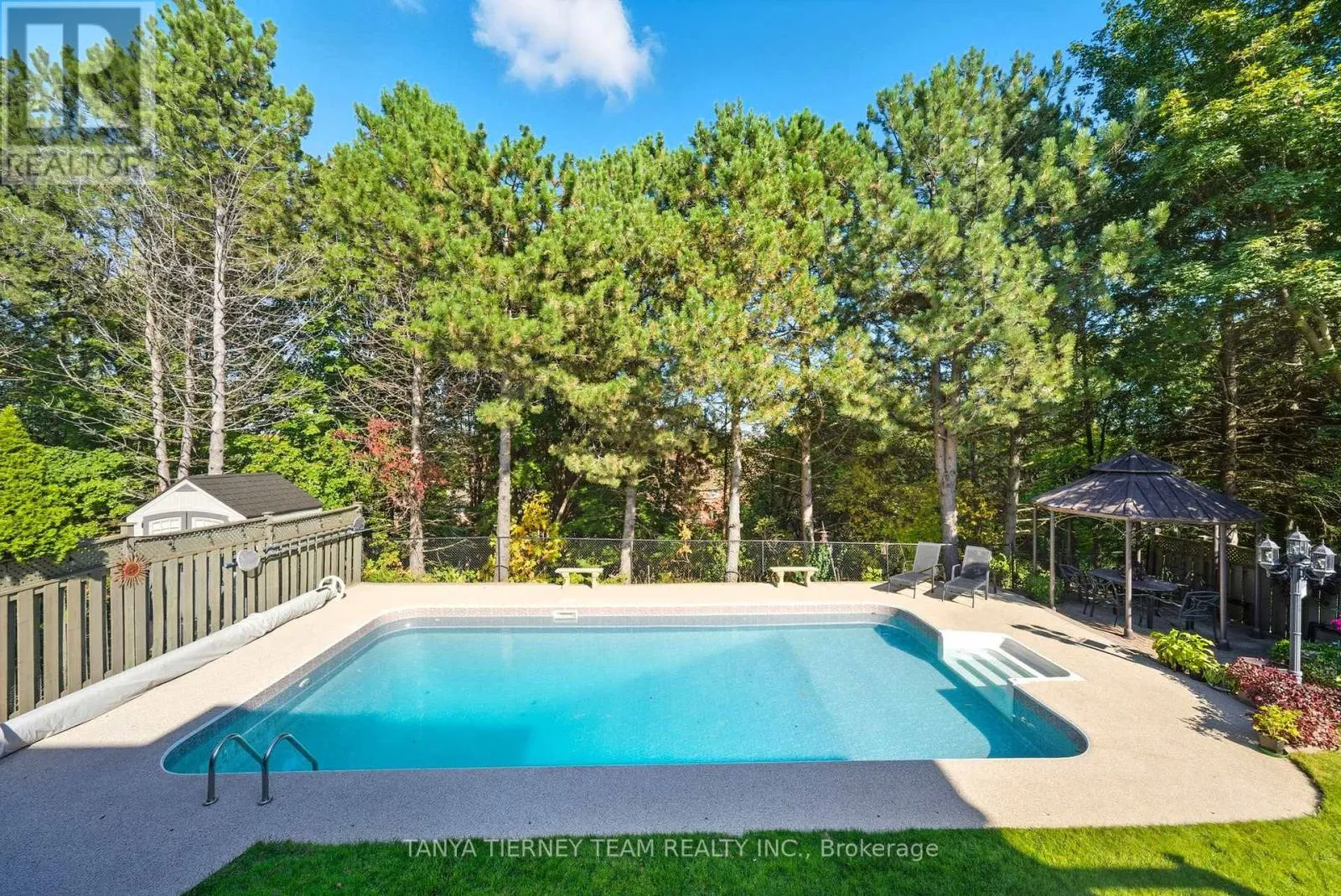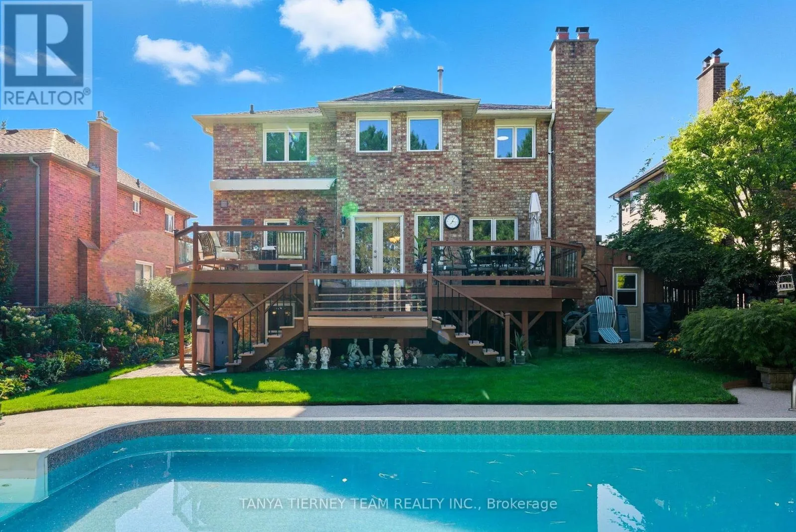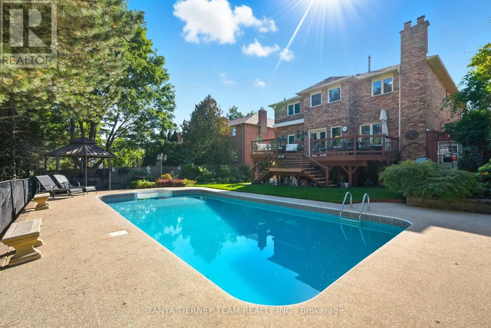 Kingston Rd & Rotherglenn Rd N Welcome to this stunning 4 bedroom, 4 bath, all-brick family home exuding timeless elegance and modern comfort in a sought-after Ajax neighbourhood. Set on a premium lot with no neighbours behind, this property offers a private backyard oasis featuring an inground saltwater pool, perennial gardens, interlocking patio, vegetable beds, sprinkler system, gazebo, garden shed, and a two-tier composite deck with glass rails, retractable awning, and built-in surround sound overlooking the treed backdrop. Inside, the grand foyer leads to a traditional yet refined layout highlighted by a hardwood staircase with wrought iron spindles, crown moulding, smooth ceilings, pot lights, and gleaming hardwood floors. Entertain in the elegant living and dining rooms or relax in the cozy family room.The gourmet kitchen features granite counters, centre island, backsplash, stainless steel appliances including a gas stove, and a large pantry. The breakfast area offers walk-out to deck and pool, while the main floor laundry offers access to a fully insulated garage with tiled floors, gas furnace, car lift, and door to side yard. Upstairs, four generous bedrooms each have custom closet organizers. The primary retreat showcases French doors, a gas fireplace, an open-concept walk-in closet with quartz island, and a spa-like 5pc ensuite with freestanding tub, double quartz vanity, and glass rain shower. The finished basement adds a rec room, games area with wet bar, 2pc bath, and walk-out to the patio and pool. Close to top schools, parks, shopping, transit, and highways - this home defines luxury living and pride of ownership! (id:27476)
