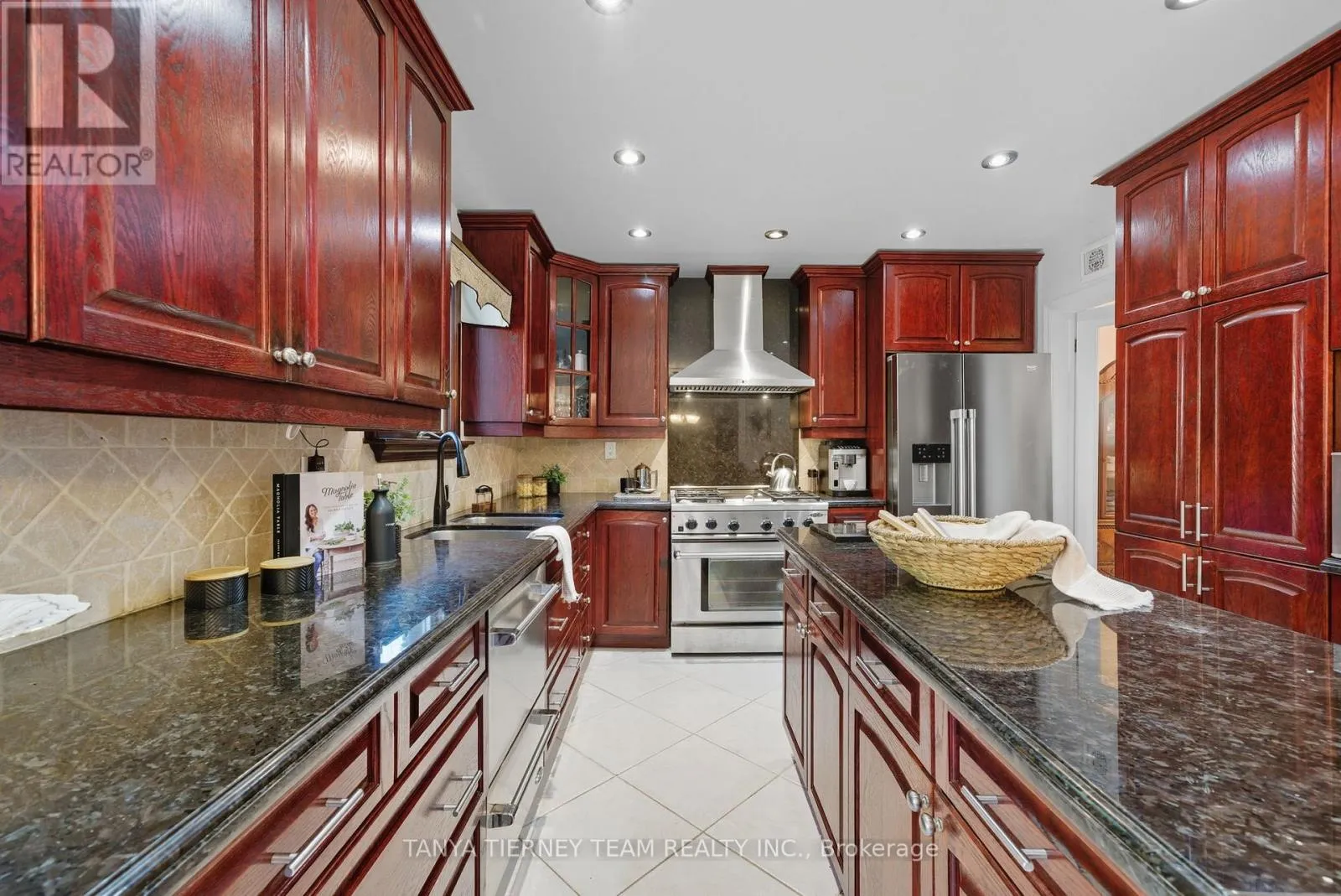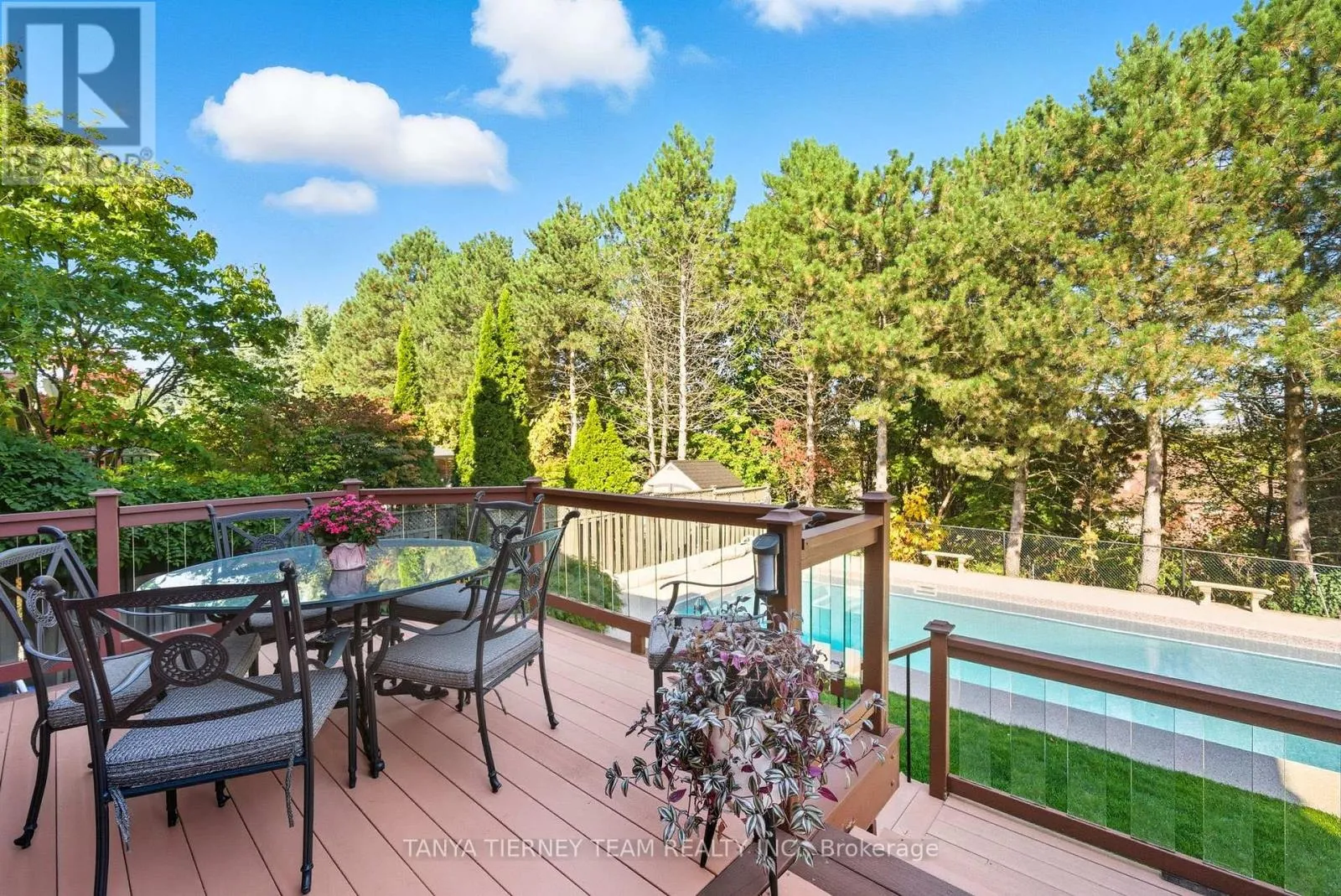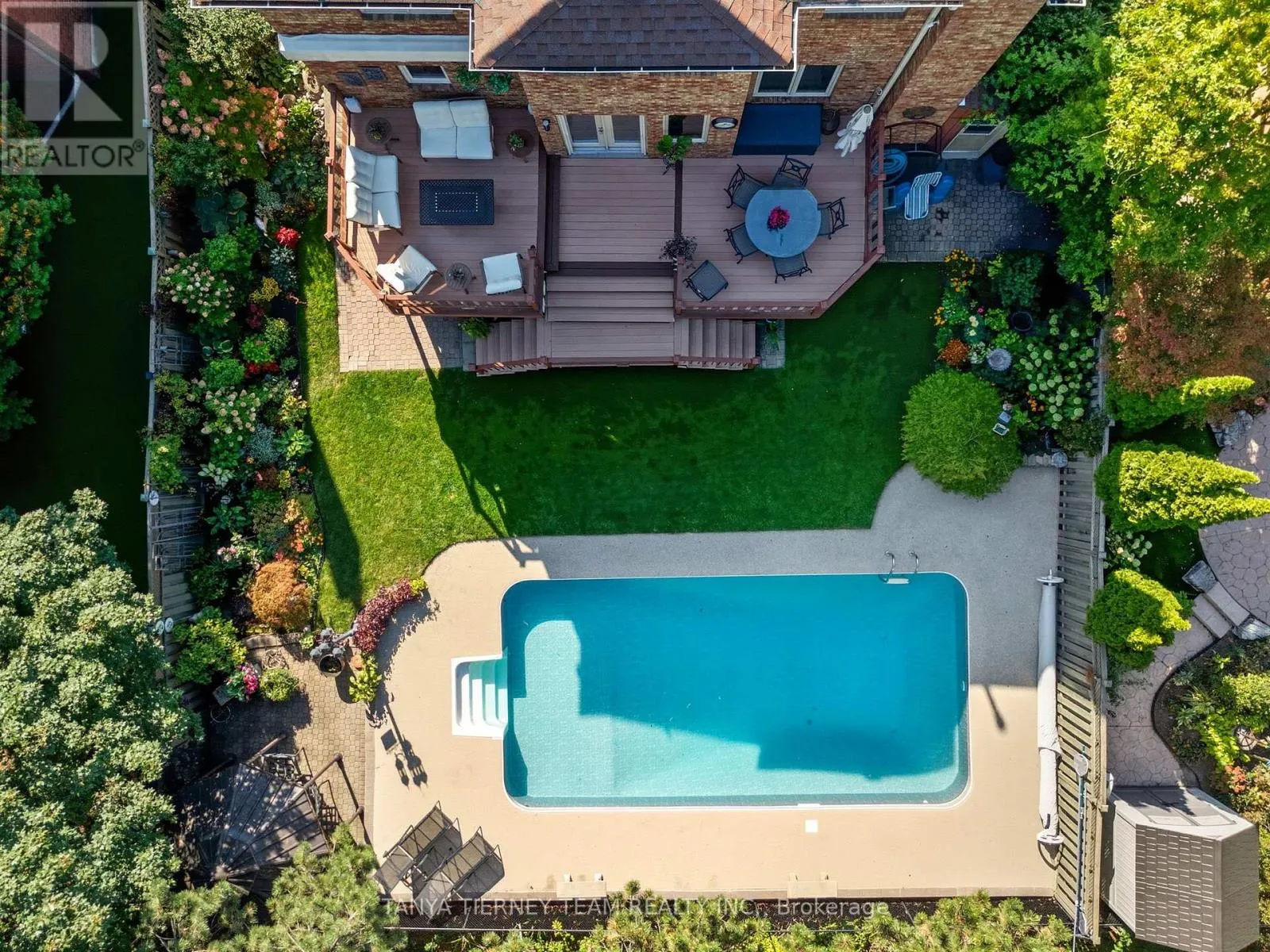 Kingston Rd & Rotherglenn Rd N Welcome to this stunning 4 bedroom, 4 bath, all-brick family home exuding timeless elegance and modern comfort in a sought-after Ajax neighbourhood. Set on a premium lot with no neighbours behind, this property offers a private backyard oasis featuring an inground saltwater pool, perennial gardens, interlocking patio, vegetable beds, sprinkler system, gazebo, garden shed, and a two-tier composite deck with glass rails, retractable awning, and built-in surround sound overlooking the treed backdrop. Inside, the grand foyer leads to a traditional yet refined layout highlighted by a hardwood staircase with wrought iron spindles, crown moulding, smooth ceilings, pot lights, and gleaming hardwood floors. Entertain in the elegant living and dining rooms or relax in the cozy family room.The gourmet kitchen features granite counters, centre island, backsplash, stainless steel appliances including a gas stove, and a large pantry. The breakfast area offers walk-out to deck and pool, while the main floor laundry offers access to a fully insulated garage with tiled floors, gas furnace, car lift, and door to side yard. Upstairs, four generous bedrooms each have custom closet organizers. The primary retreat showcases French doors, a gas fireplace, an open-concept walk-in closet with quartz island, and a spa-like 5pc ensuite with freestanding tub, double quartz vanity, and glass rain shower. The finished basement adds a rec room, games area with wet bar, 2pc bath, and walk-out to the patio and pool. Close to top schools, parks, shopping, transit, and highways - this home defines luxury living and pride of ownership! (id:27476)
