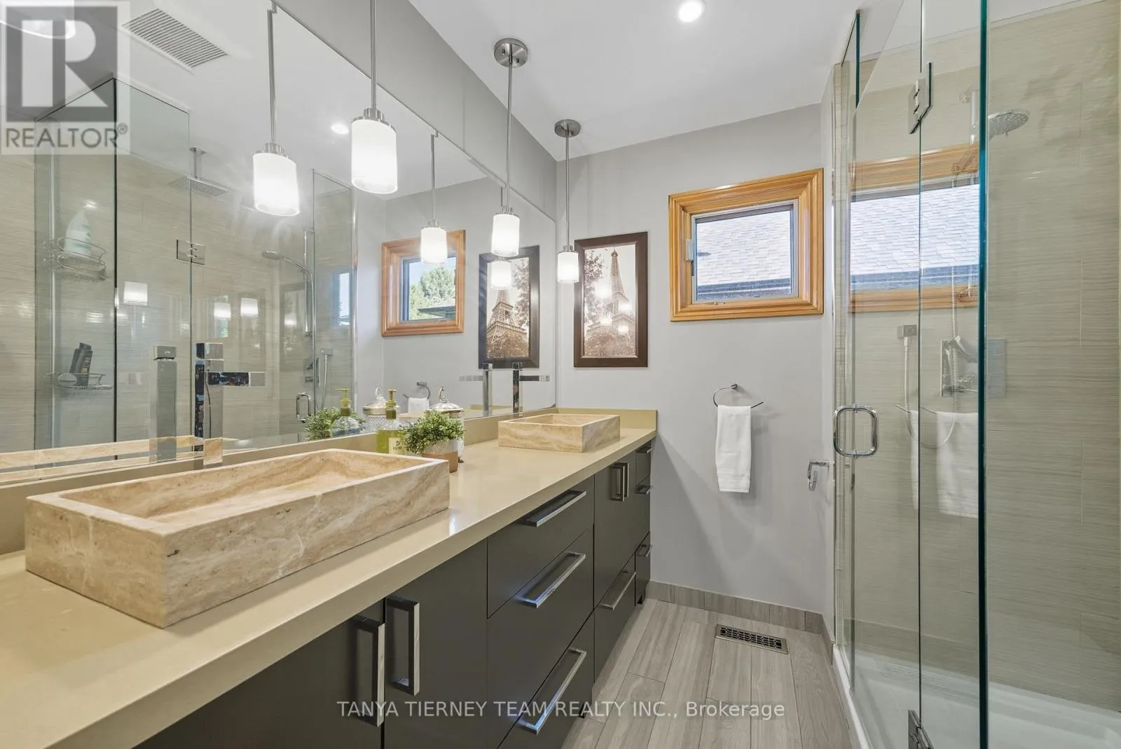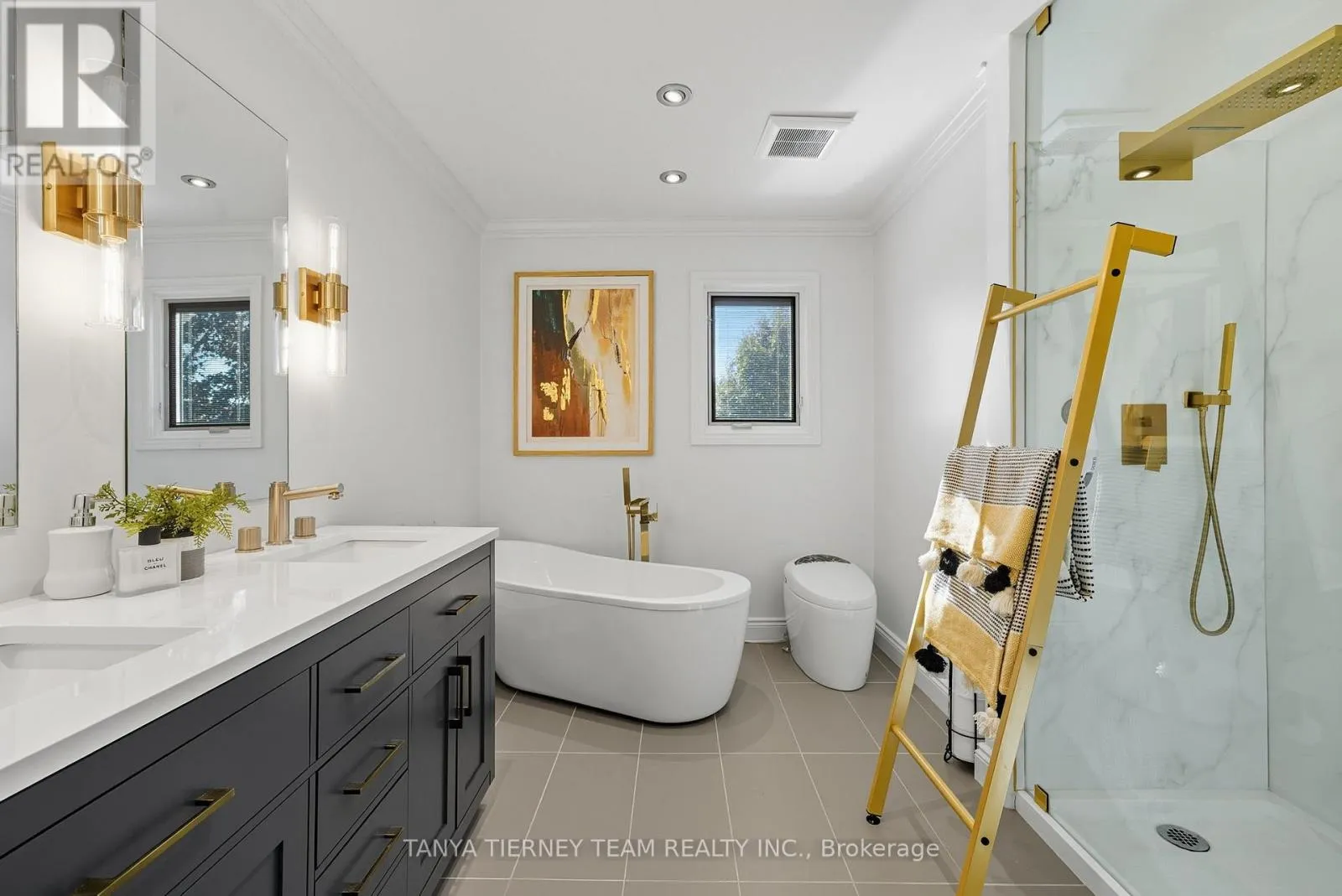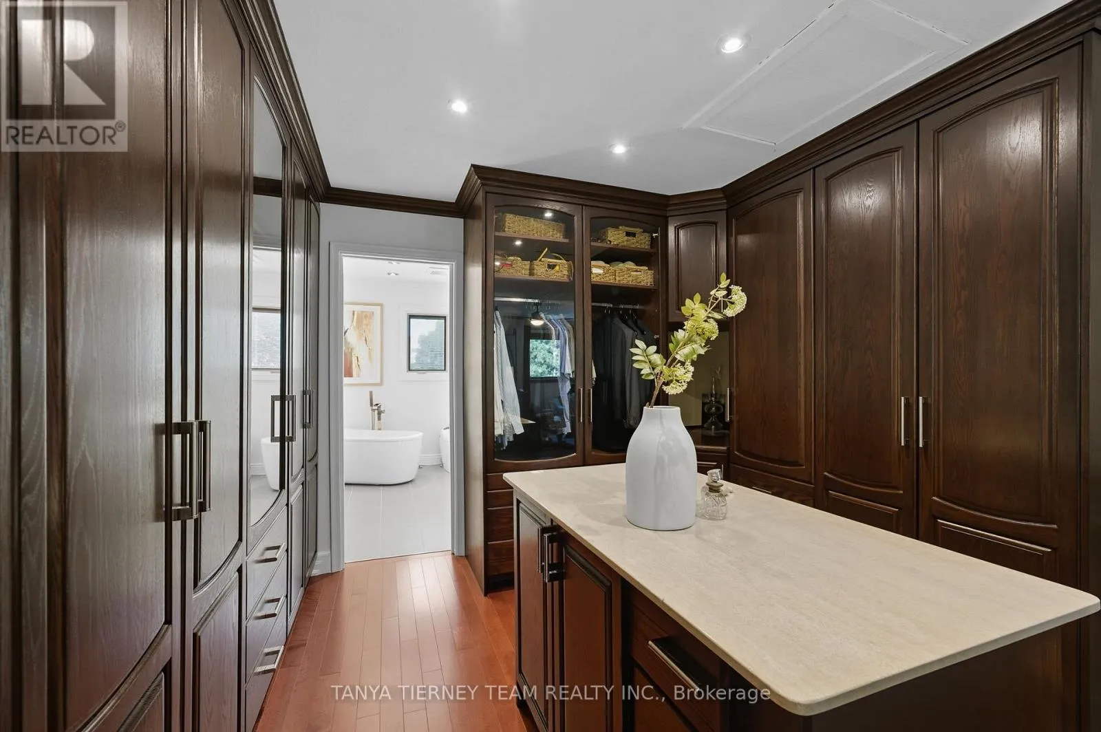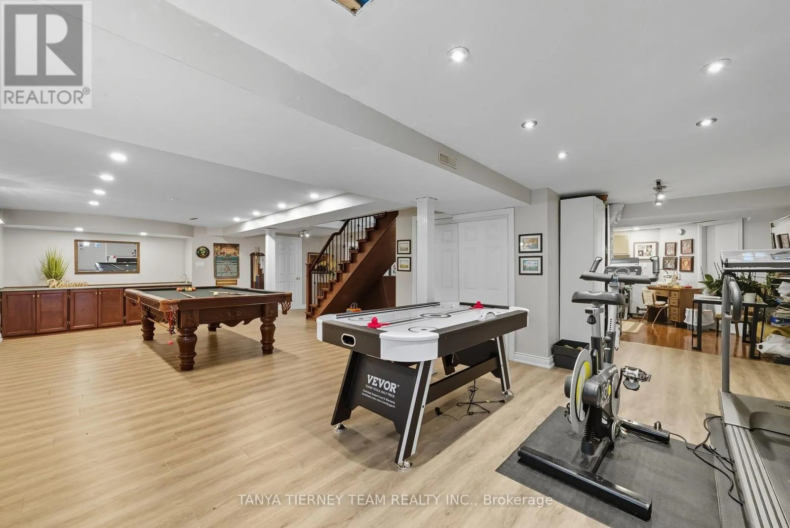 Kingston Rd & Rotherglenn Rd N Welcome to this stunning 4 bedroom, 4 bath, all-brick family home exuding timeless elegance and modern comfort in a sought-after Ajax neighbourhood. Set on a premium lot with no neighbours behind, this property offers a private backyard oasis featuring an inground saltwater pool, perennial gardens, interlocking patio, vegetable beds, sprinkler system, gazebo, garden shed, and a two-tier composite deck with glass rails, retractable awning, and built-in surround sound overlooking the treed backdrop. Inside, the grand foyer leads to a traditional yet refined layout highlighted by a hardwood staircase with wrought iron spindles, crown moulding, smooth ceilings, pot lights, and gleaming hardwood floors. Entertain in the elegant living and dining rooms or relax in the cozy family room.The gourmet kitchen features granite counters, centre island, backsplash, stainless steel appliances including a gas stove, and a large pantry. The breakfast area offers walk-out to deck and pool, while the main floor laundry offers access to a fully insulated garage with tiled floors, gas furnace, car lift, and door to side yard. Upstairs, four generous bedrooms each have custom closet organizers. The primary retreat showcases French doors, a gas fireplace, an open-concept walk-in closet with quartz island, and a spa-like 5pc ensuite with freestanding tub, double quartz vanity, and glass rain shower. The finished basement adds a rec room, games area with wet bar, 2pc bath, and walk-out to the patio and pool. Close to top schools, parks, shopping, transit, and highways - this home defines luxury living and pride of ownership! (id:27476)